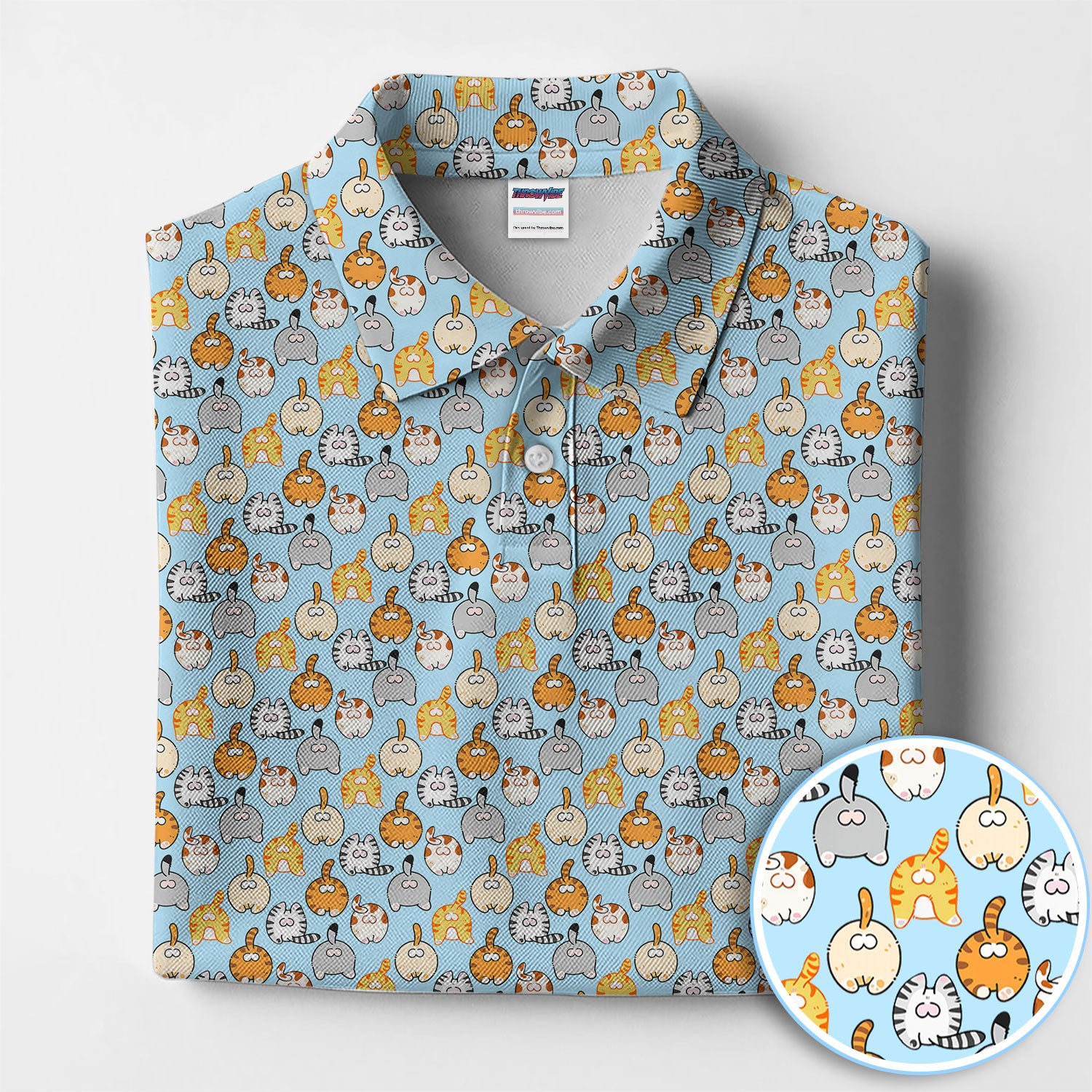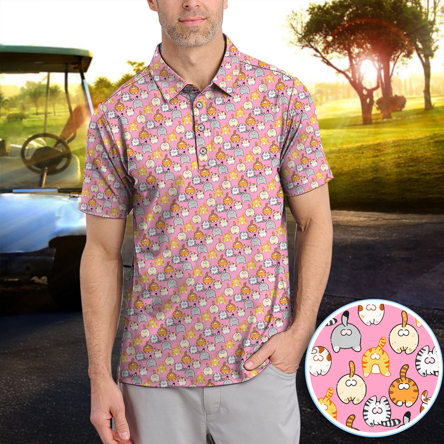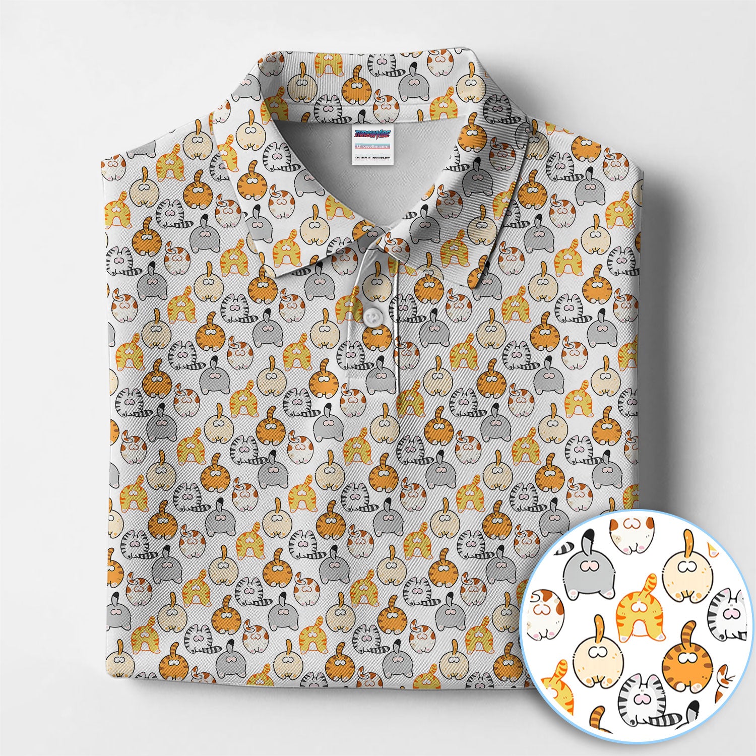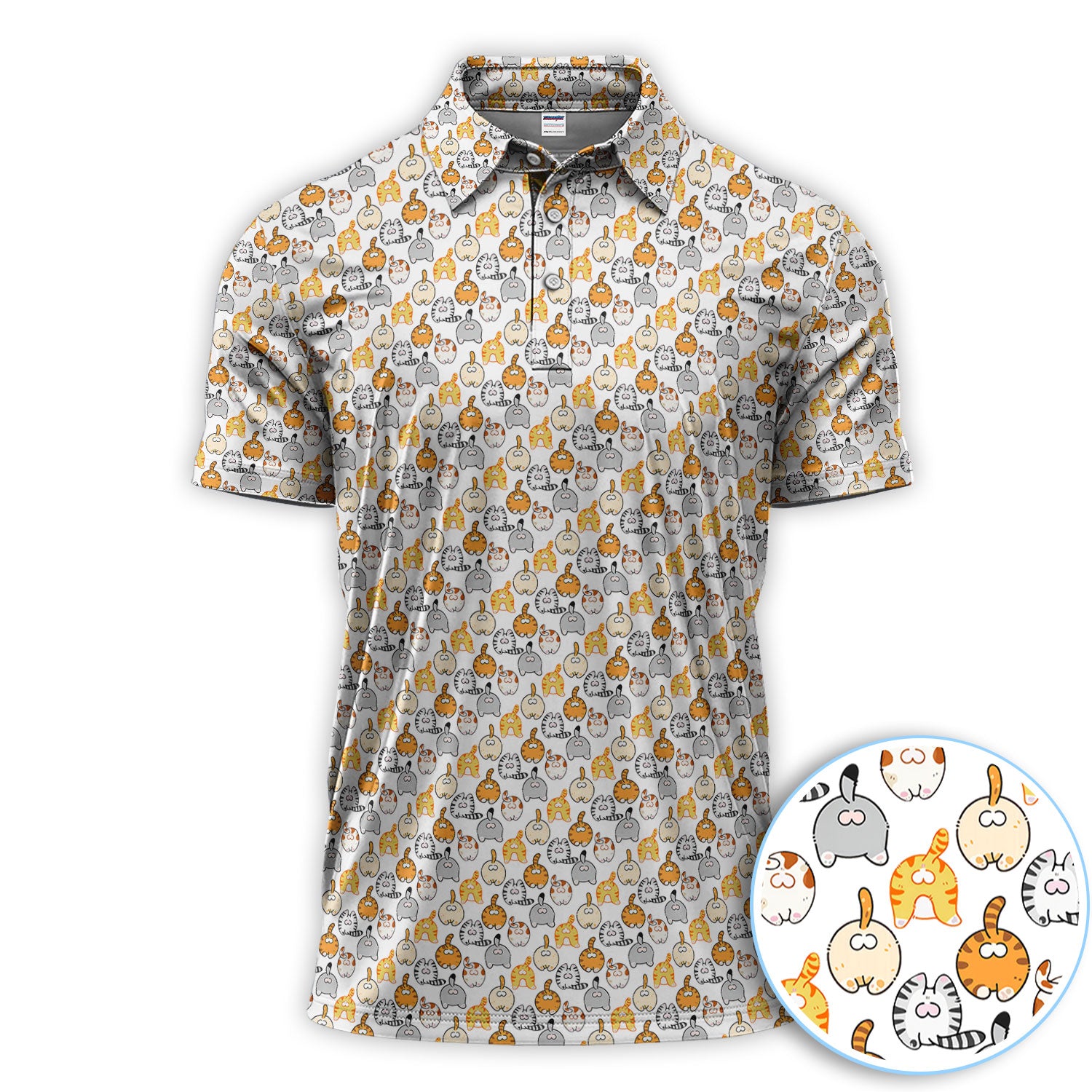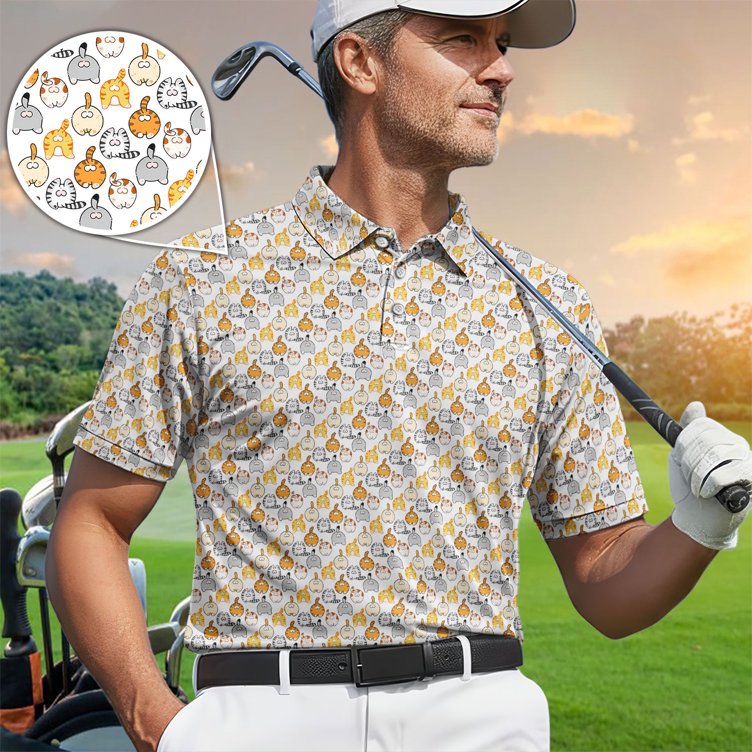 Cute Cat Butt Golf Polos, Pet Pattern Golf Shirt For Golfer, Golf Gift For Men