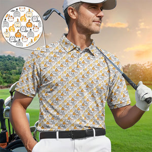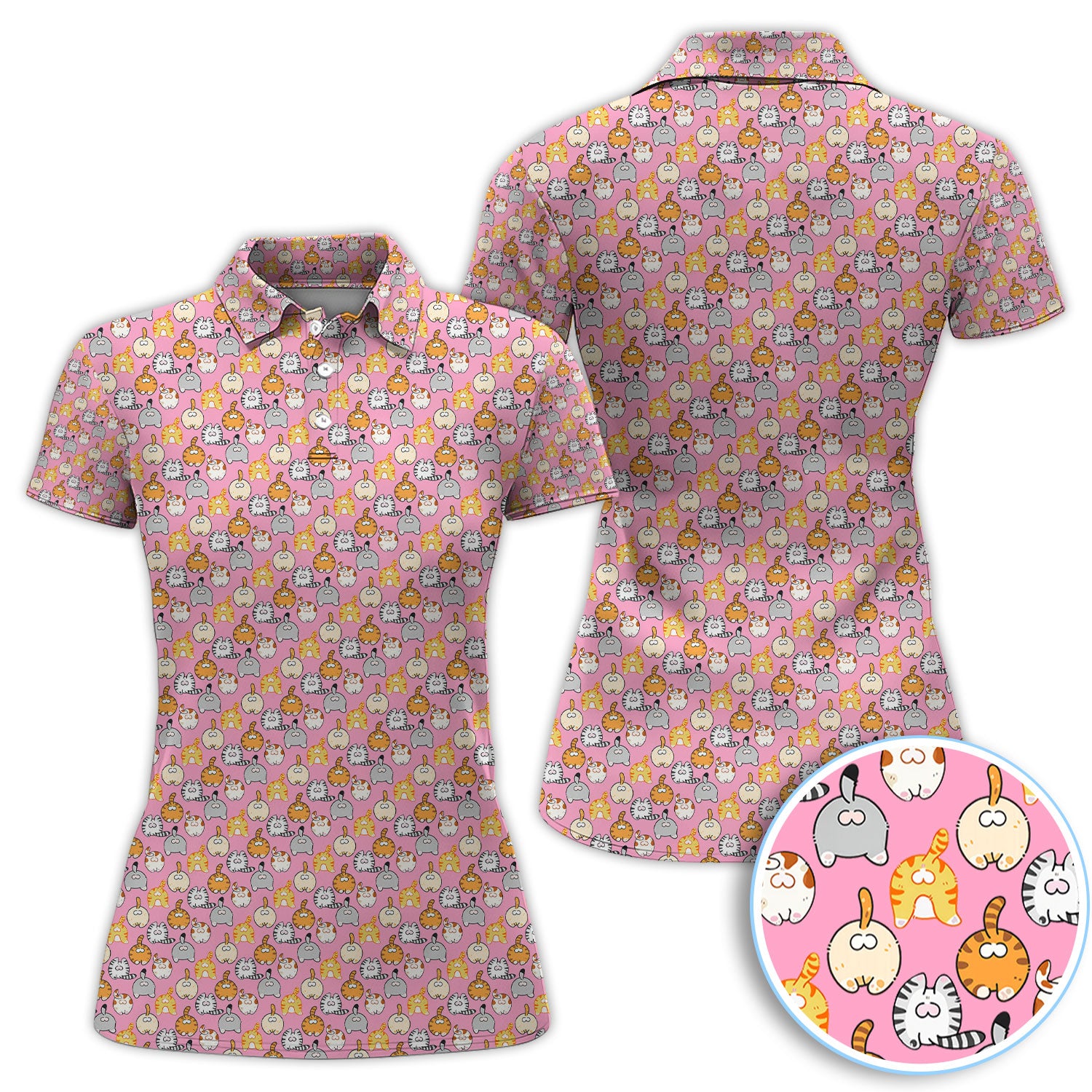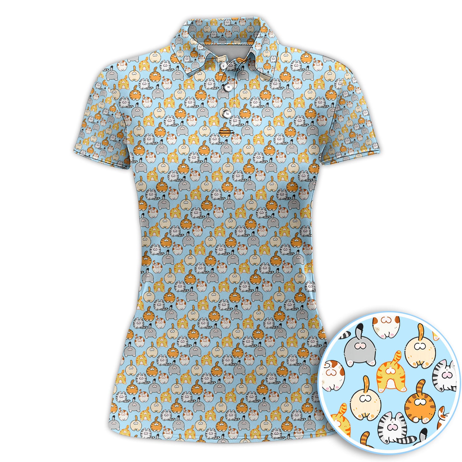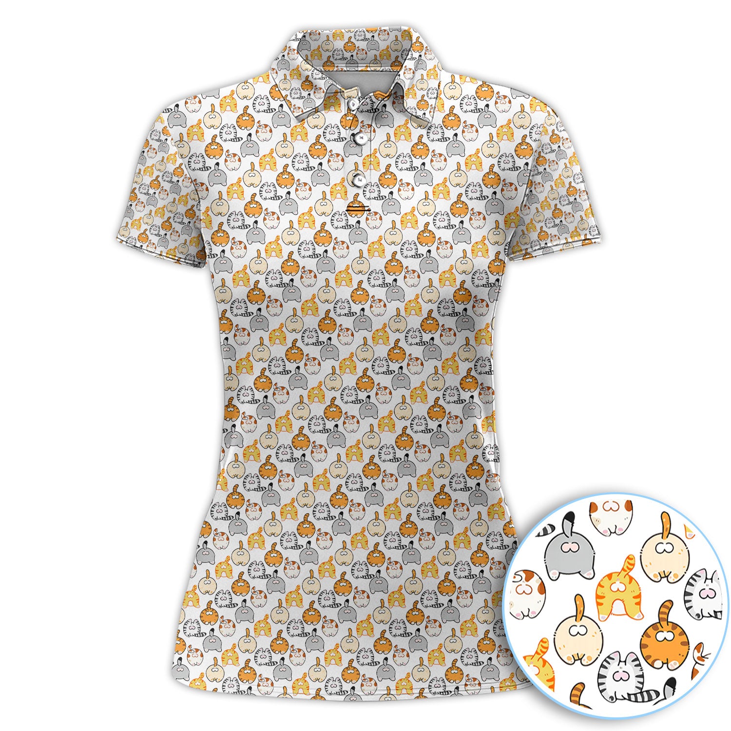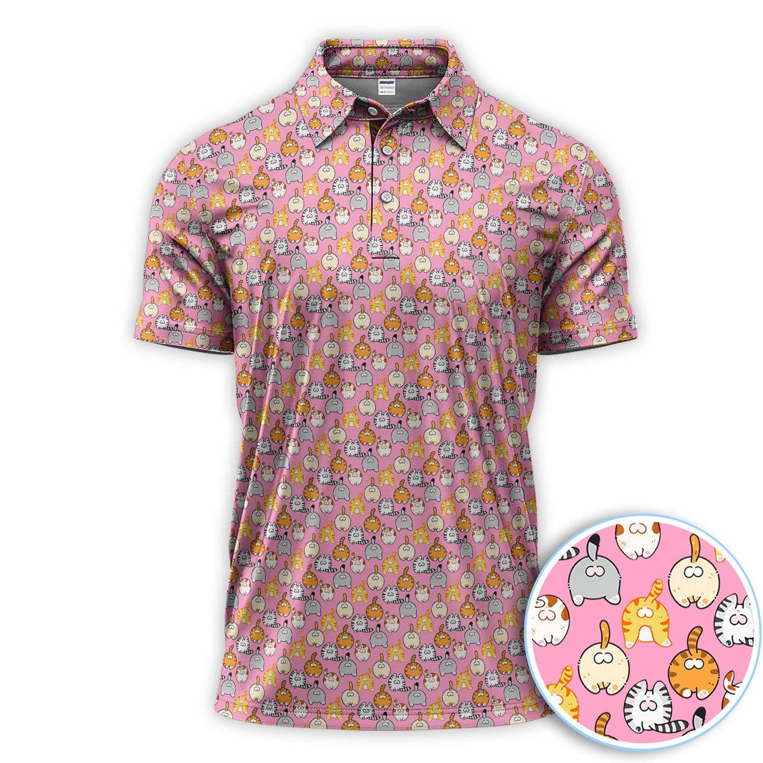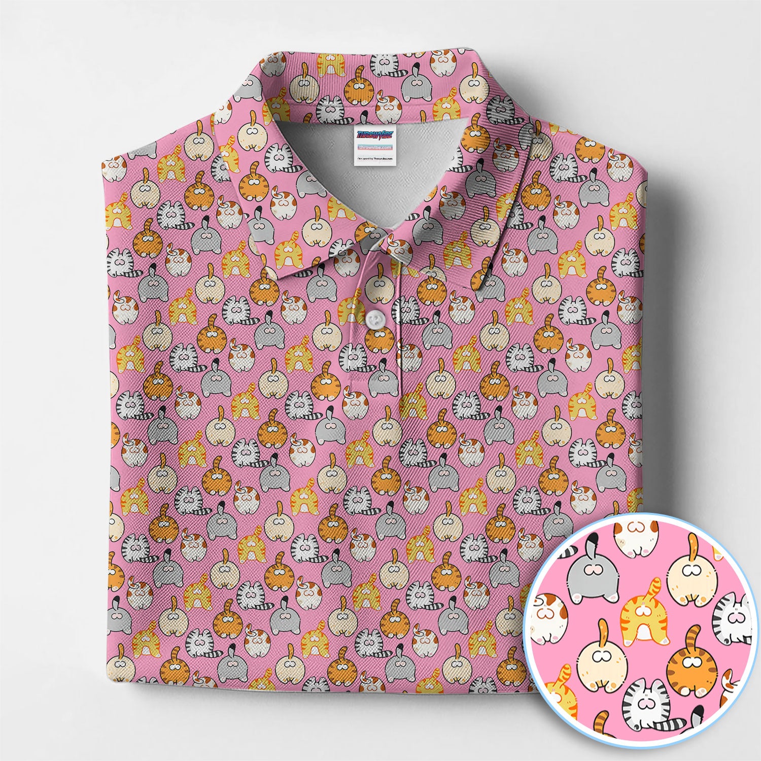Cute Cat Butt Golf Polos, Pet Pattern Golf Shirt For Golfer, Golf Gift For Men