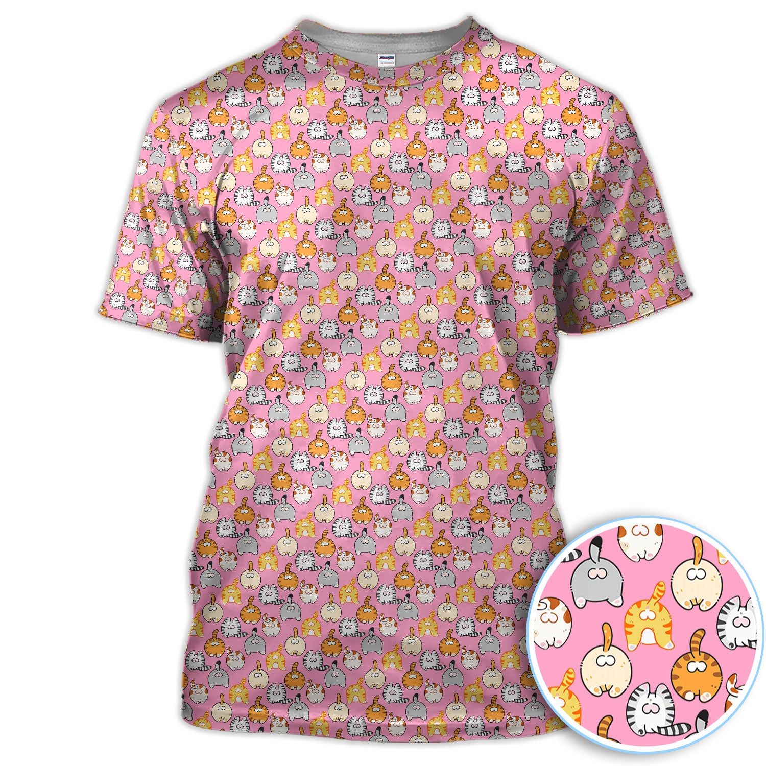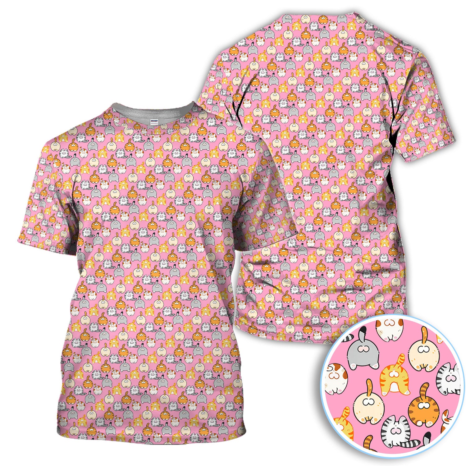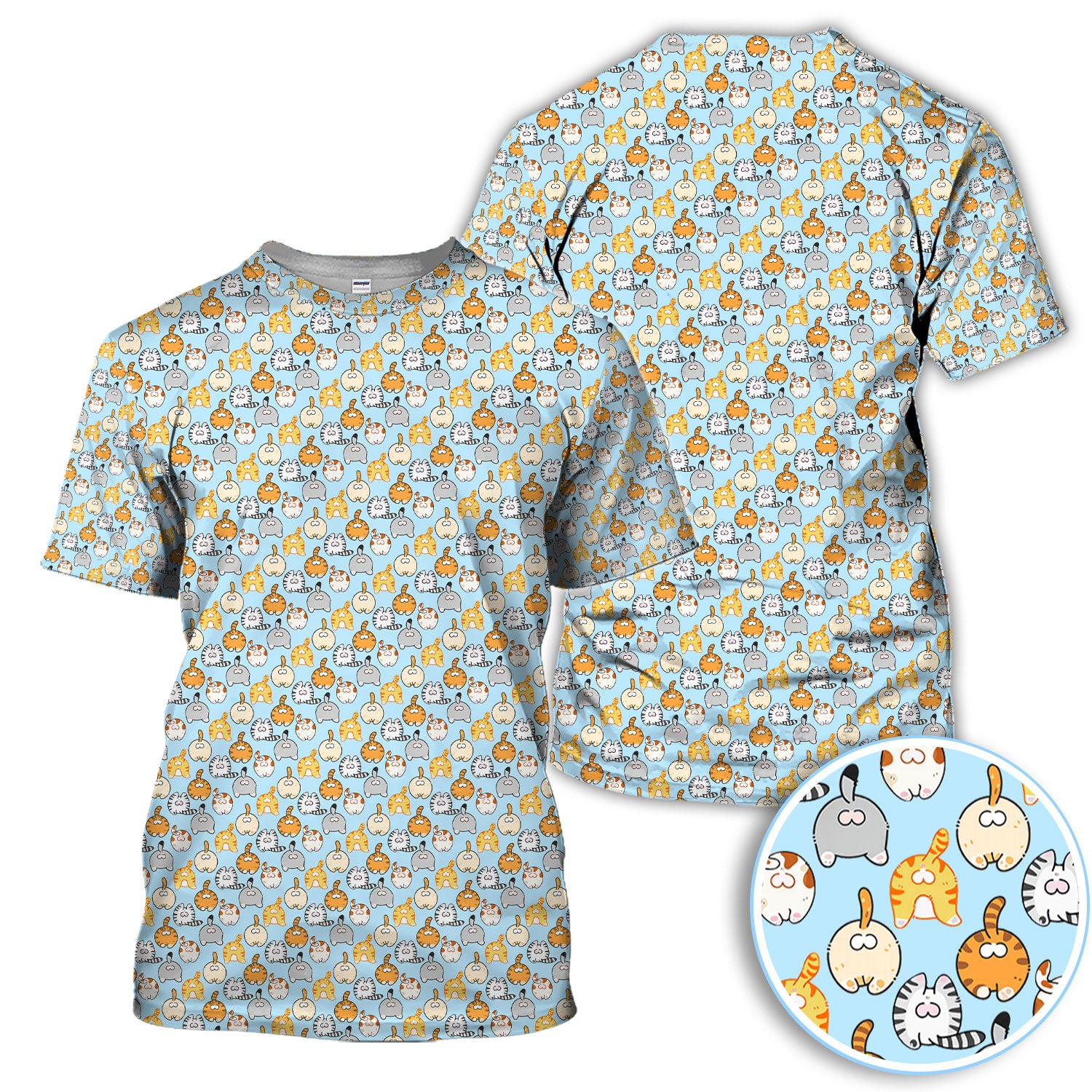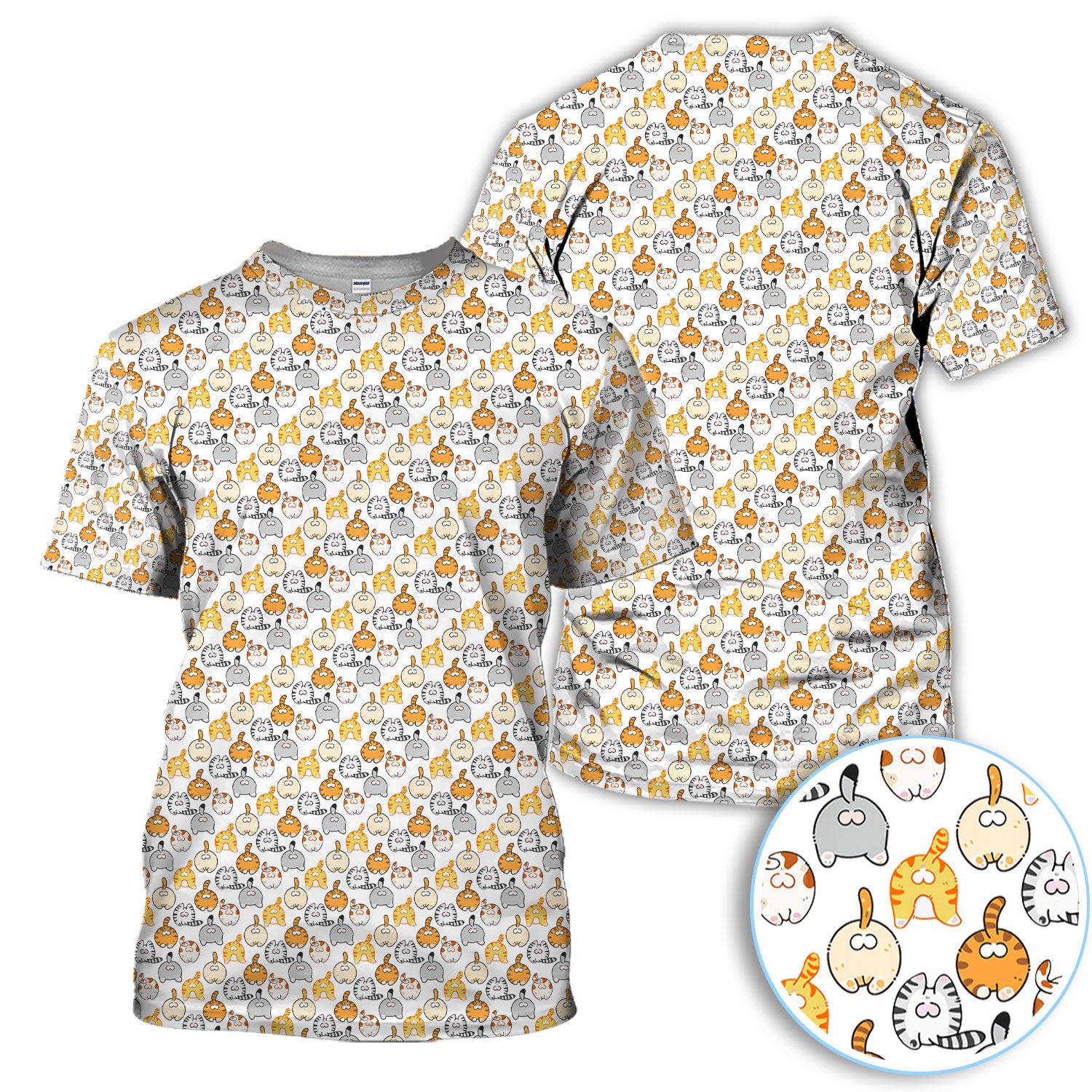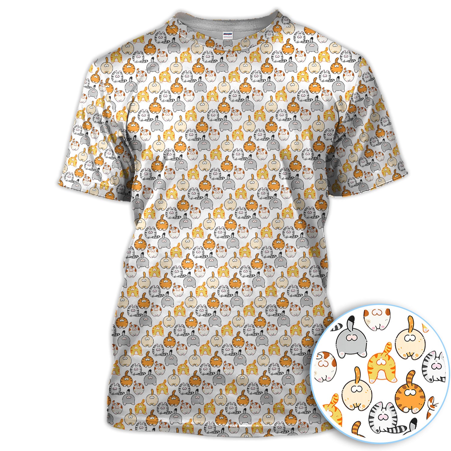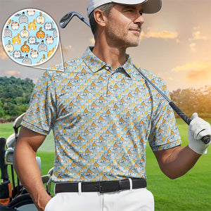 Cute Cat Butt Golf Polos, Pet Pattern Golf Shirt For Golfer, Golf Gift For Men