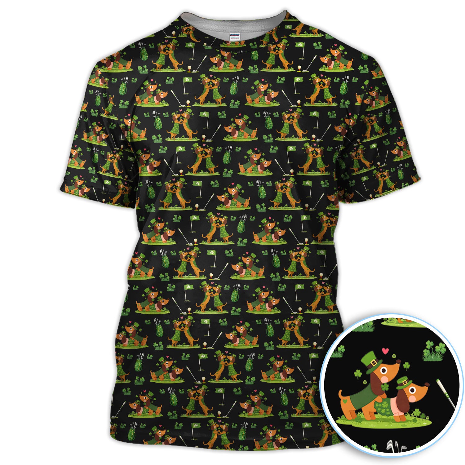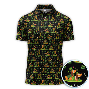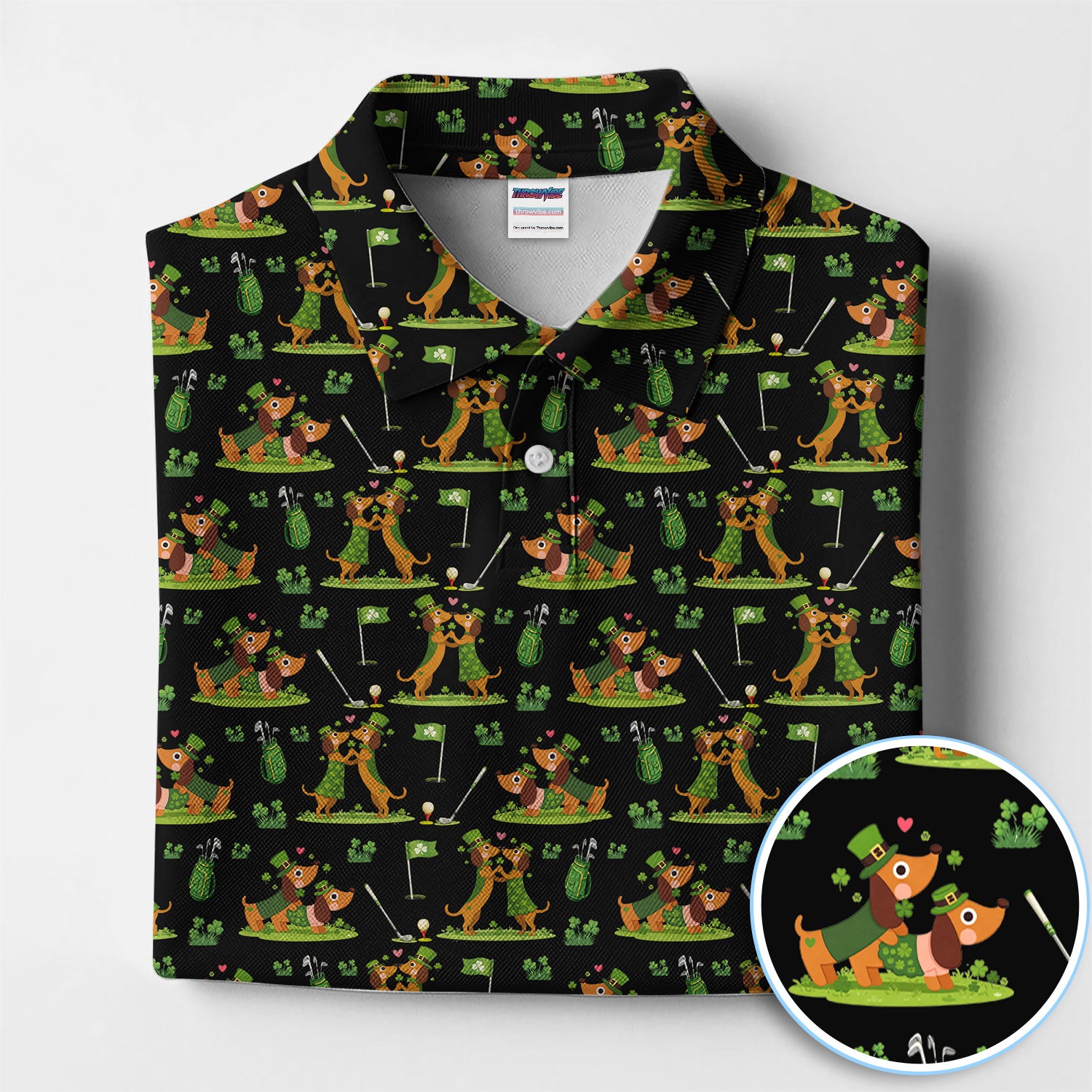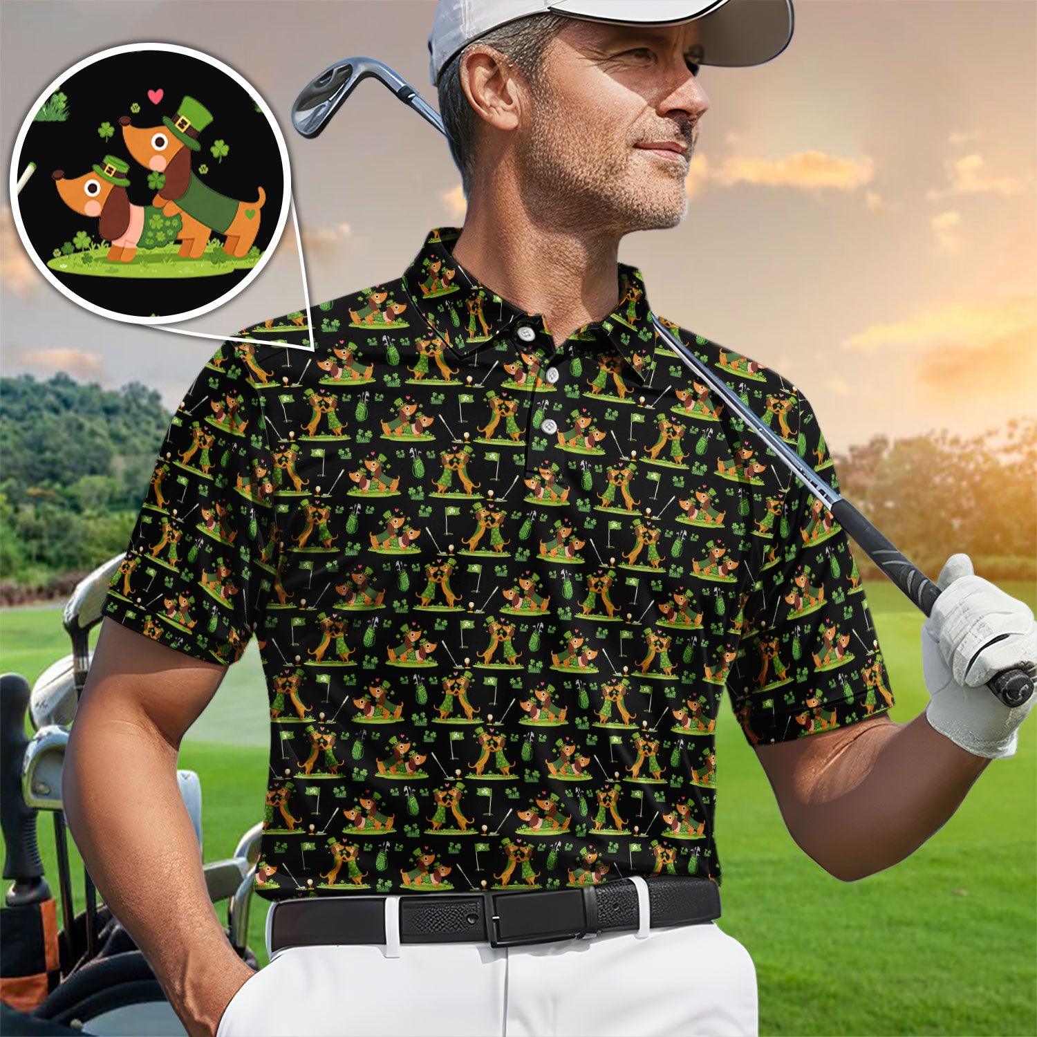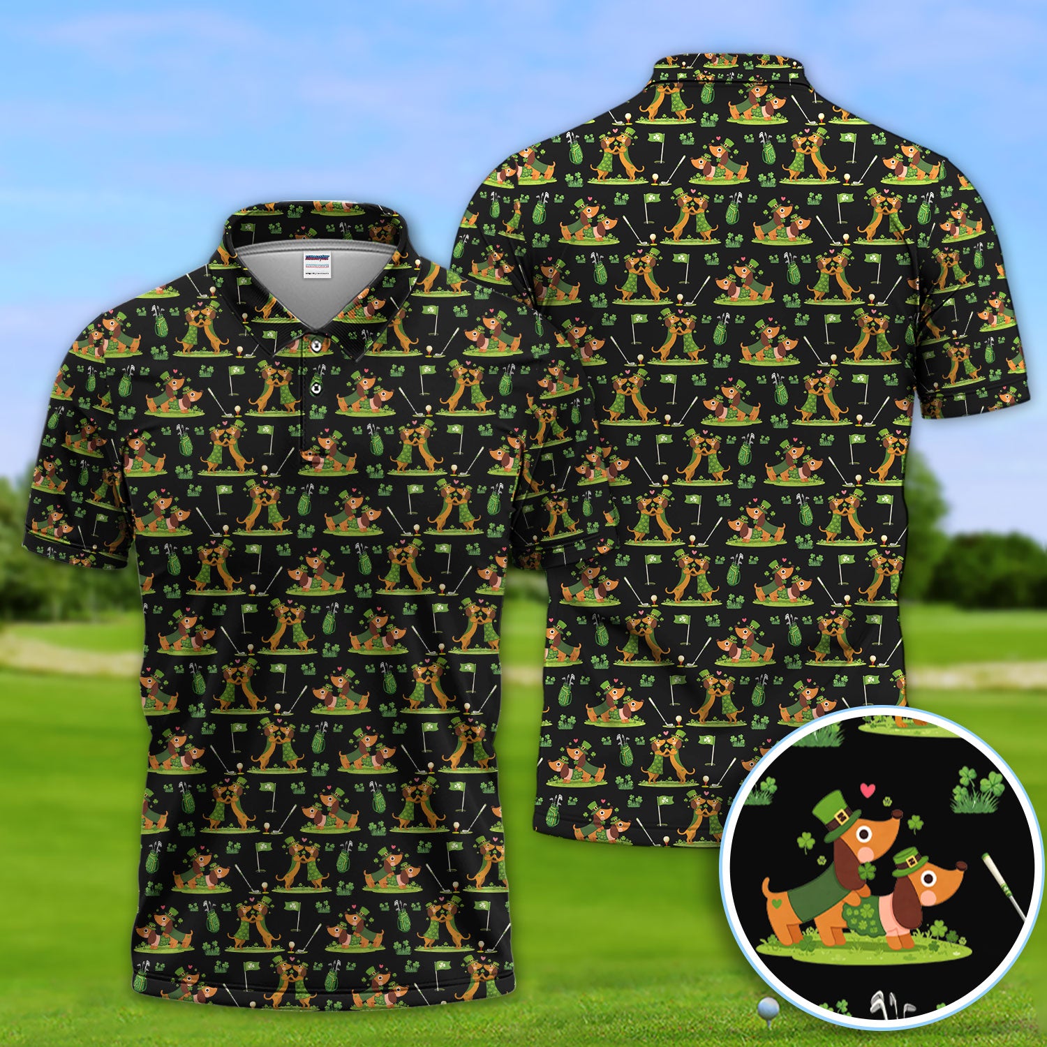 Cute Dachshund St Patrick Pattern Golf Shirt, Wiener Dog Golf Shirt, Golf Gift For Men