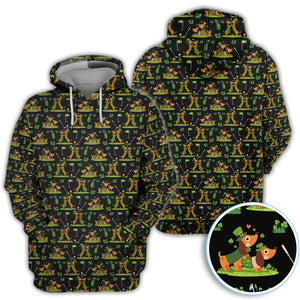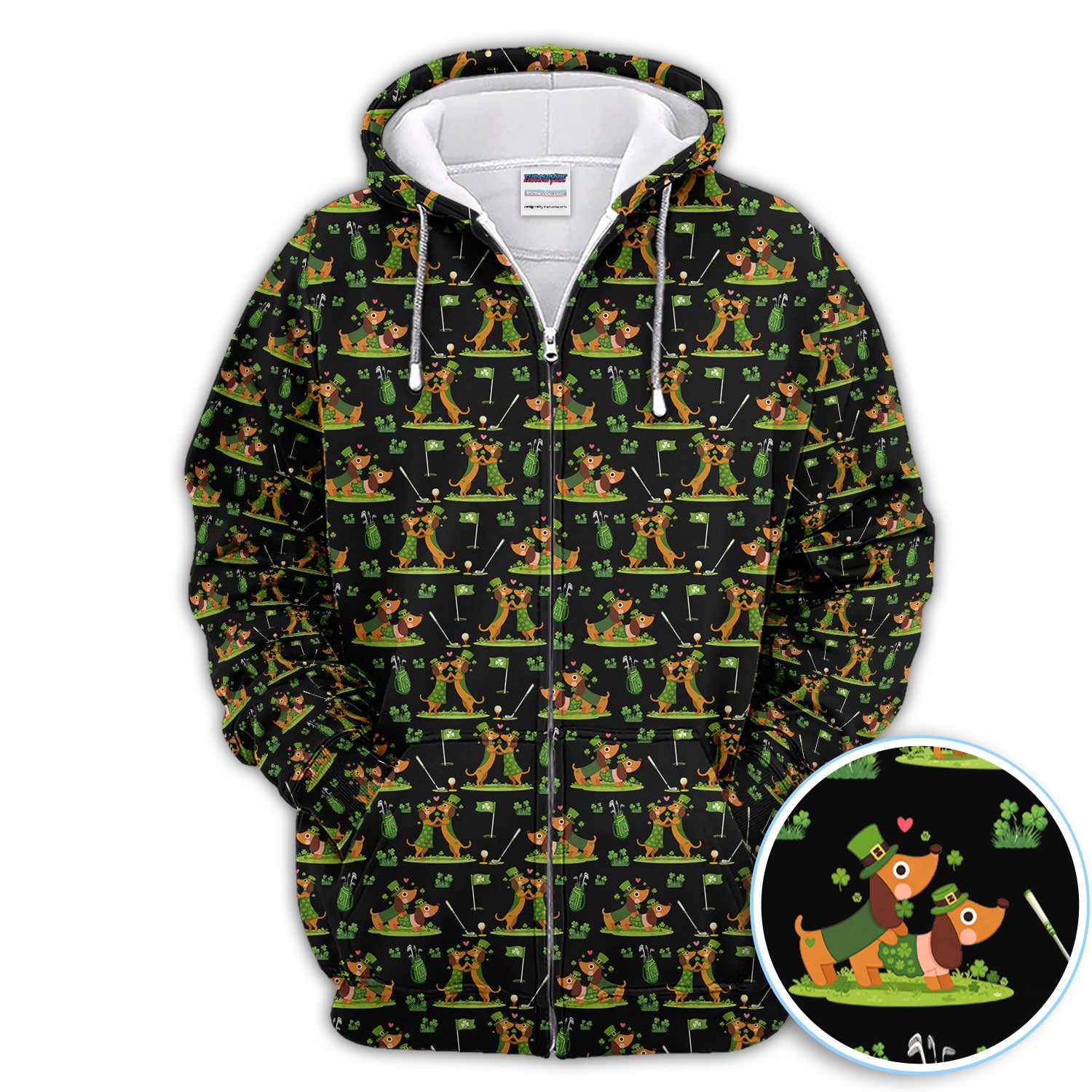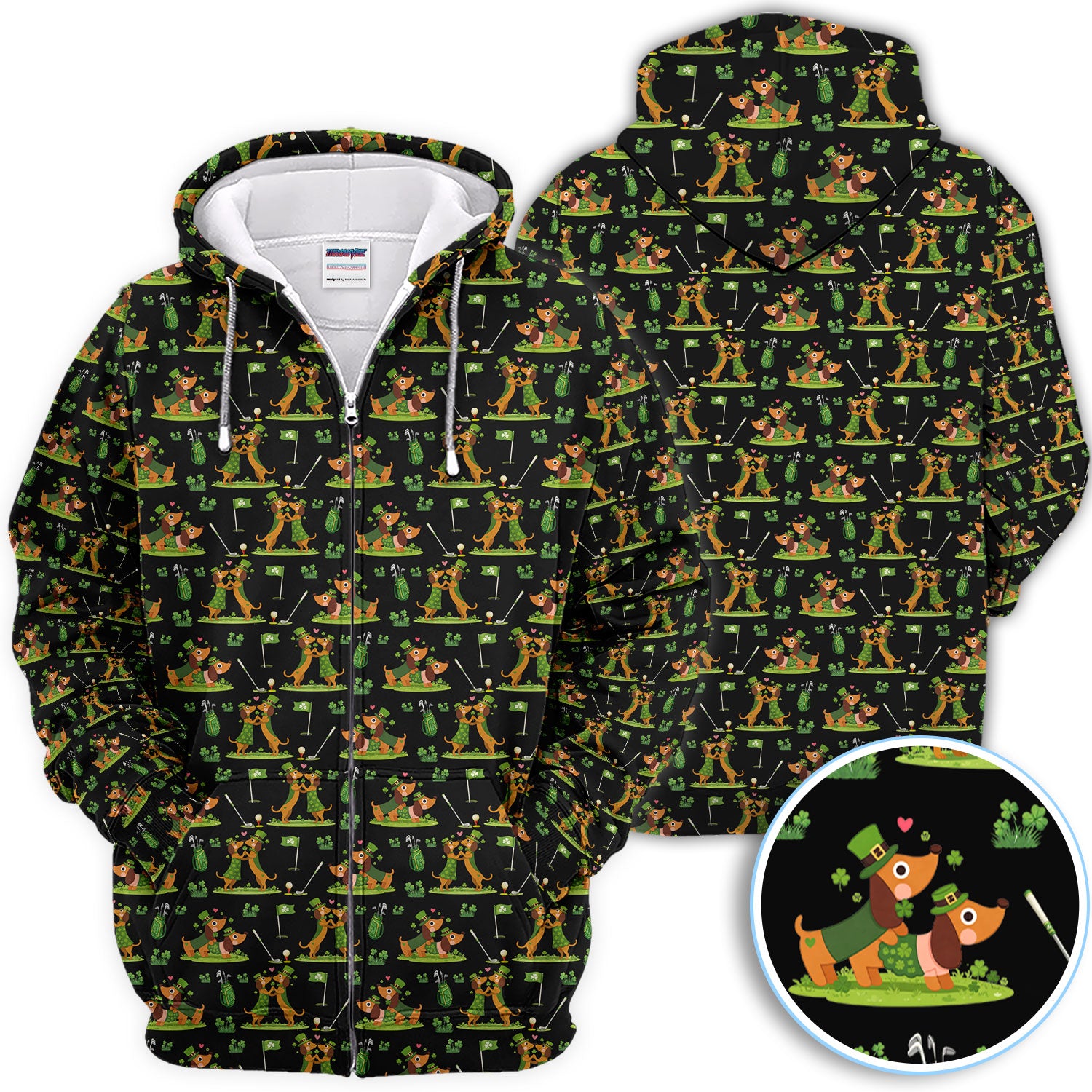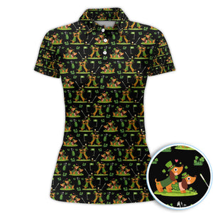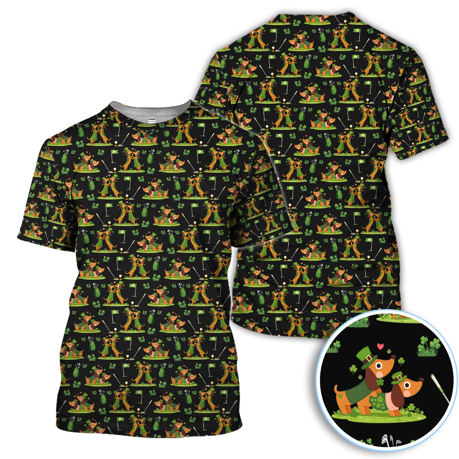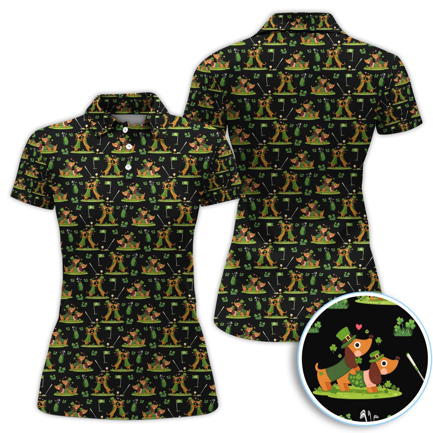Cute Dachshund St Patrick Pattern Golf Shirt, Wiener Dog Golf Shirt, Golf Gift For Men