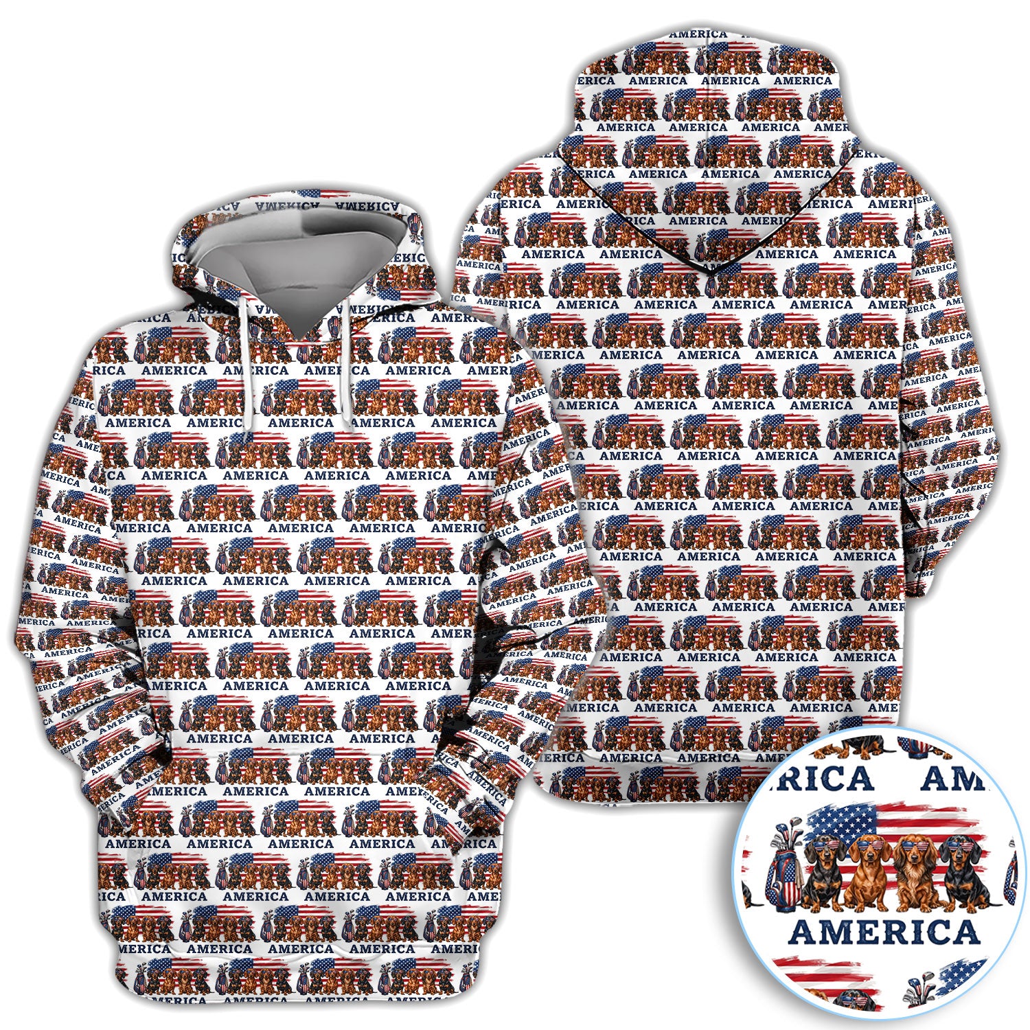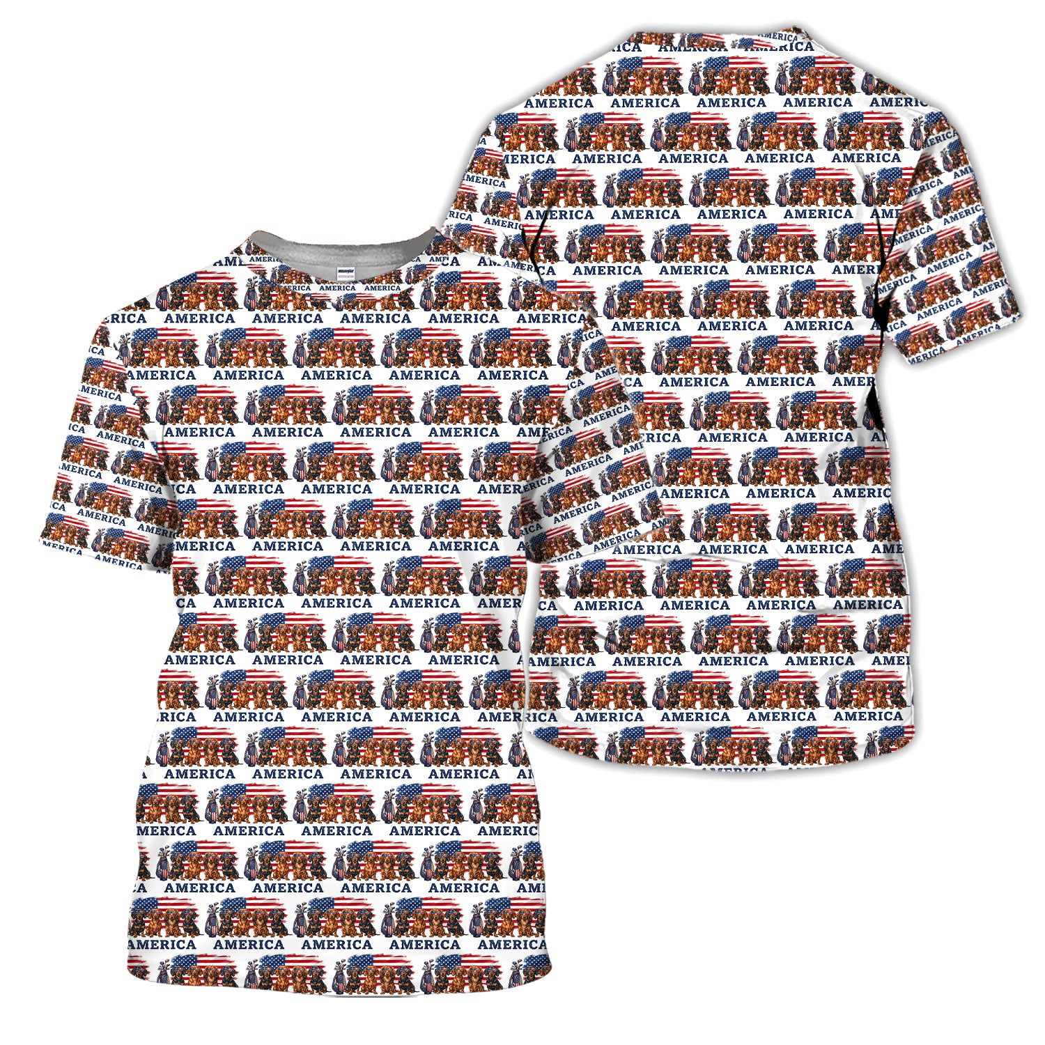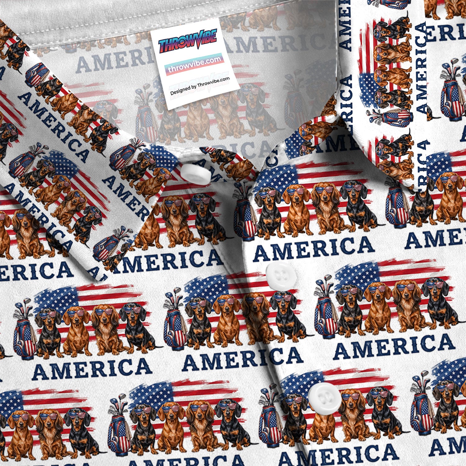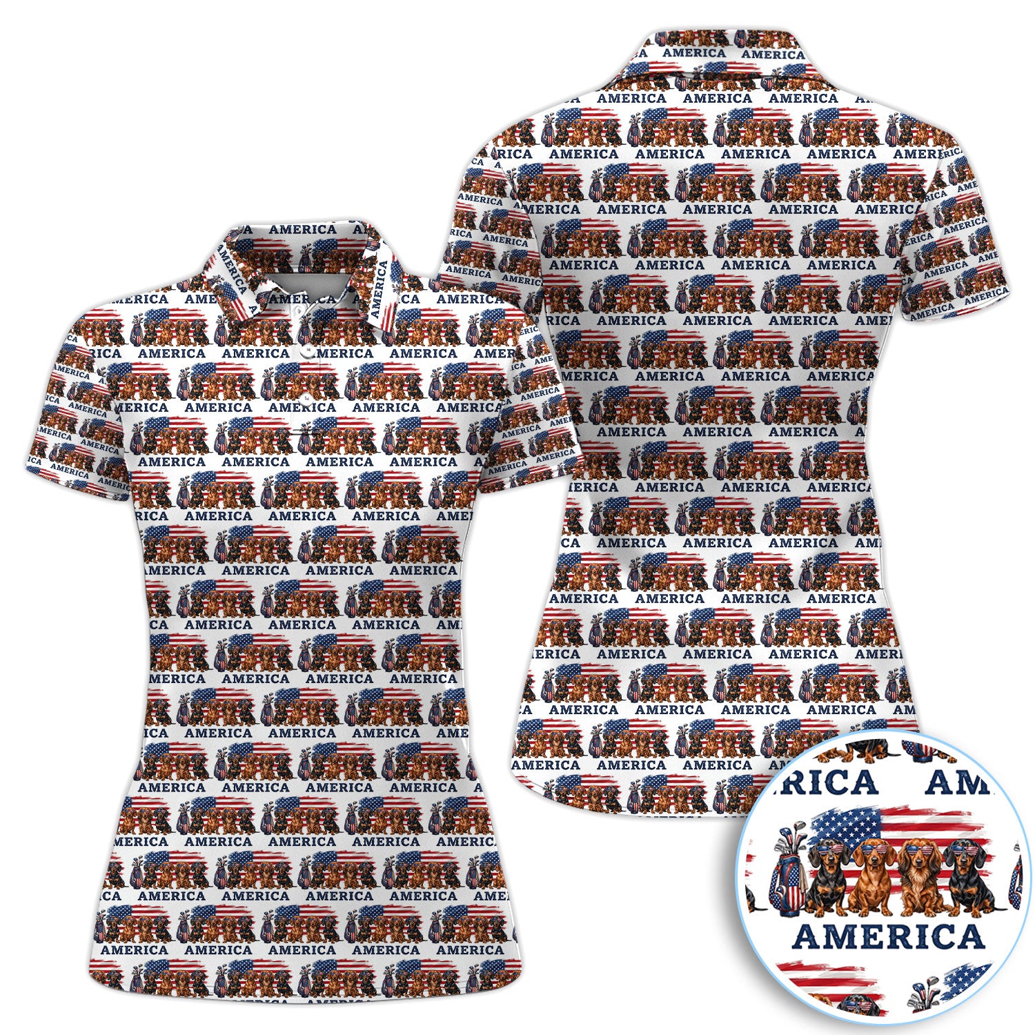 Dachshund America Pattern Golf Polos, Crazy Dachshund Golf Shirt For Men, Funny Golf Shirt