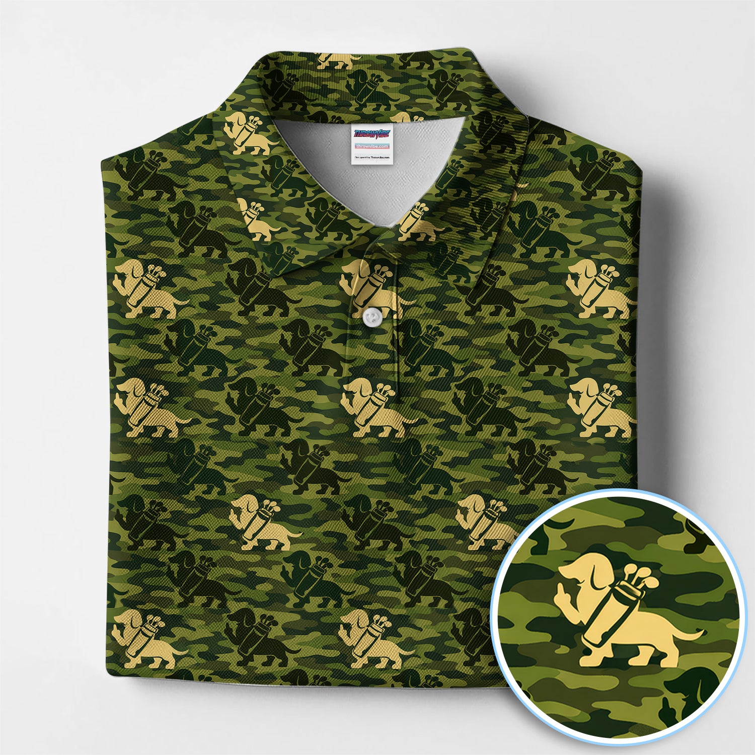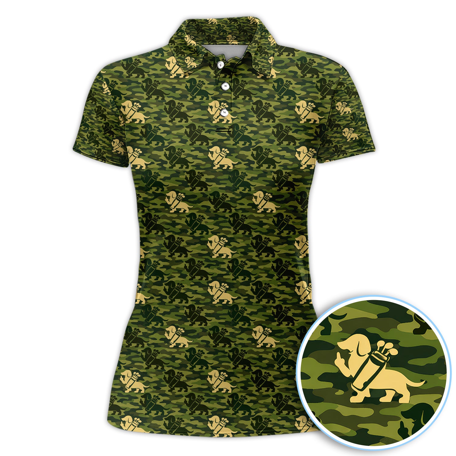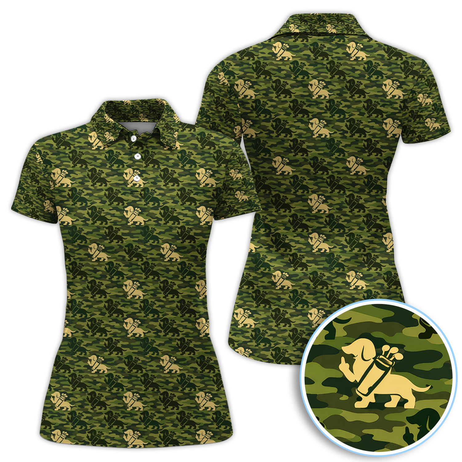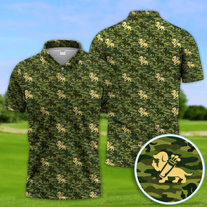 Dachshund Camo Pattern Golf Polos, Wiener Dog Golf Shirt For Golfer, Golf Gift For Men