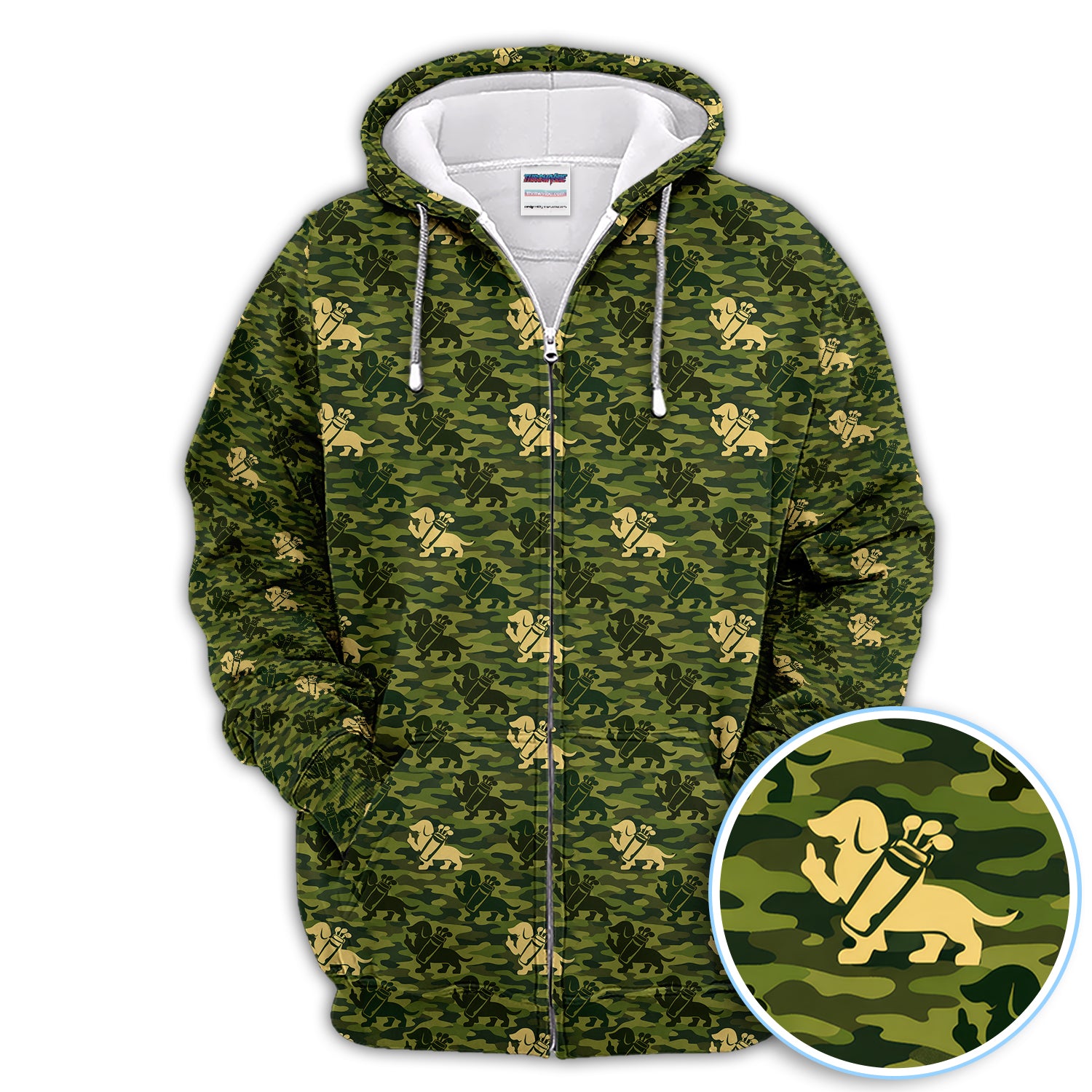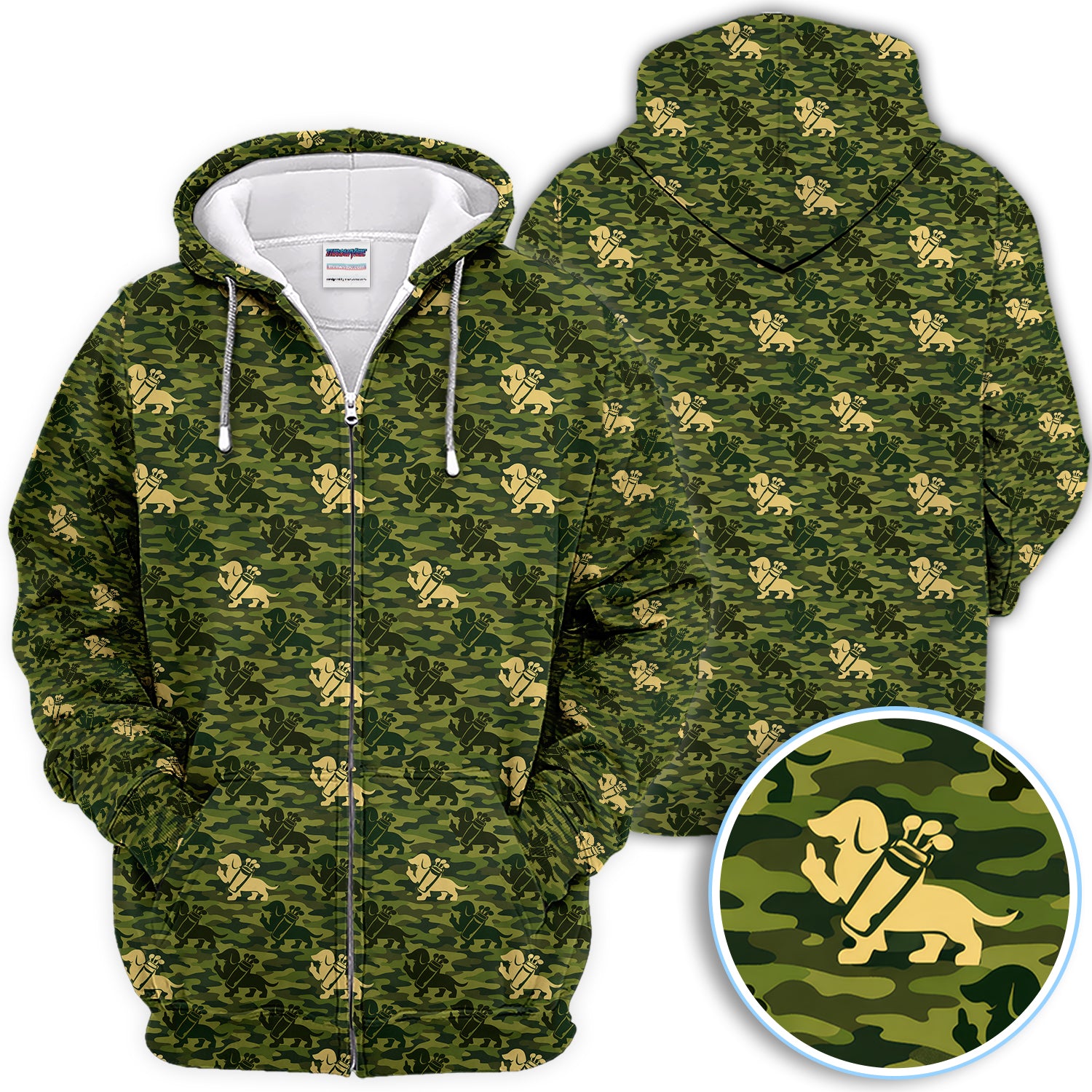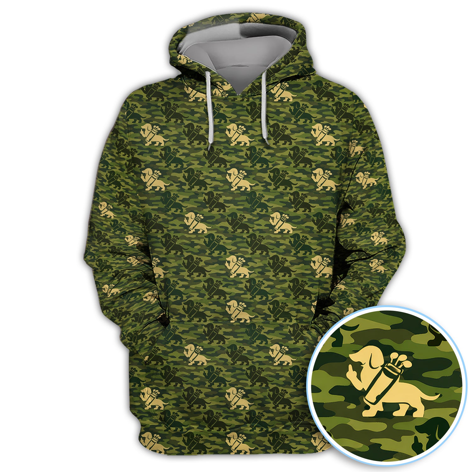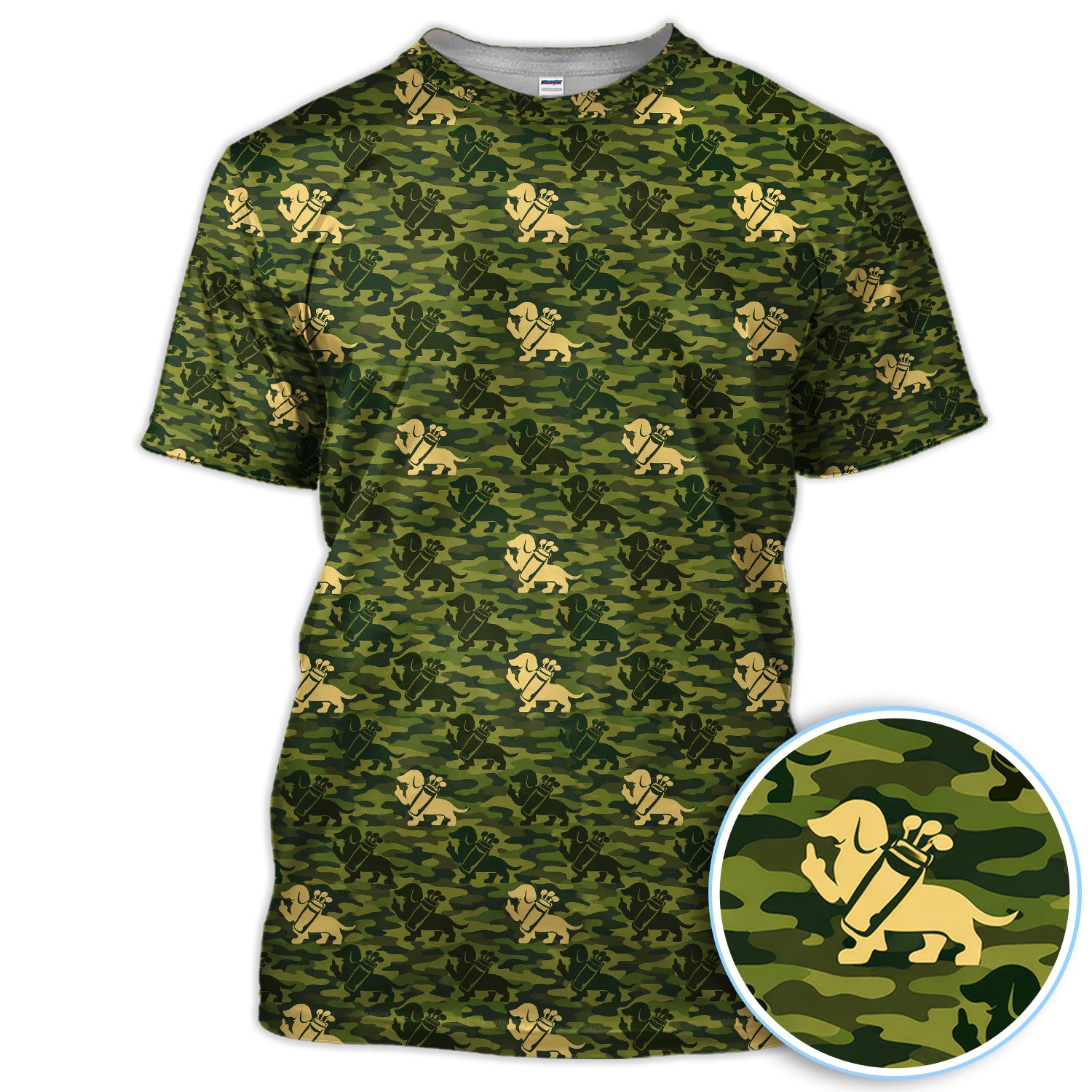 Dachshund Camo Pattern Golf Polos, Wiener Dog Golf Shirt For Golfer, Golf Gift For Men