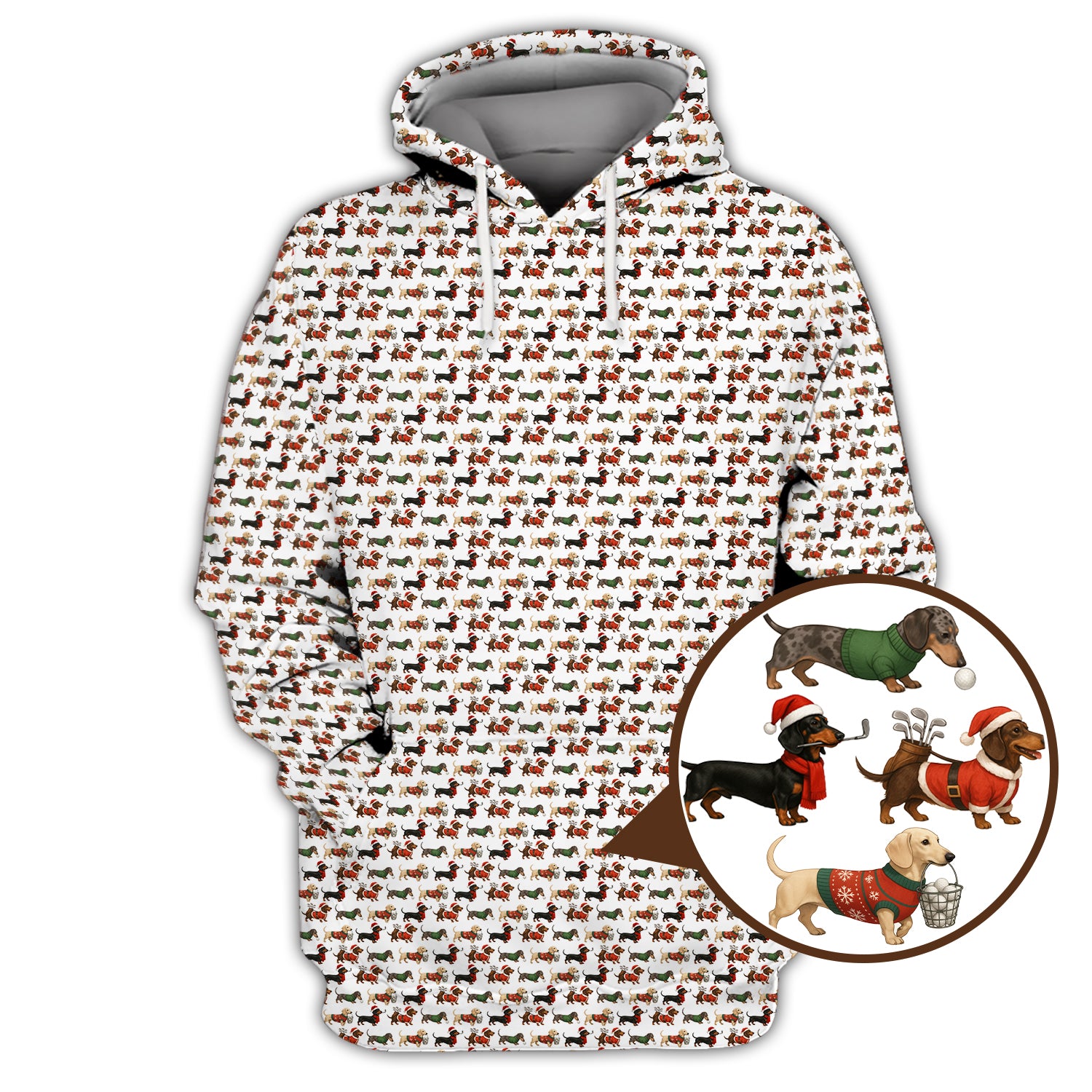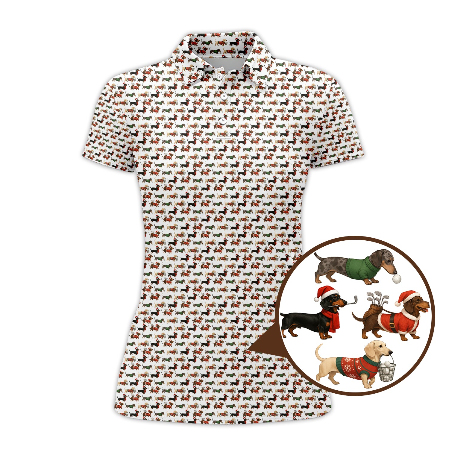 Dachshund Christmas Shirt For Golfer, Dog Pattern Golf Shirt, Funny Golf Shirt For Men