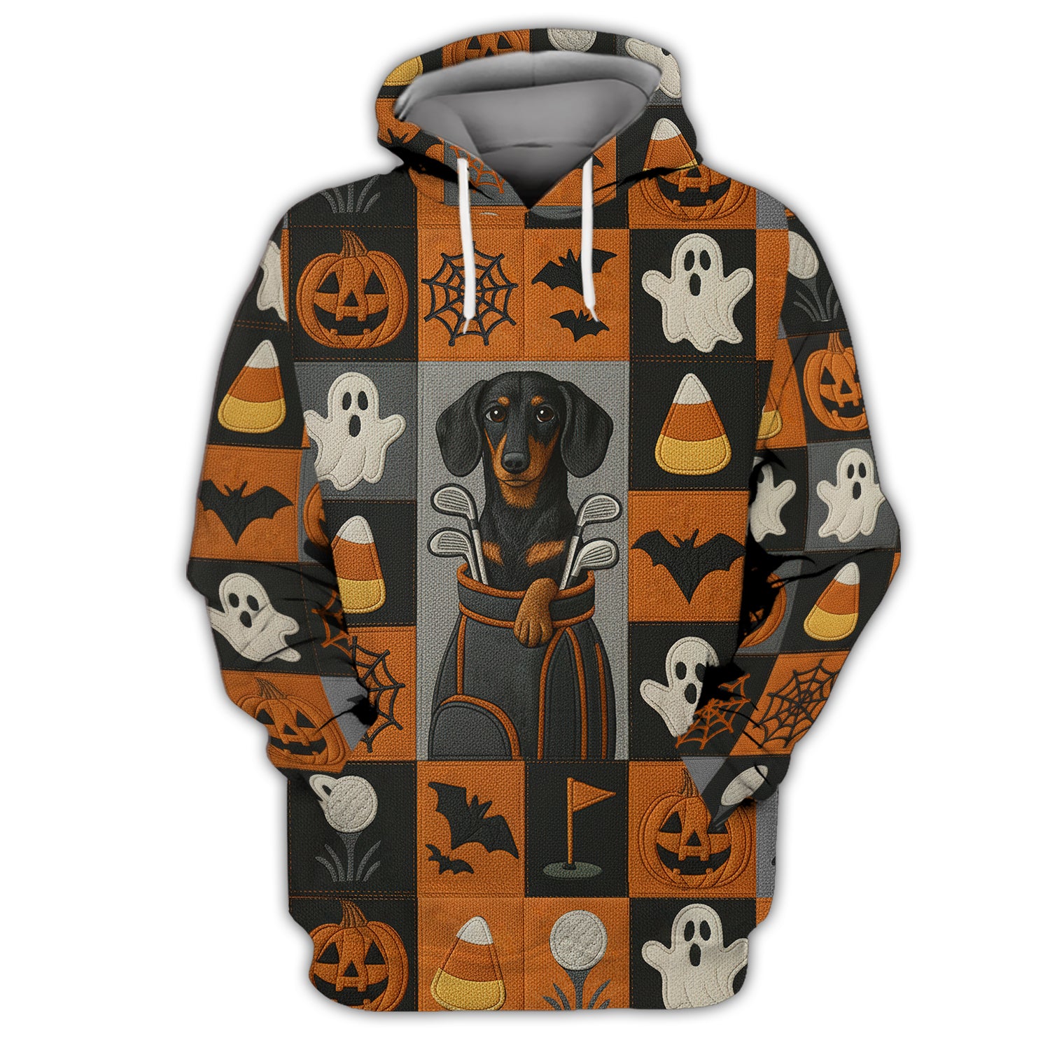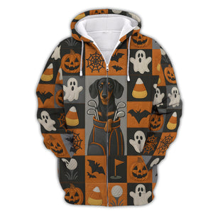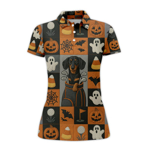Dachshund Golf Shirt For Dog Lover, Halloween Pattern Golf Shirt, Crazy Golf Shirt For Men