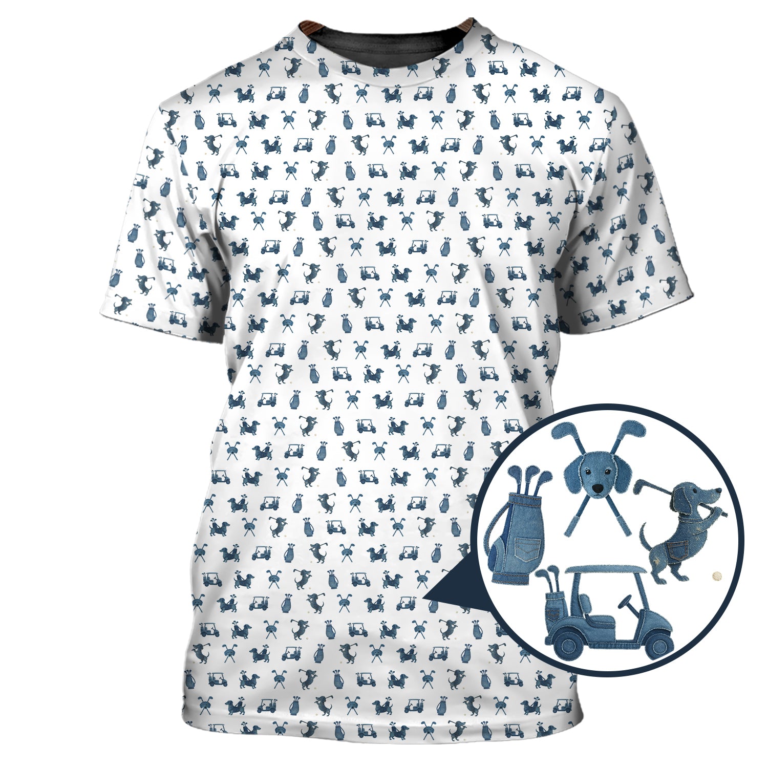 Dachshund Golf Shirt For Golfer, Funny Pattern Golf Shirt, Dog Golf Shirt, Golf Gift For Men