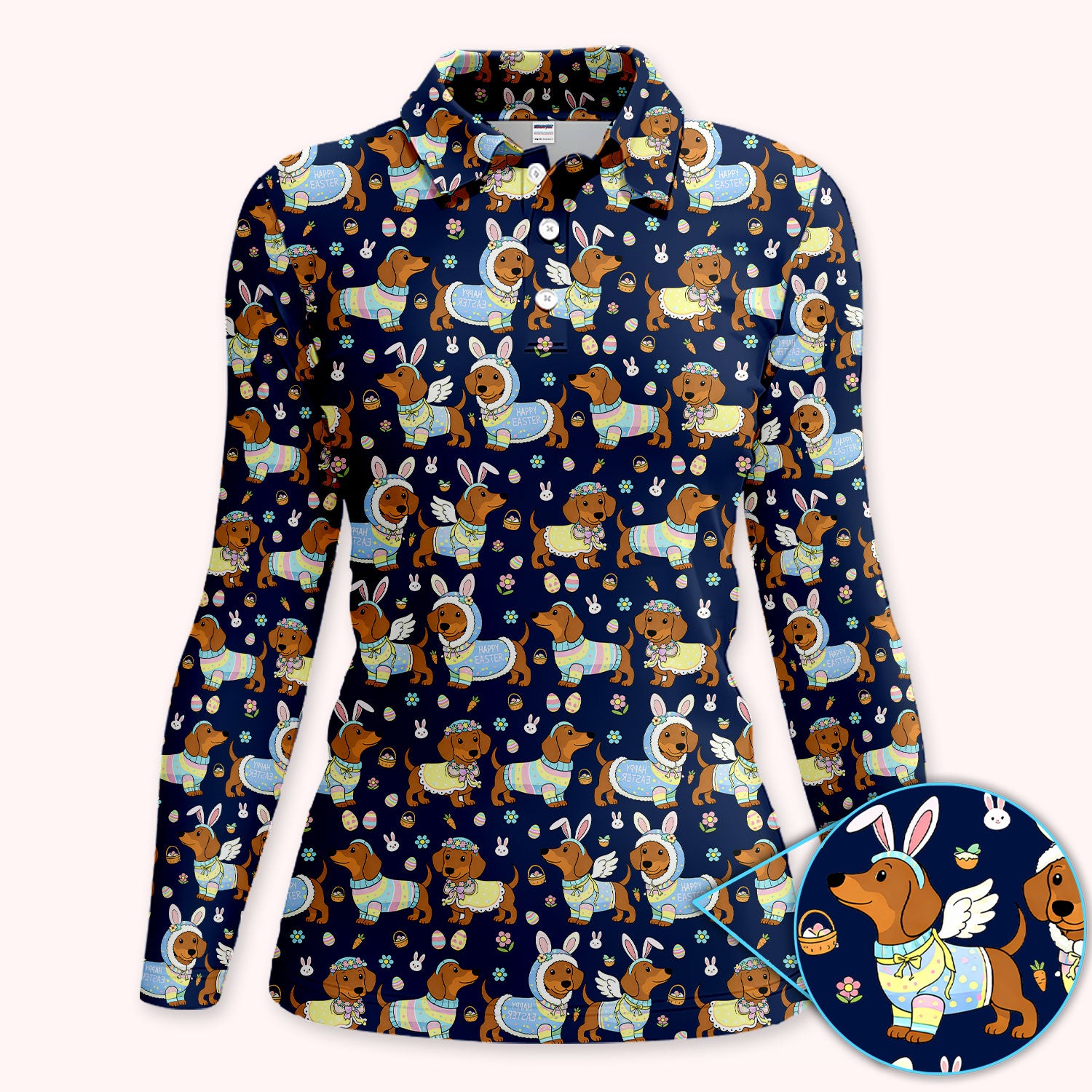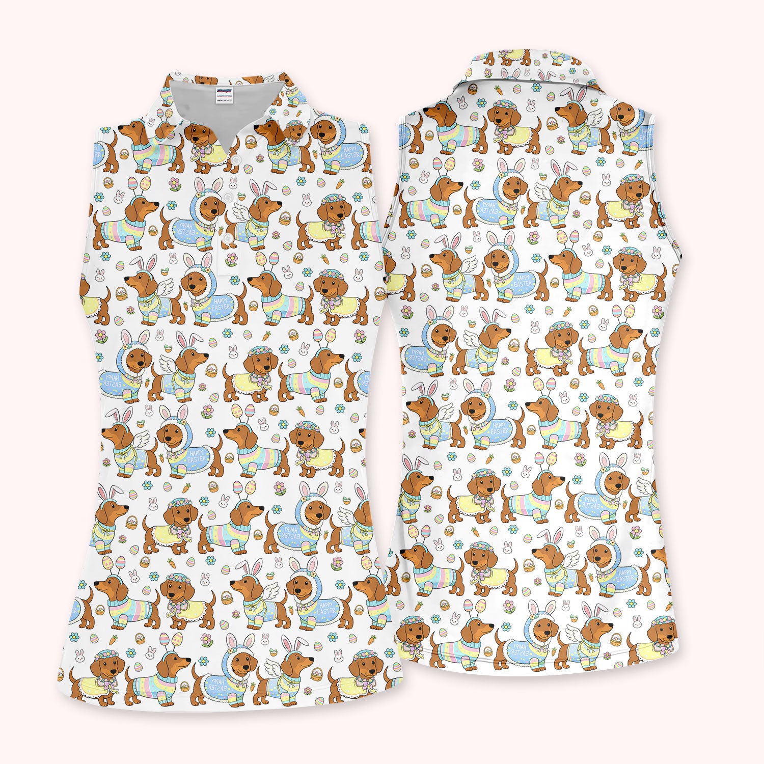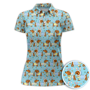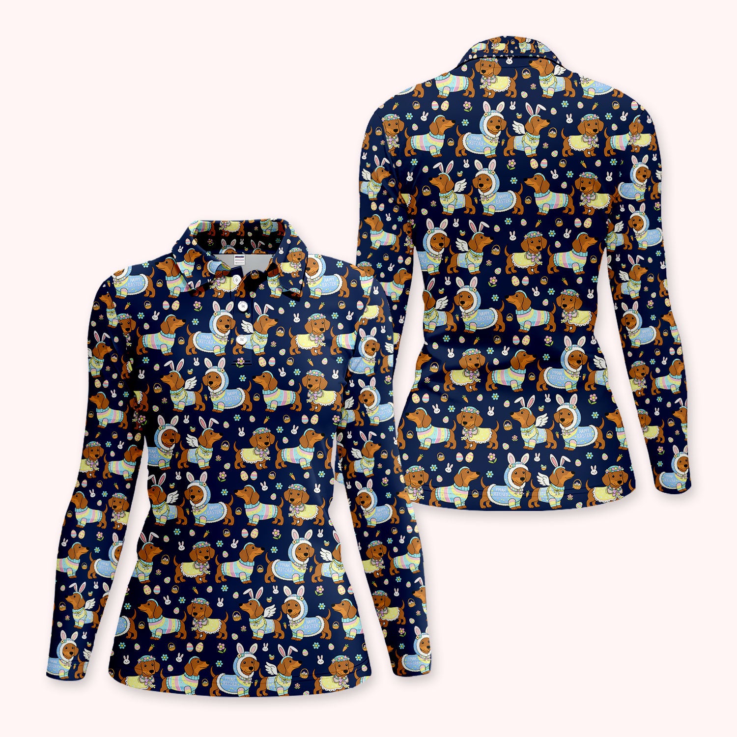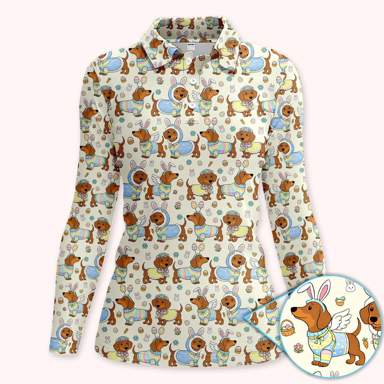 Dachshund Happy Easter Golf Polos, Easter Wiener Dog Pattern Golf Shirt, Golf Gift For Women