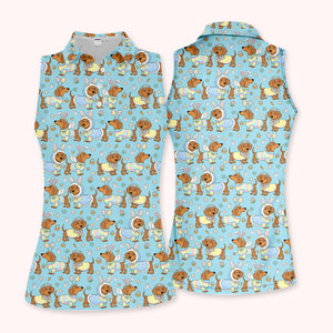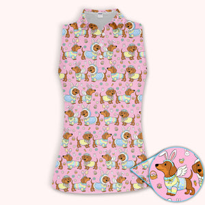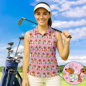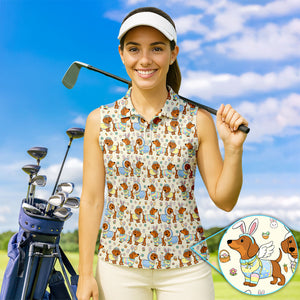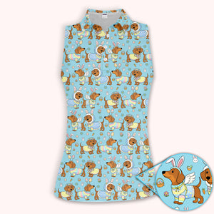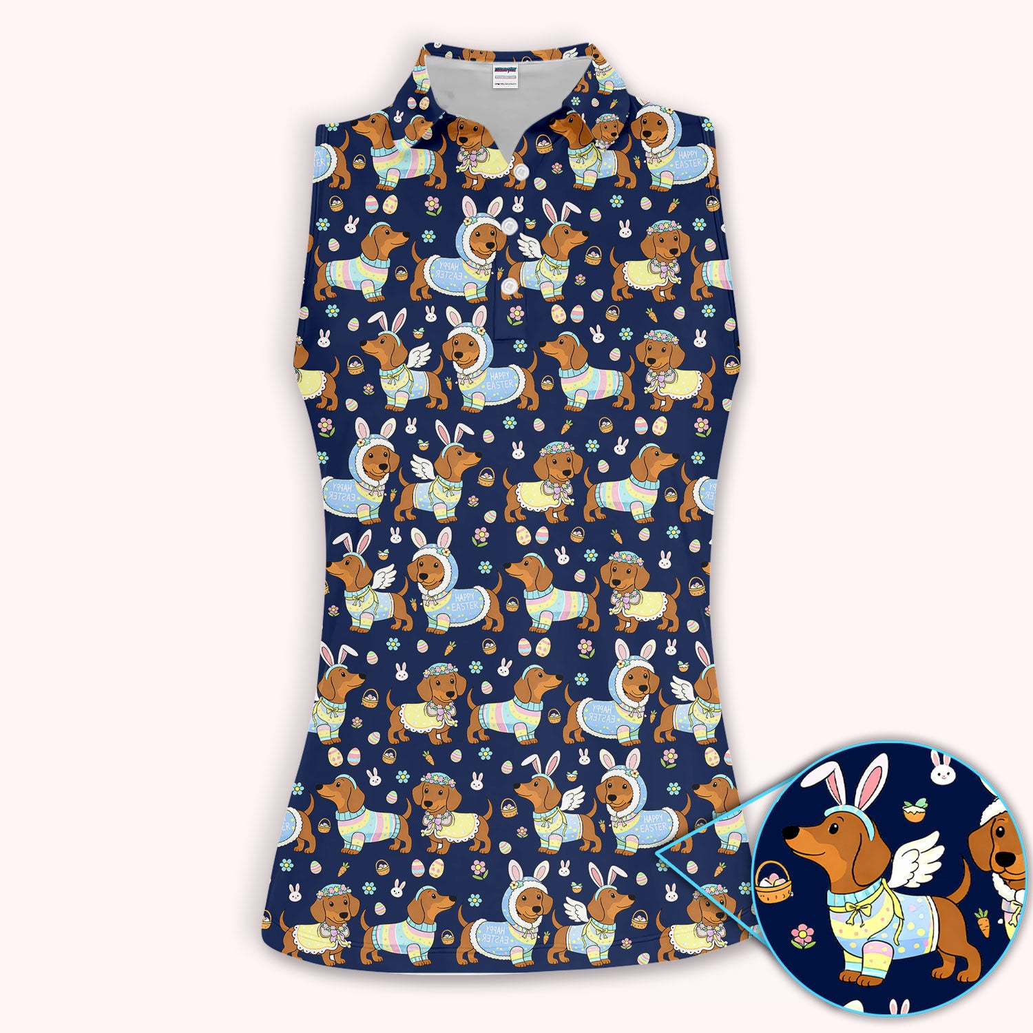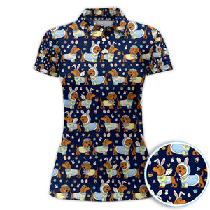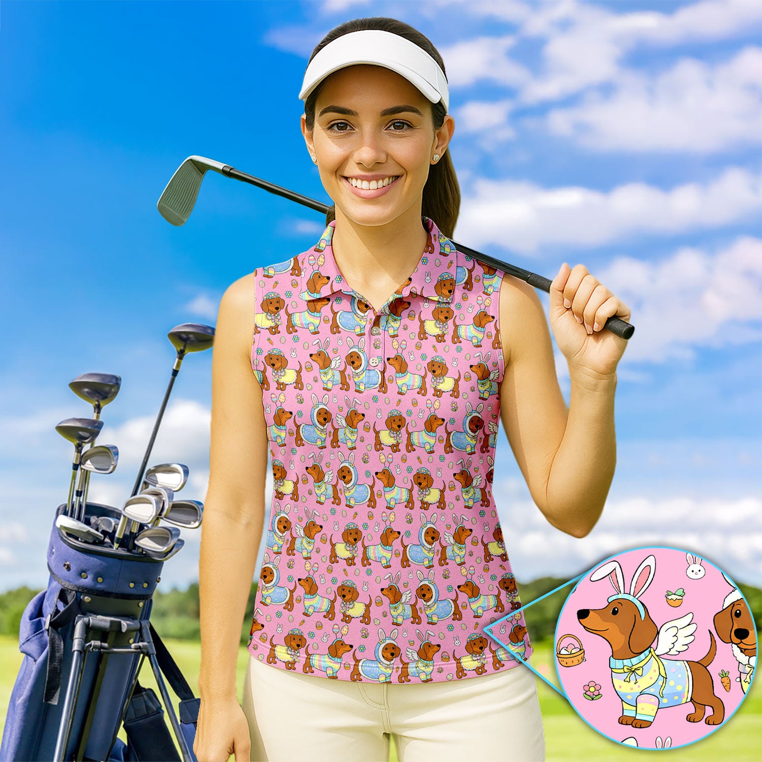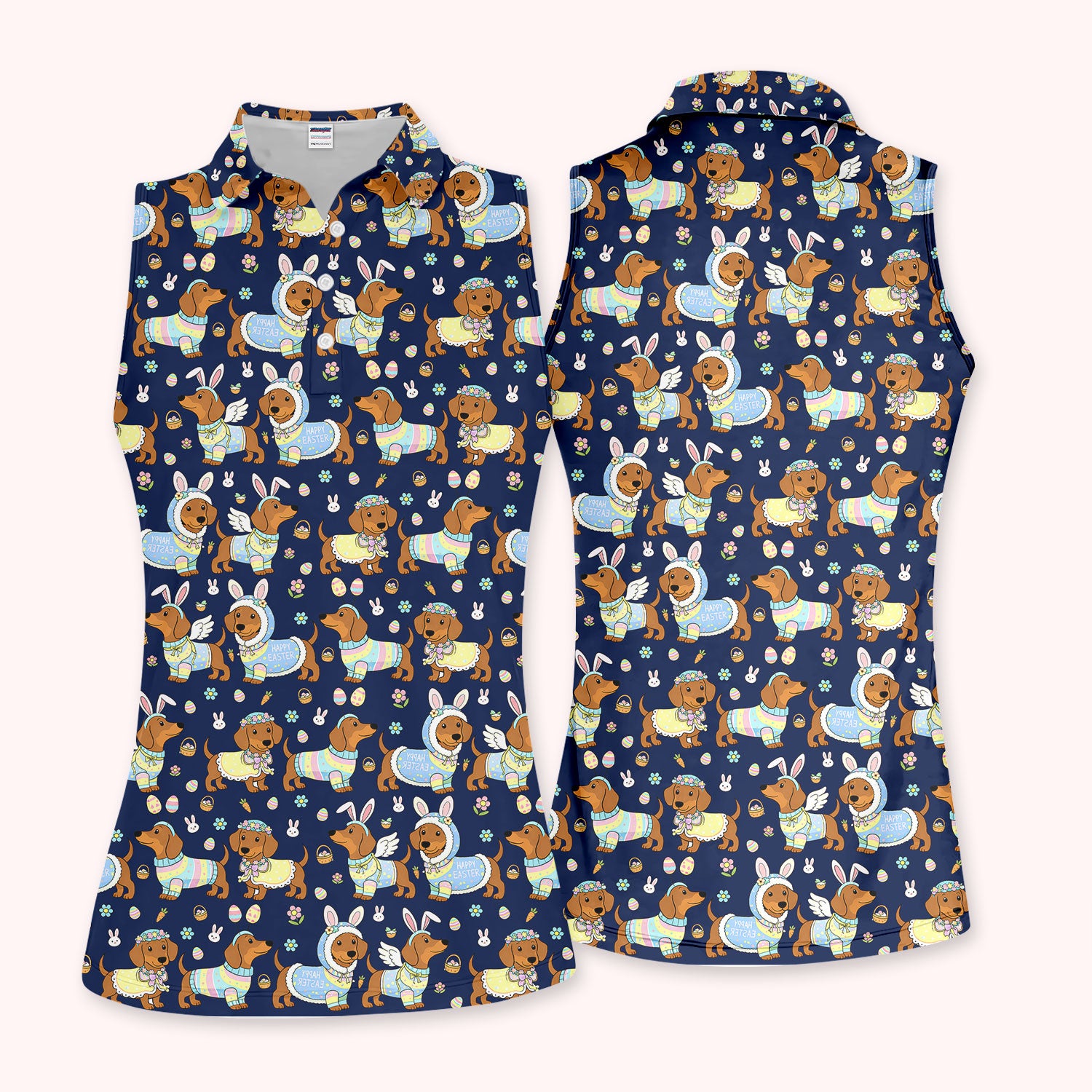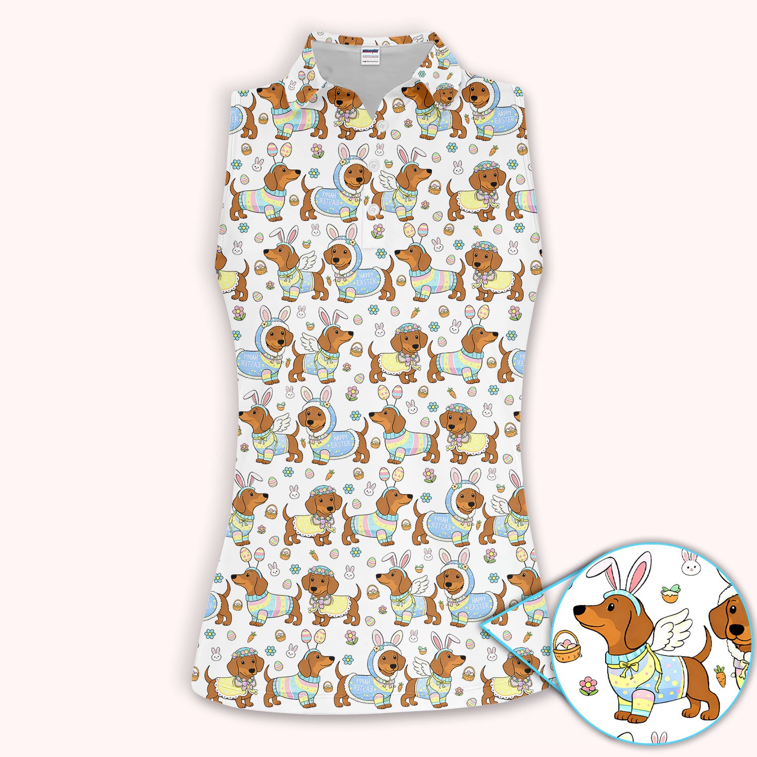 Dachshund Happy Easter Golf Polos, Easter Wiener Dog Pattern Golf Shirt, Golf Gift For Women