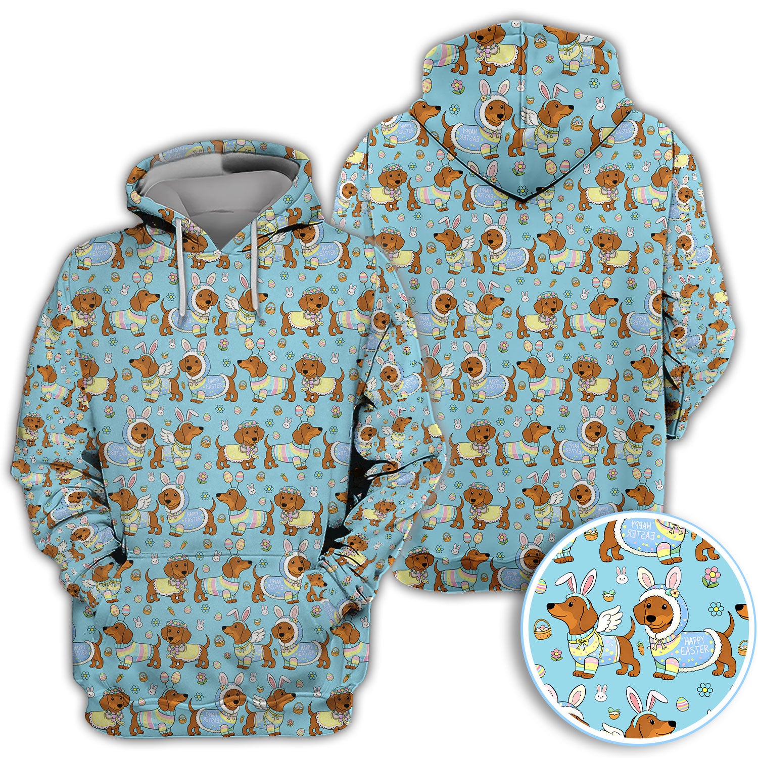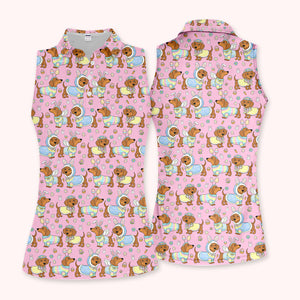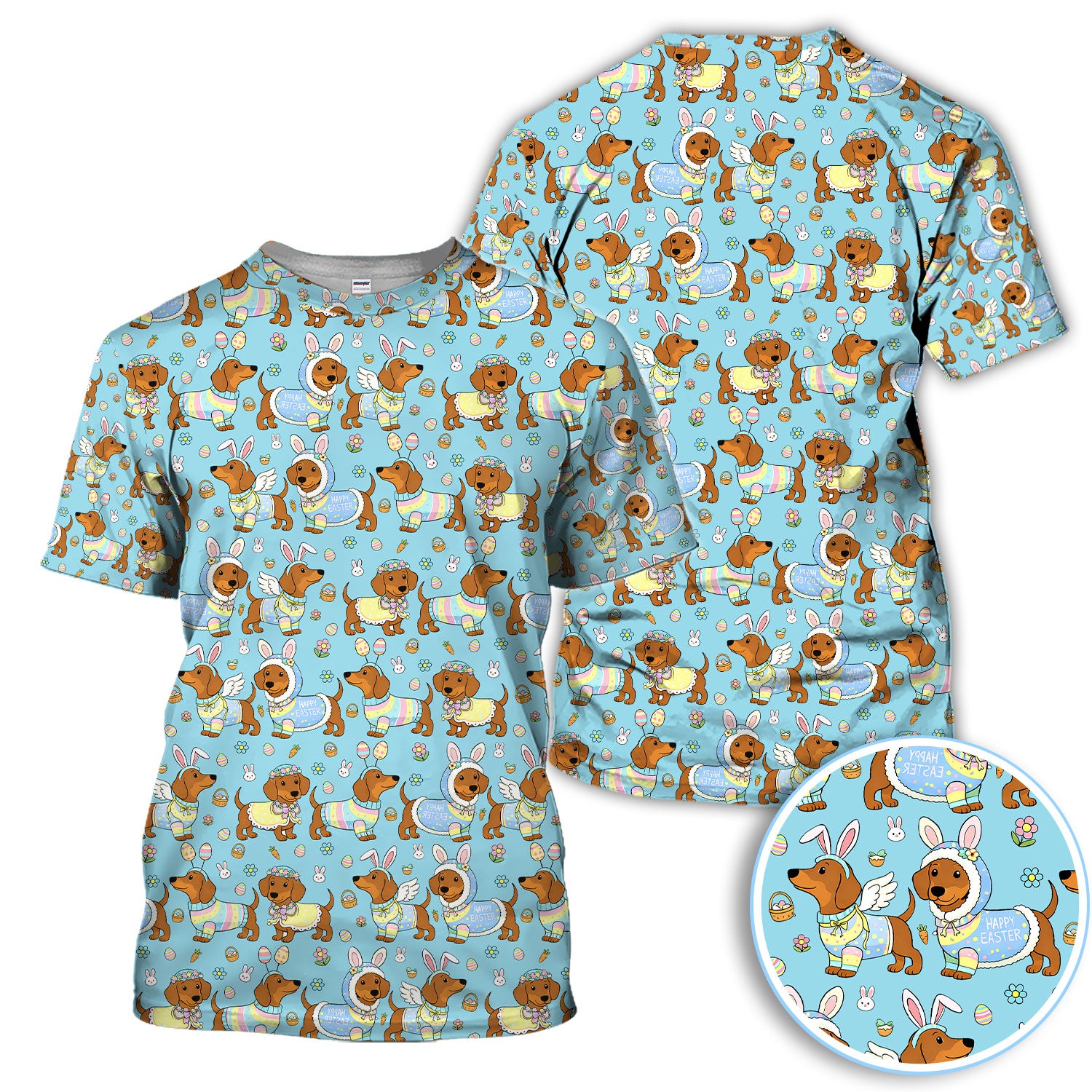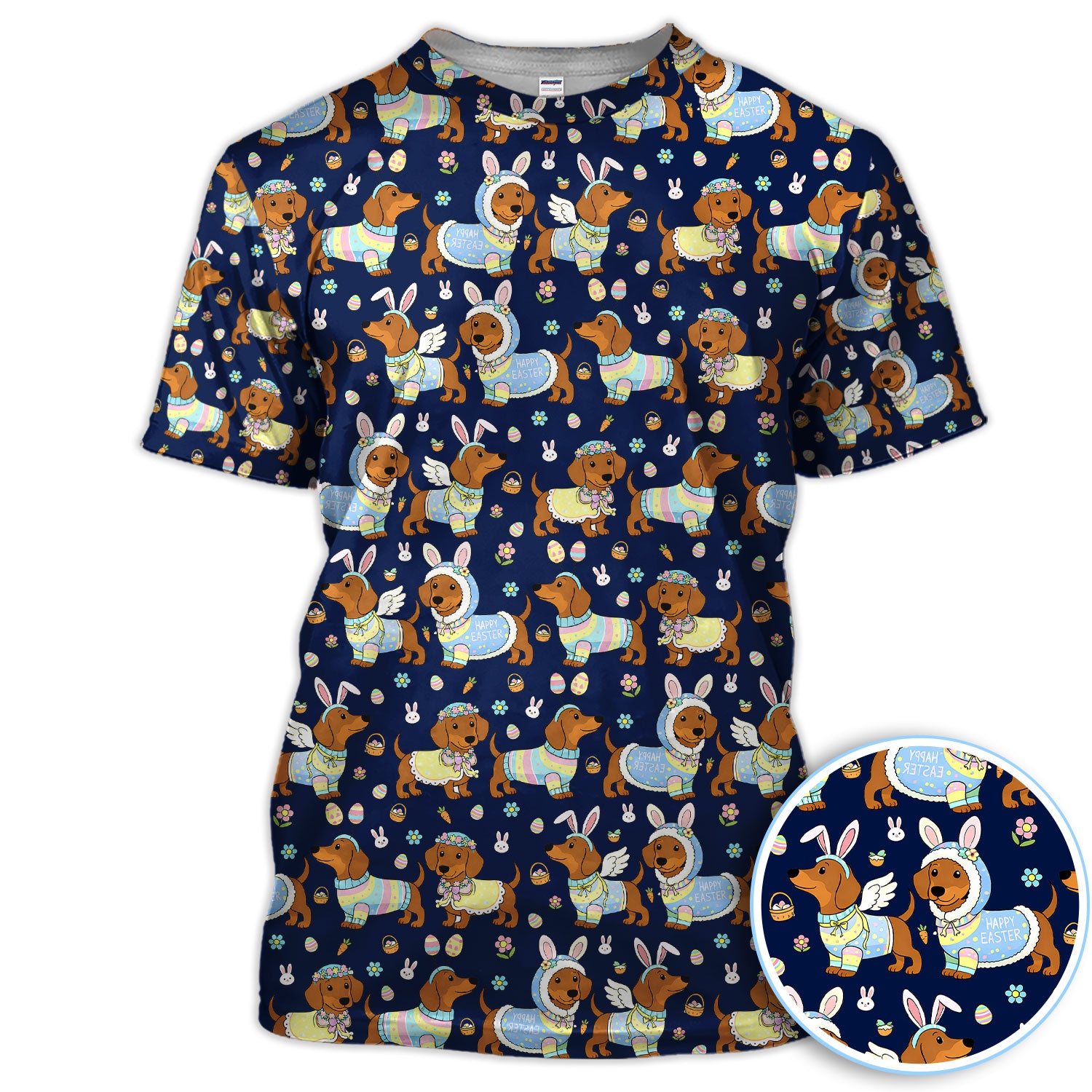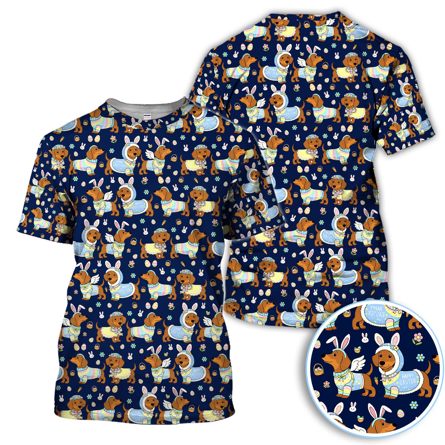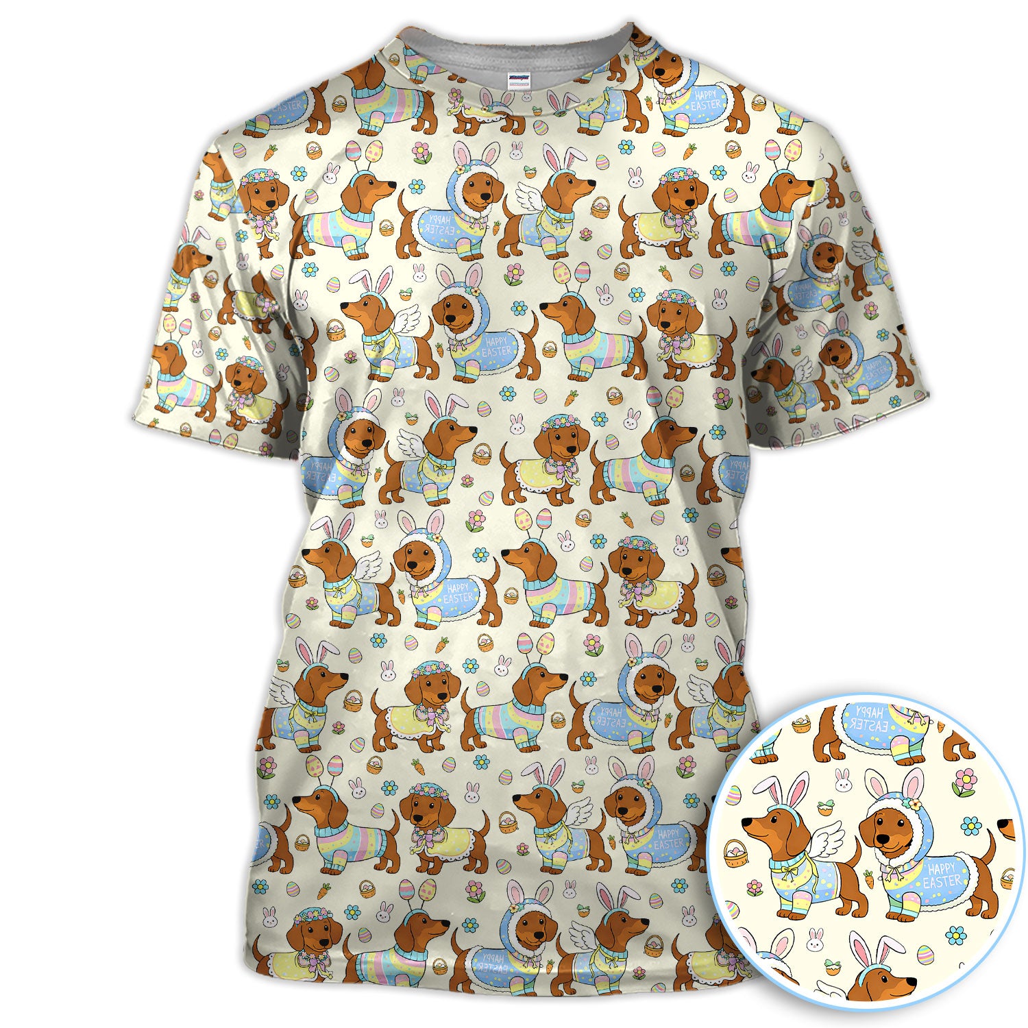 Dachshund Happy Easter Golf Polos, Easter Wiener Dog Pattern Golf Shirt, Golf Gift For Women