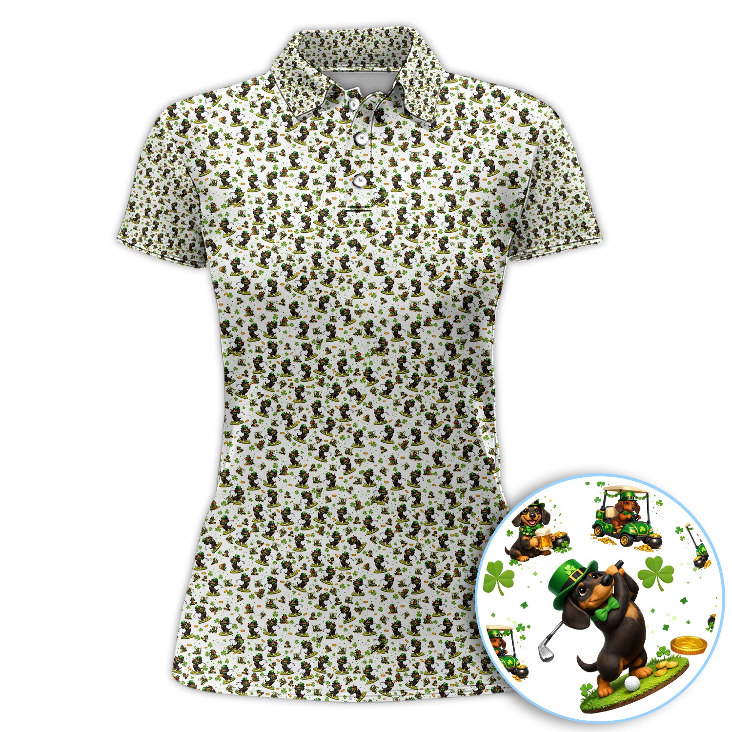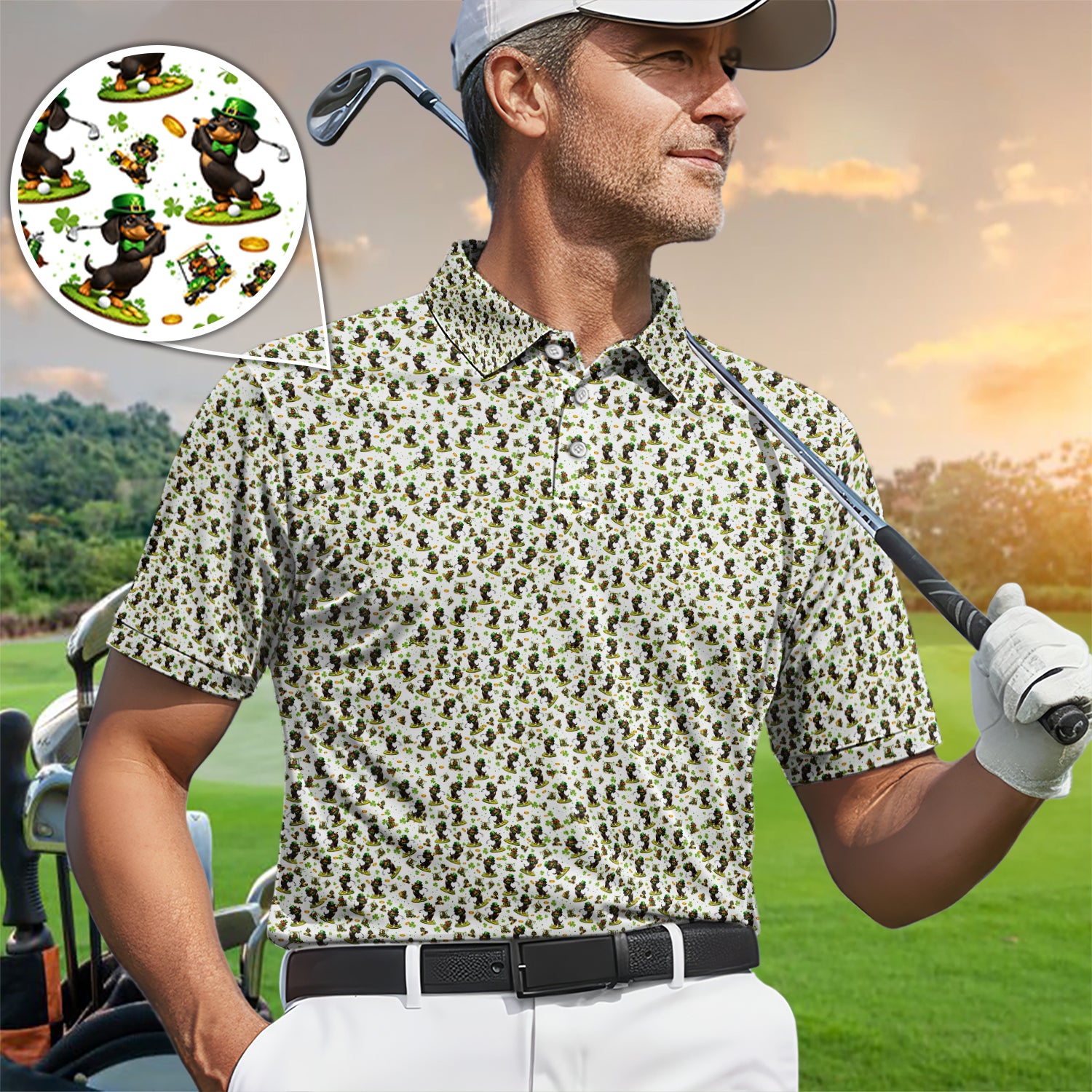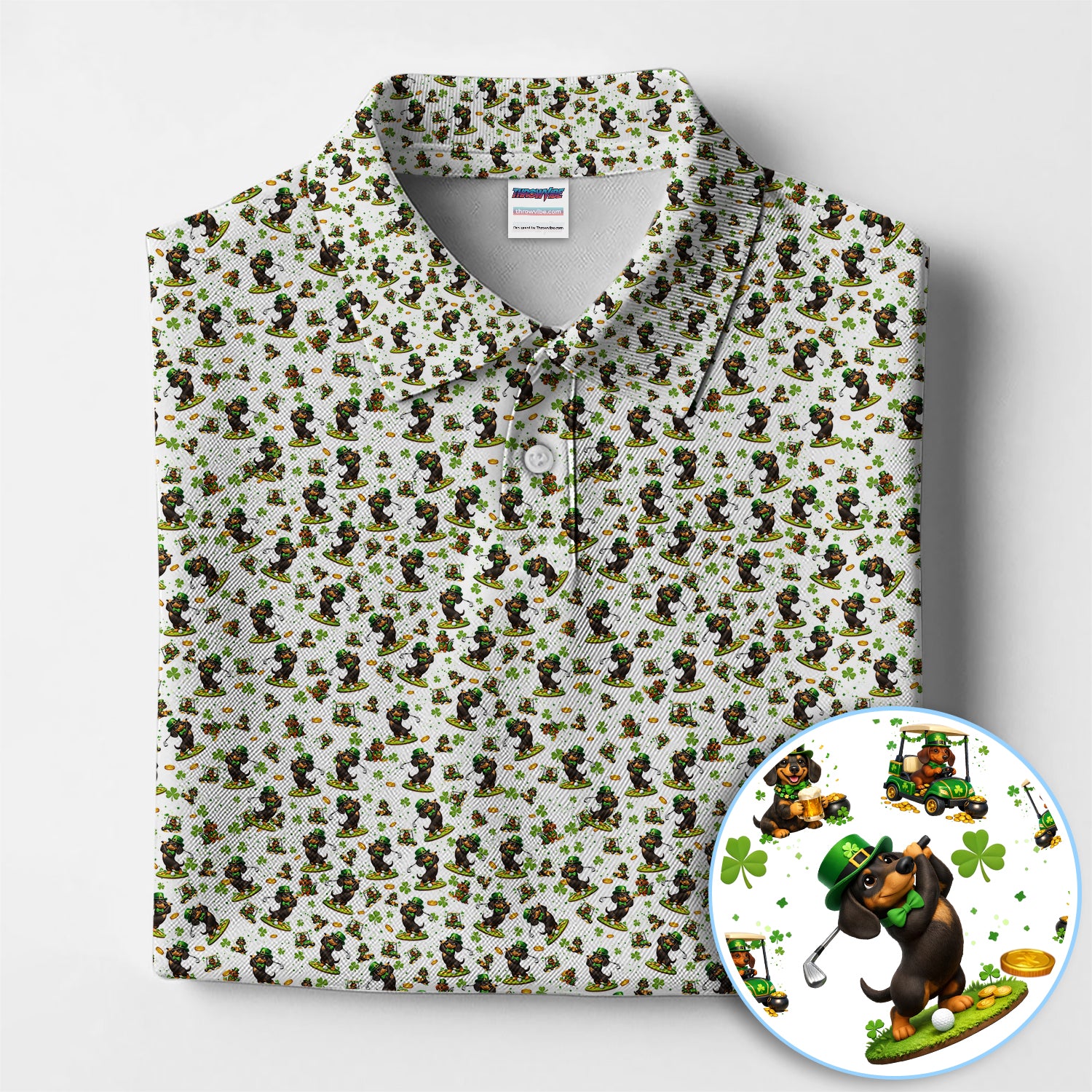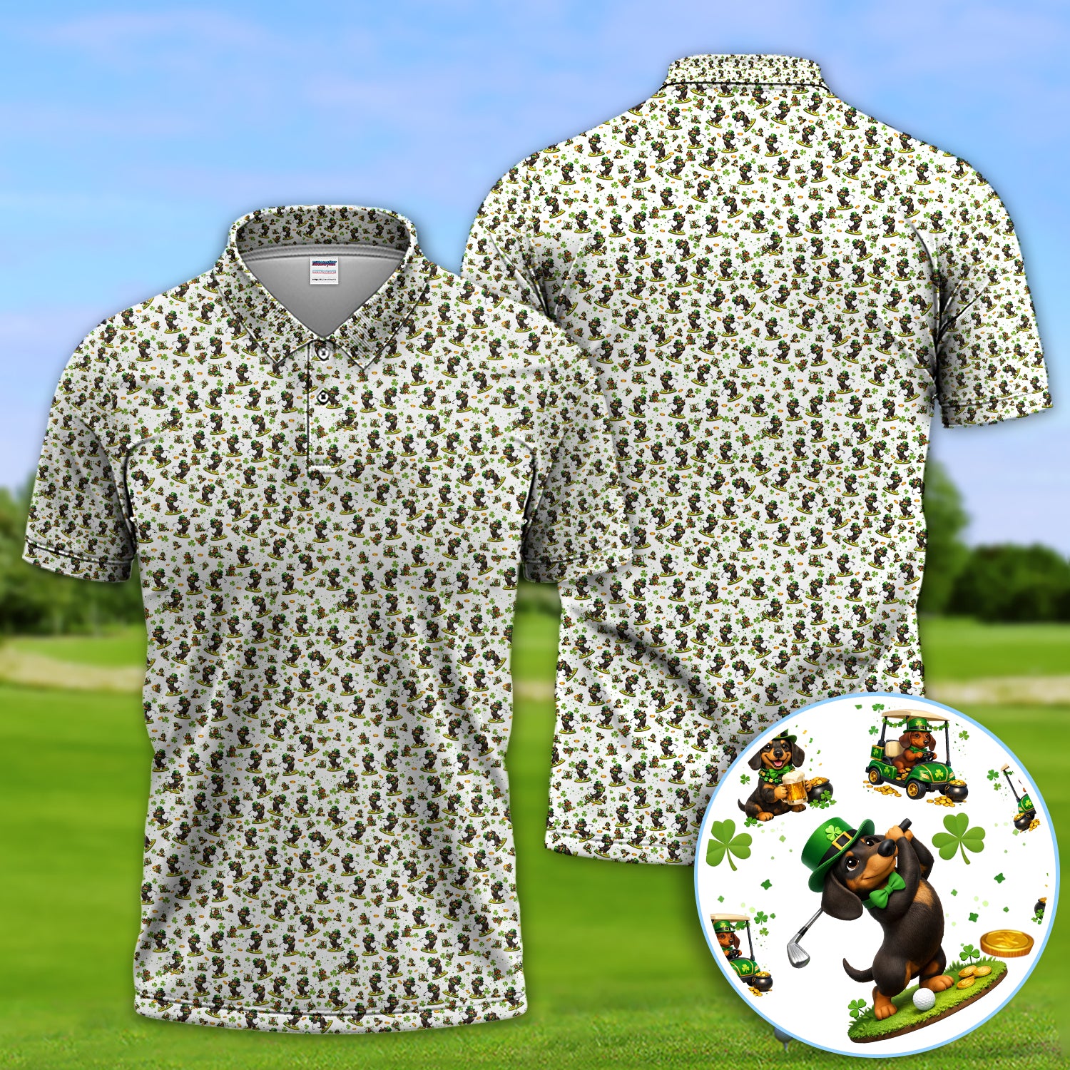 Dachshund Leprechaun Pattern Golf Shirt, Funny St.Patrick’s Day Golf Polos, Crazy Golf Gift For Golfer
