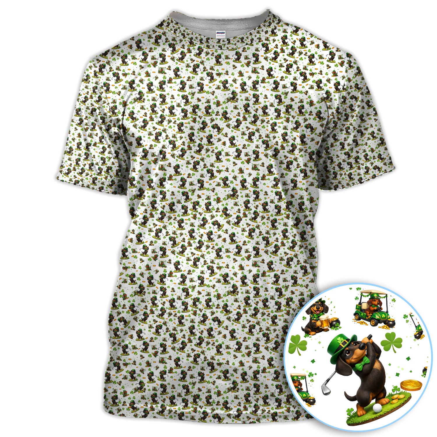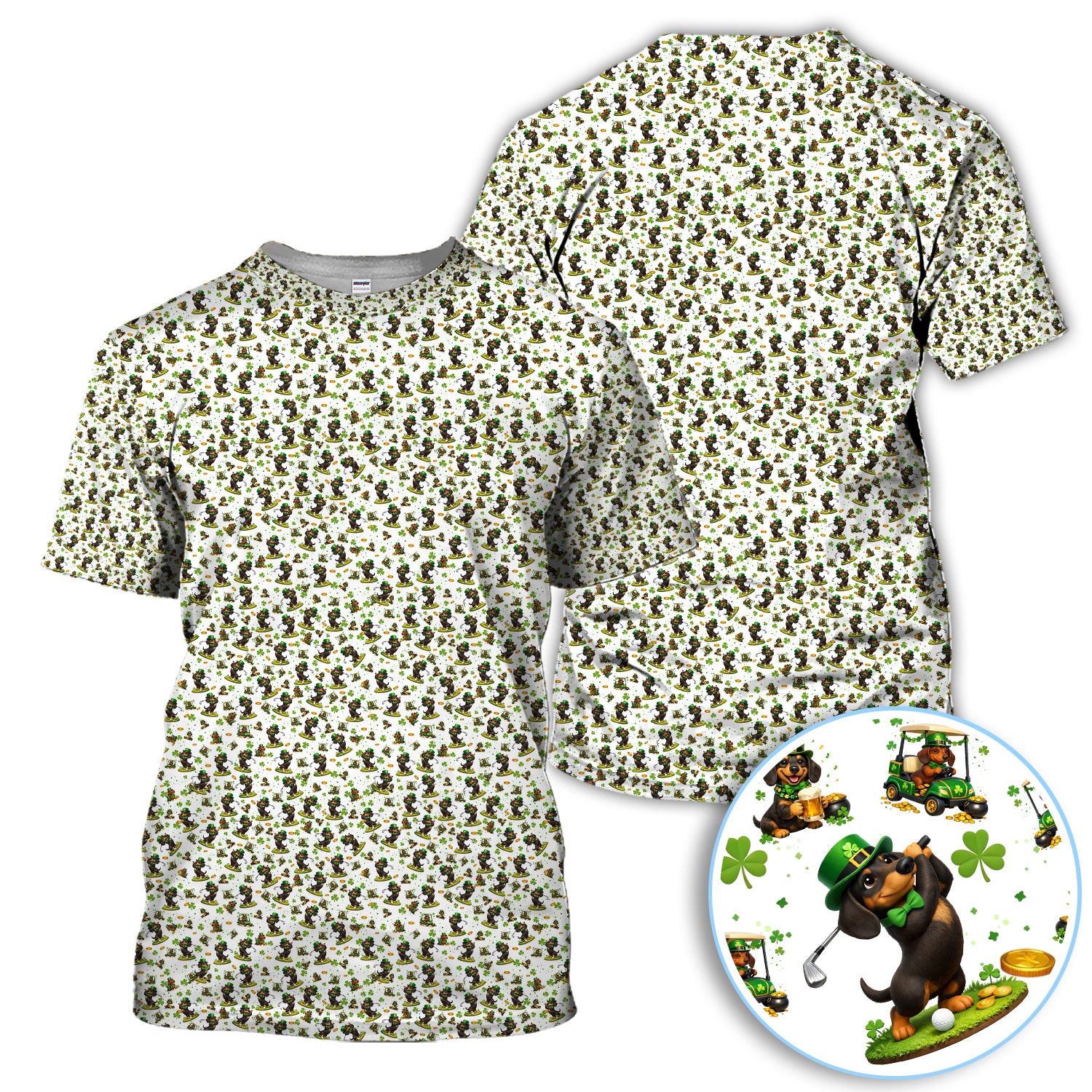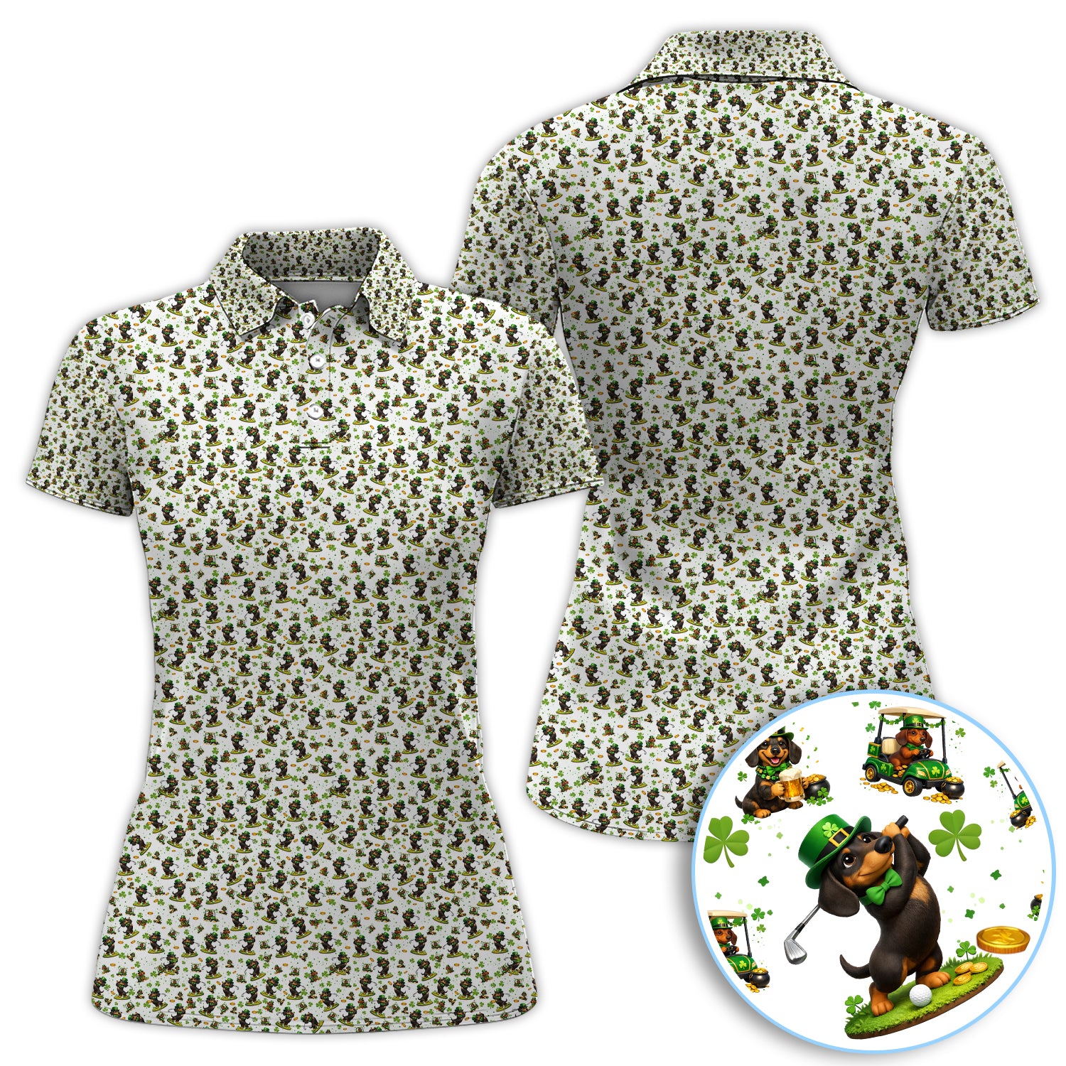 Dachshund Leprechaun Pattern Golf Shirt, Funny St.Patrick’s Day Golf Polos, Crazy Golf Gift For Golfer