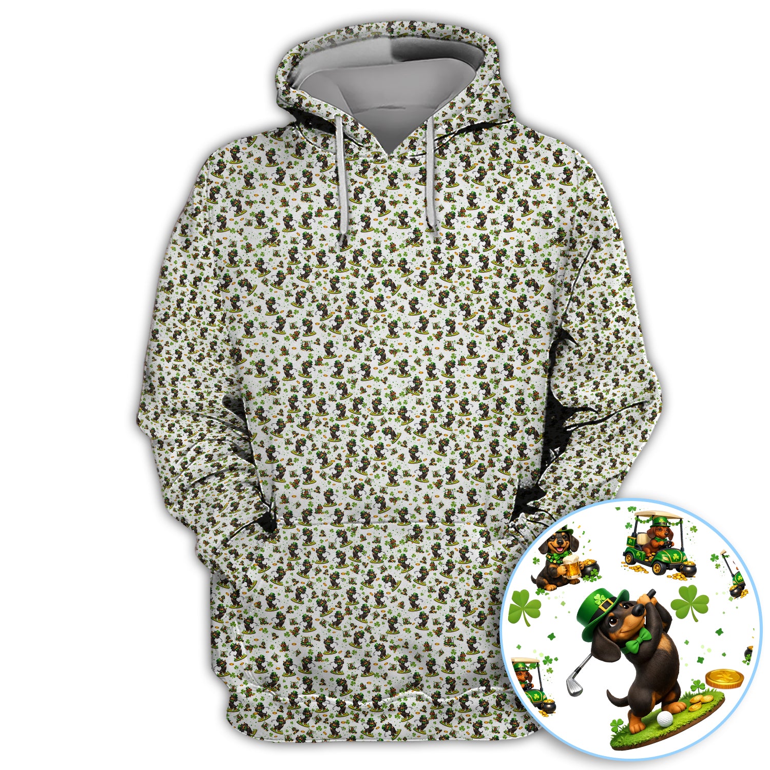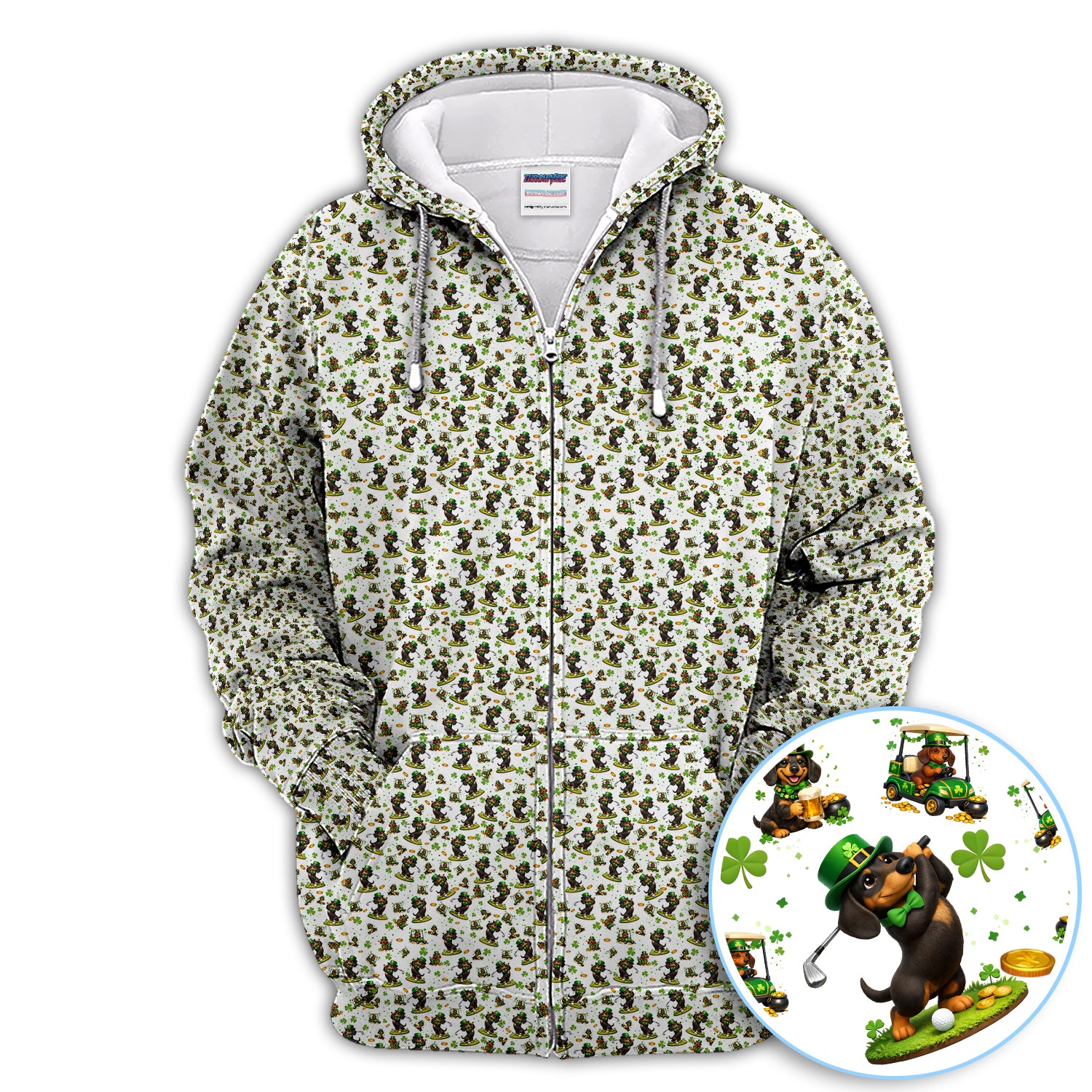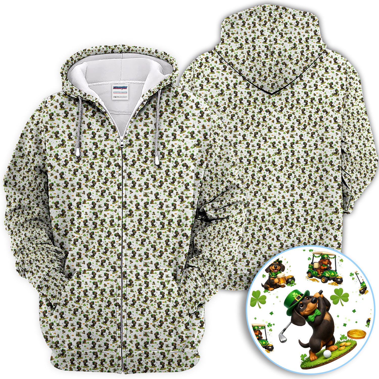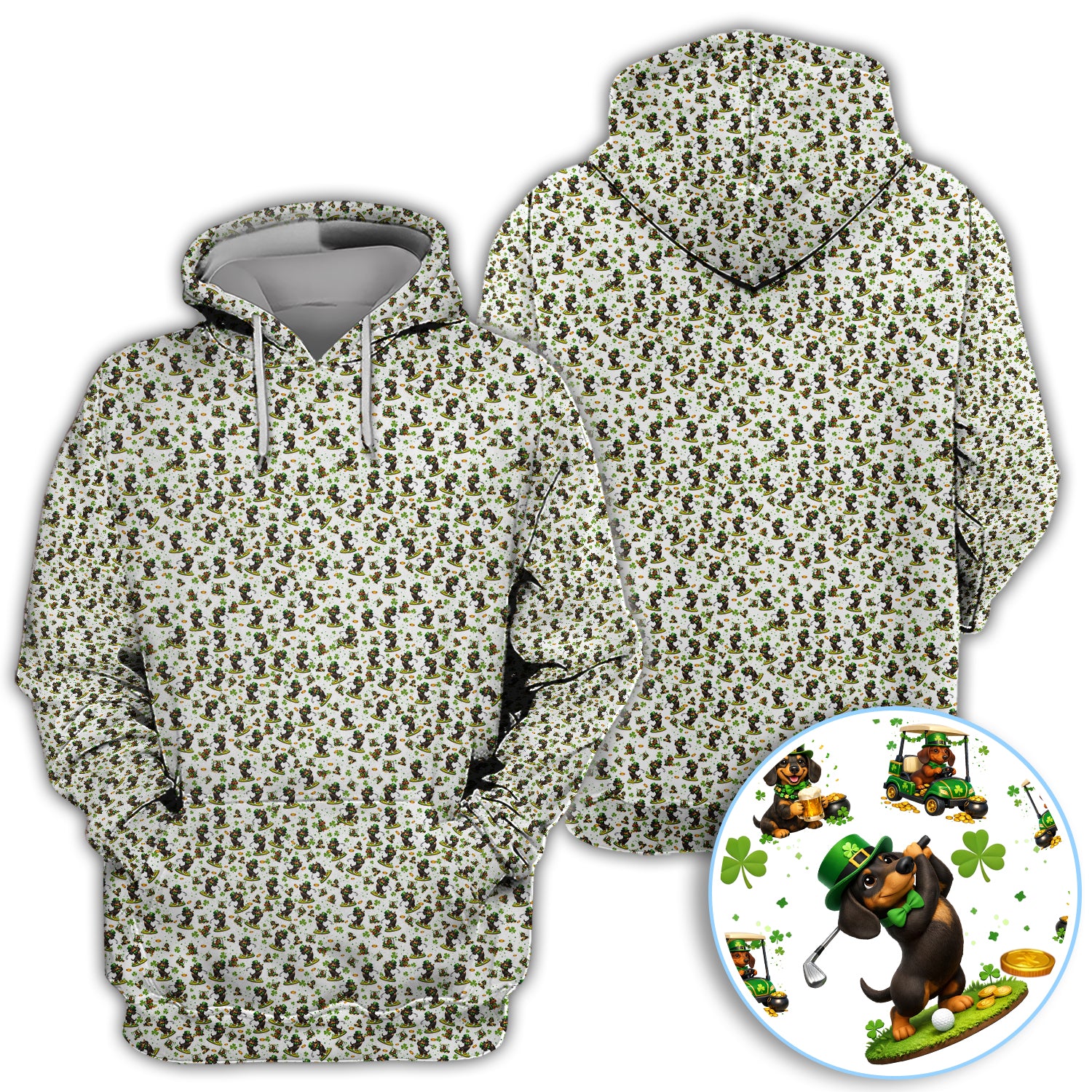 Dachshund Leprechaun Pattern Golf Shirt, Funny St.Patrick’s Day Golf Polos, Crazy Golf Gift For Golfer