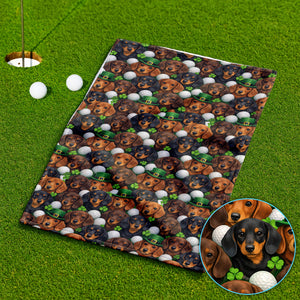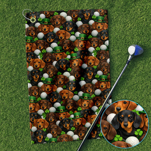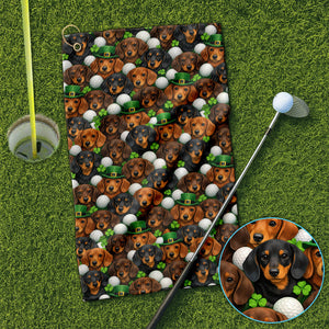 Dachshund St. Patrick’s Day Golf Towel, Wiener Dog Pattern Golf Towels For Men, Funny Golf Gift For Golfer