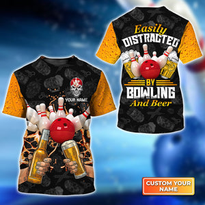 Easily Distracted By Bowling And Beer Personalized Name 3D Tshirt Gift For Bowler