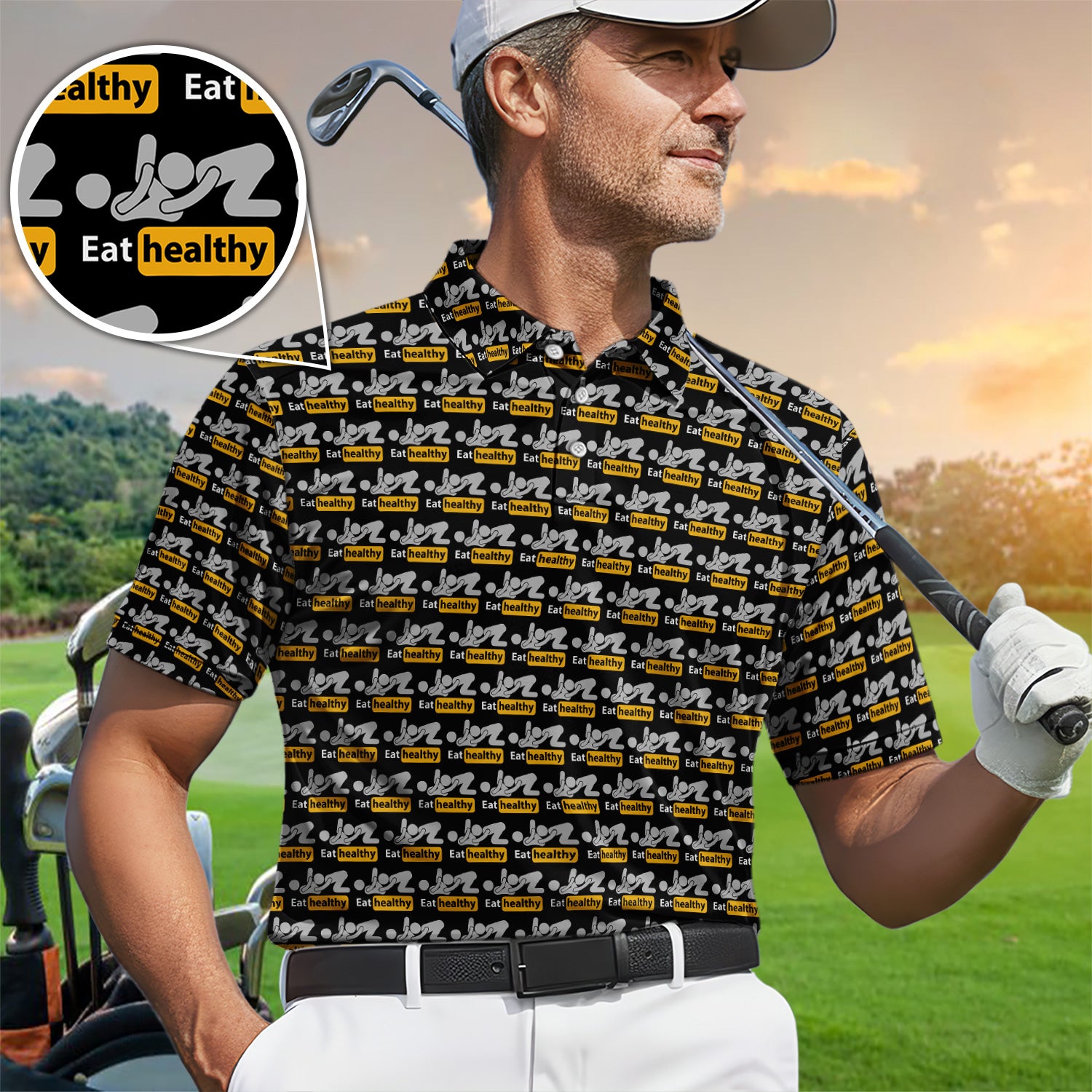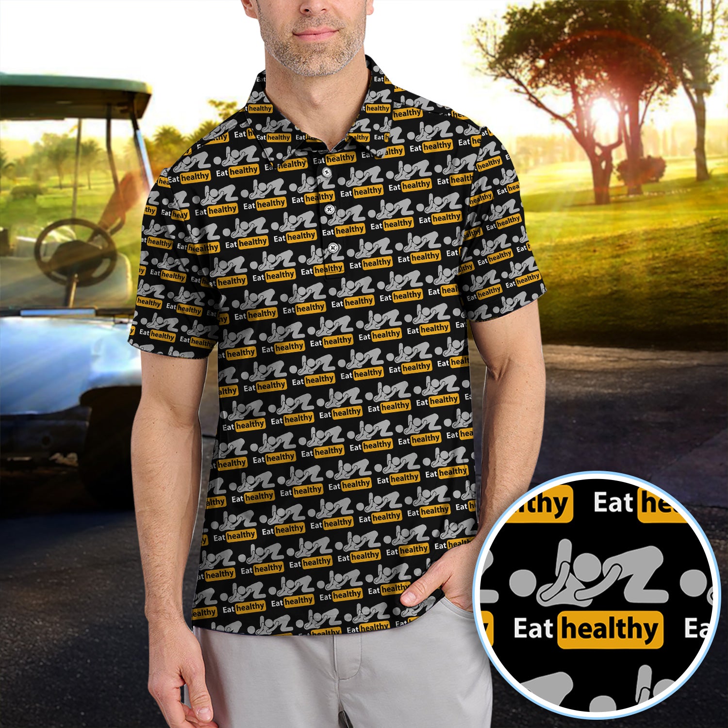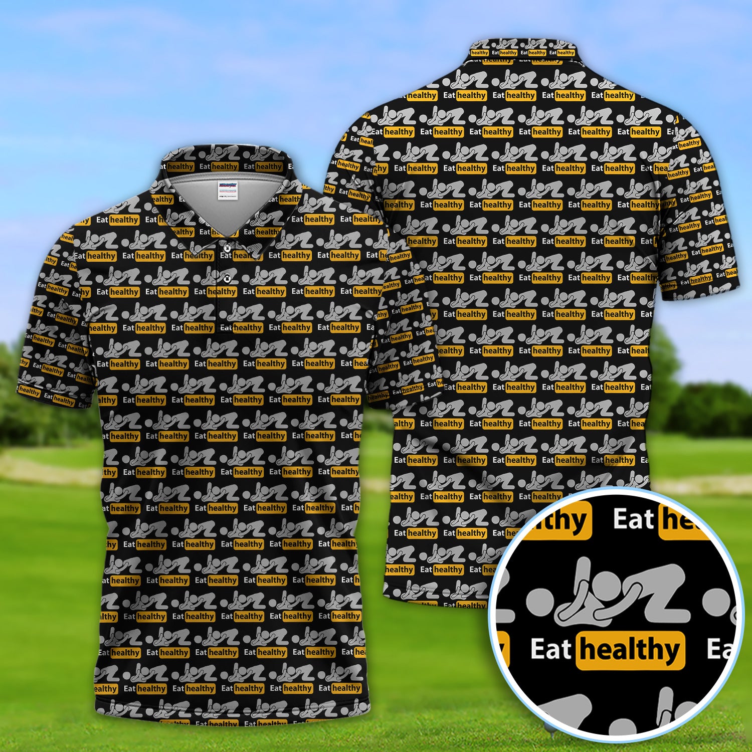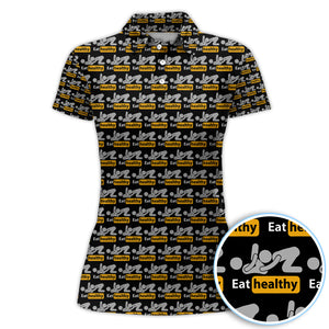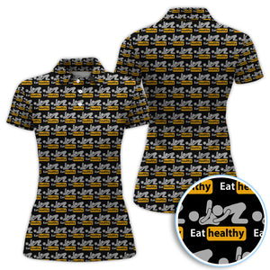 Eat Healthy Pattern Golf Polos, Crazy Modern Lifestyle Golf Shirt For Men, Golf Gift For Golfer