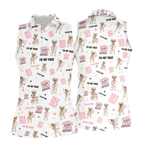 'Eat Sleep Tennis Repeat' Custom Women's Tennis Polo - Tennis Women Apparel - Cute Tennis Clothes