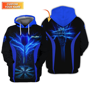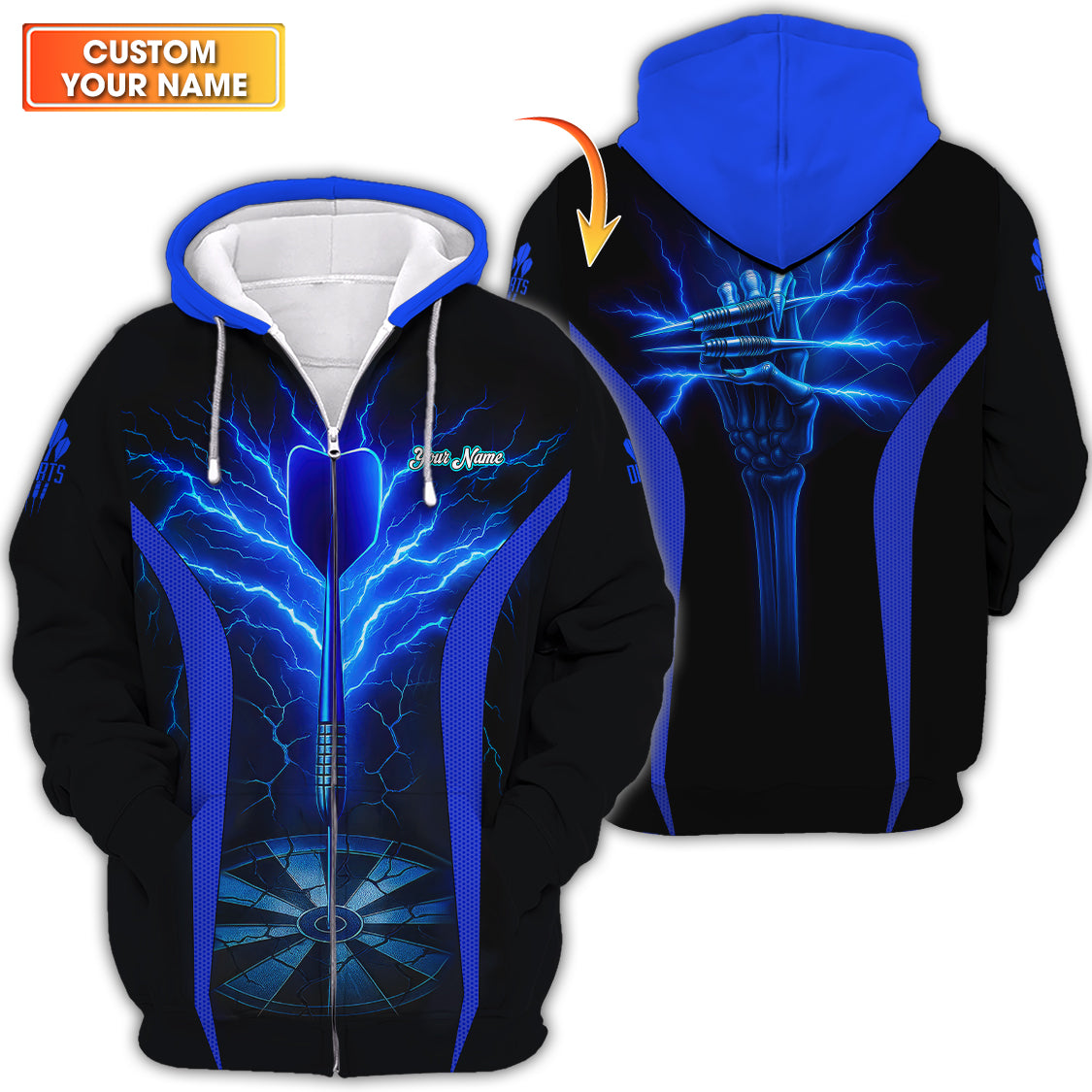 Electric Blue Skeleton Darts Jersey, Custom Name Darts Shirt, Dart Shirts For Men's