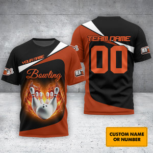 Turn heads on the lanes with this personalized bowling T-shirt featuring a dynamic flaming pins design! Perfect for tournaments, leagues, or casual games, this lightweight and breathable sportswear offers unmatched comfort and style. š³š„ Add your name or team logo for a professional and standout look. A greatĀ gift for bowlersĀ to elevate their game and style!
