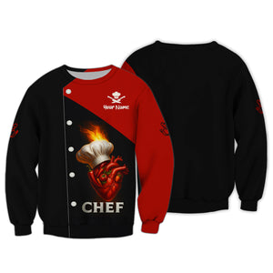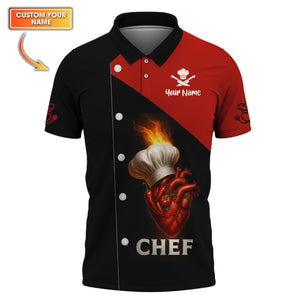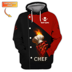 Flaming Heart Chef Shirt, Custom Name Chef Uniform, Personalized Cooking Shirt