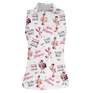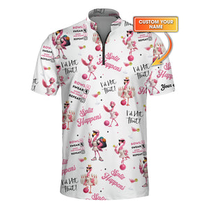 Custom Flamingo Bowling Polo Shirt – Pink Cocktail Design – Women's Funny Bowling Top