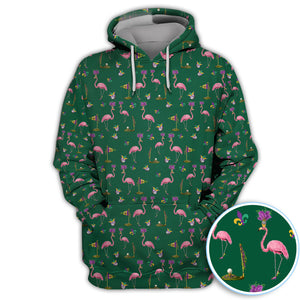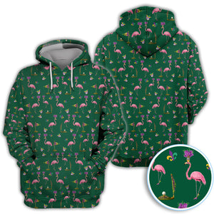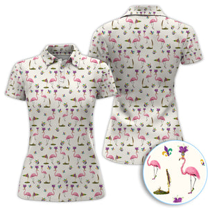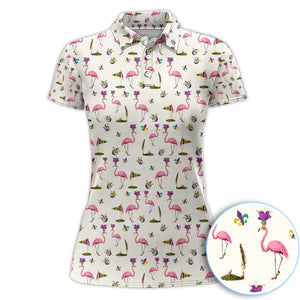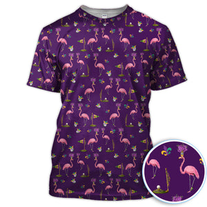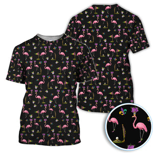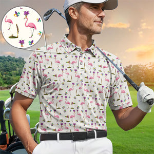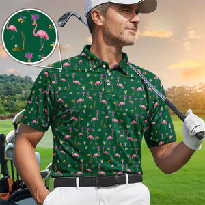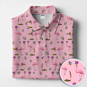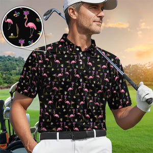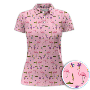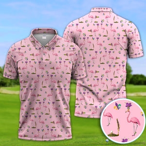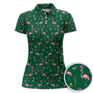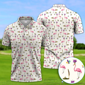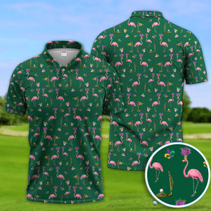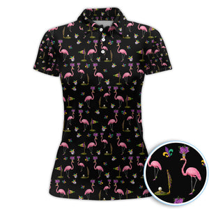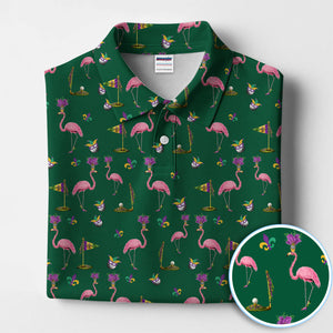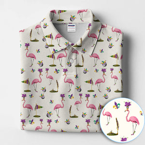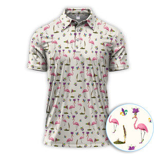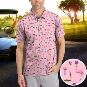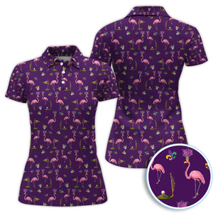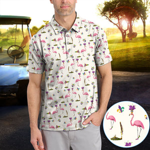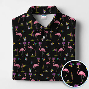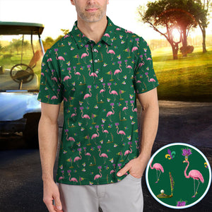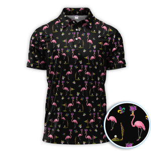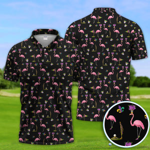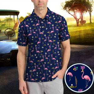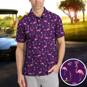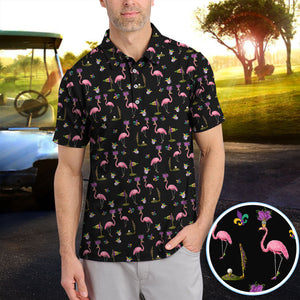 Flamingo Mardi Gras Golf Polos For Golfer, Funny Holiday Pattern Golf Shirt, Golf Gift For Men