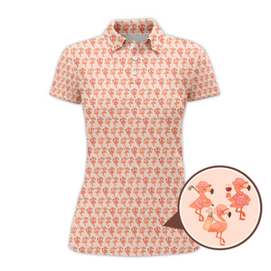 Flamingo Pattern Golf Shirt, Funny Ladies Golf Shirts, Flamingo Golf Polos for Women