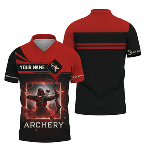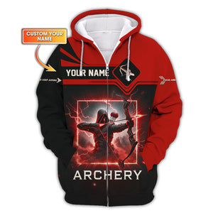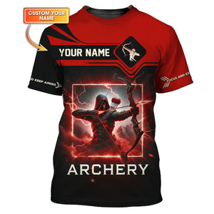 Focus and Keep Aiming Archer Lightning Red & Black T-Shirt, Archery Jersey, Gift for Archers