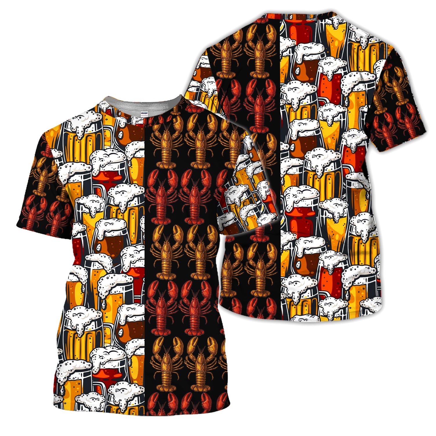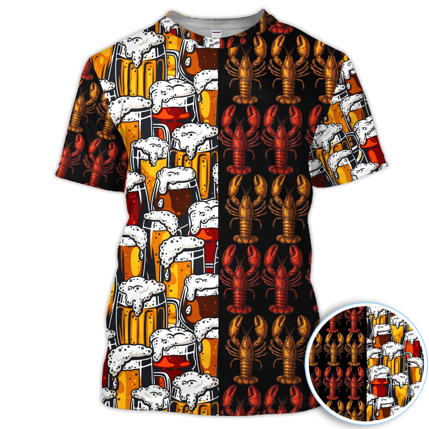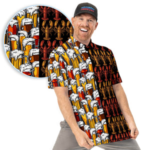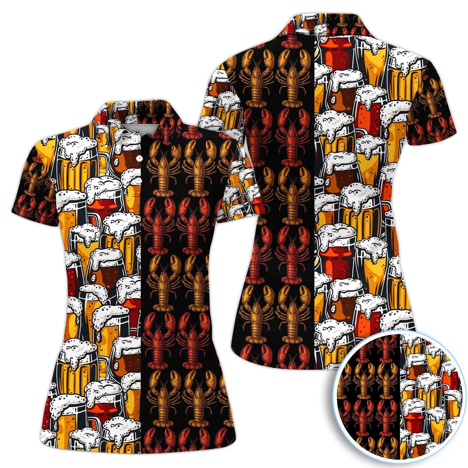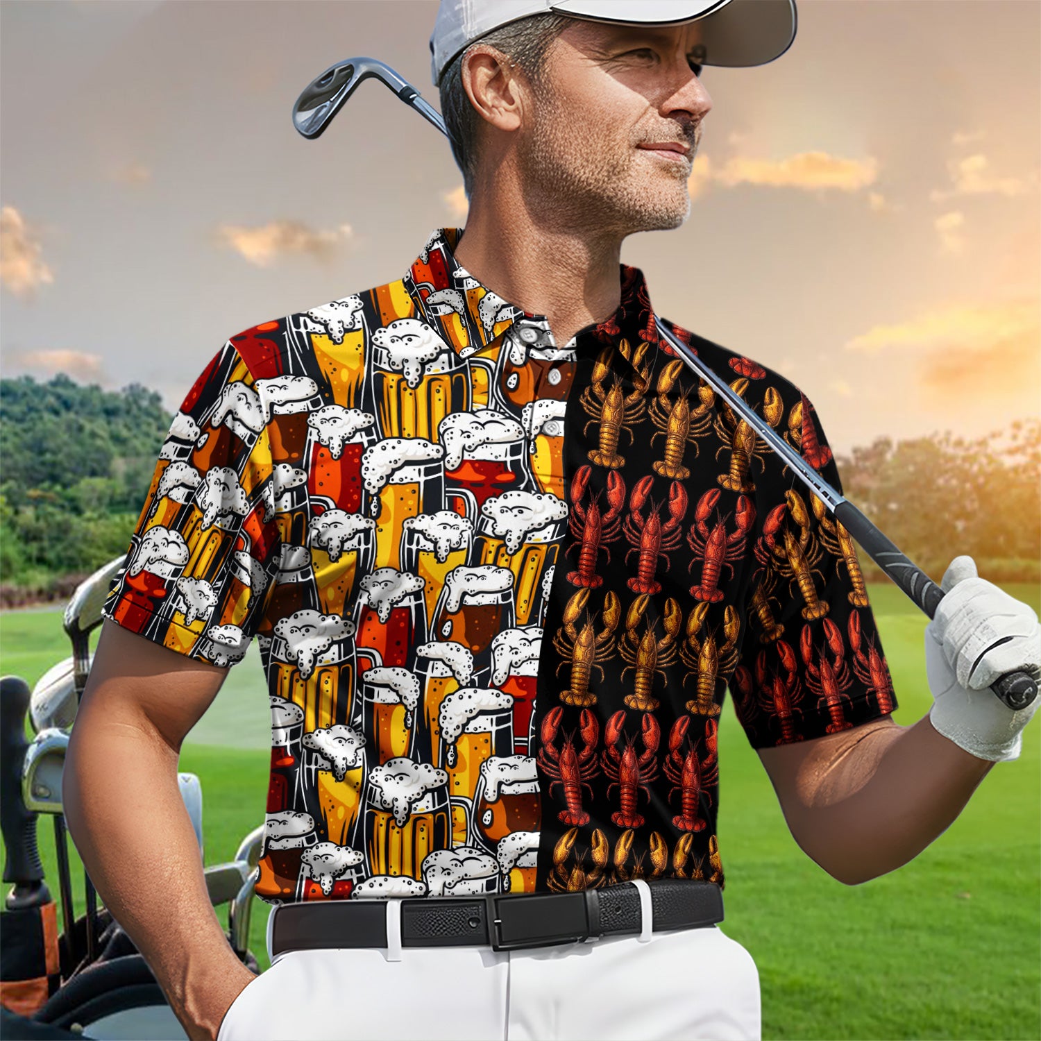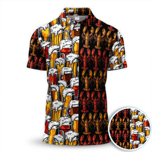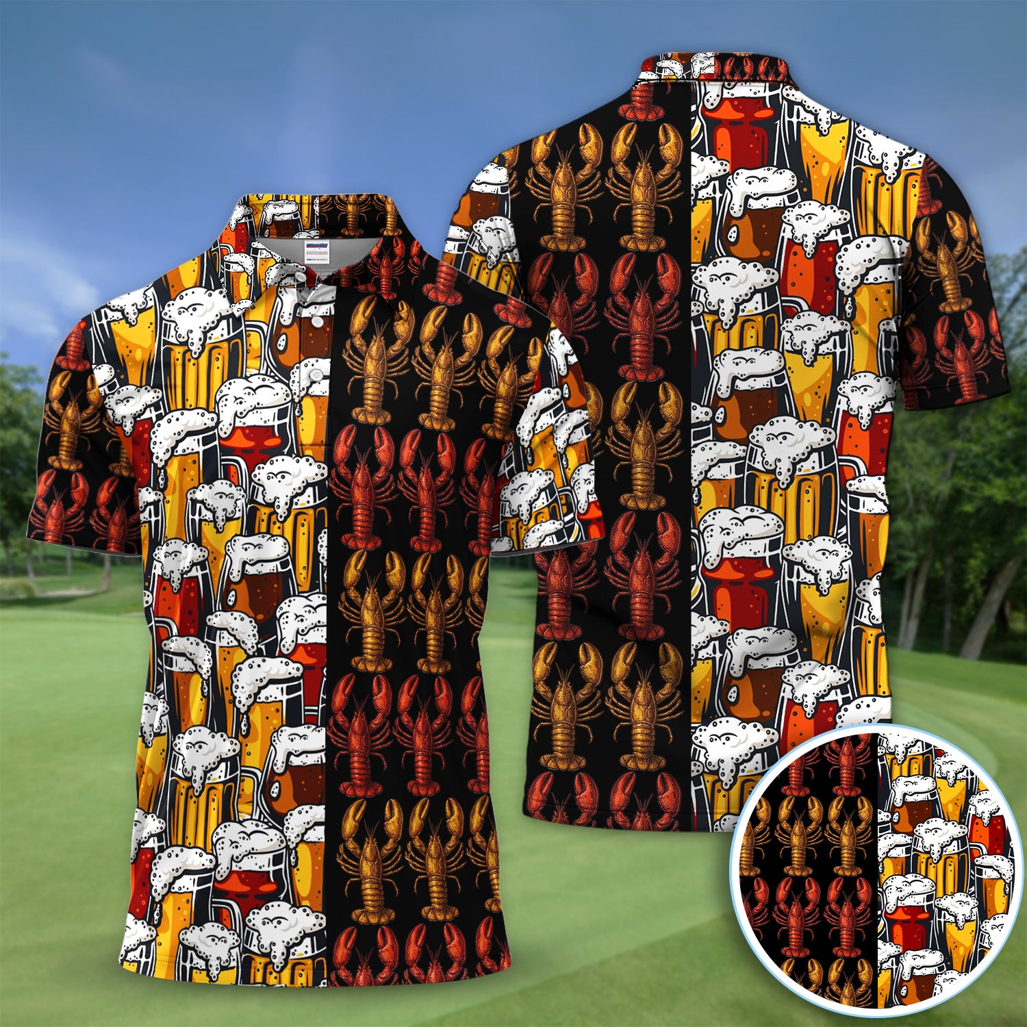 Funny Beer Lobster Pattern Golf Shirt, Crawfish Beer Lover Golf Shirt For Men, Golf Drinking Gift