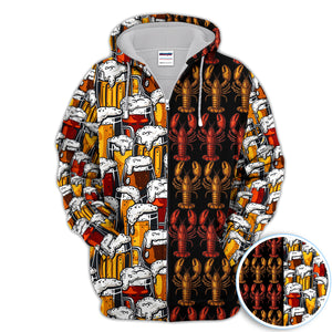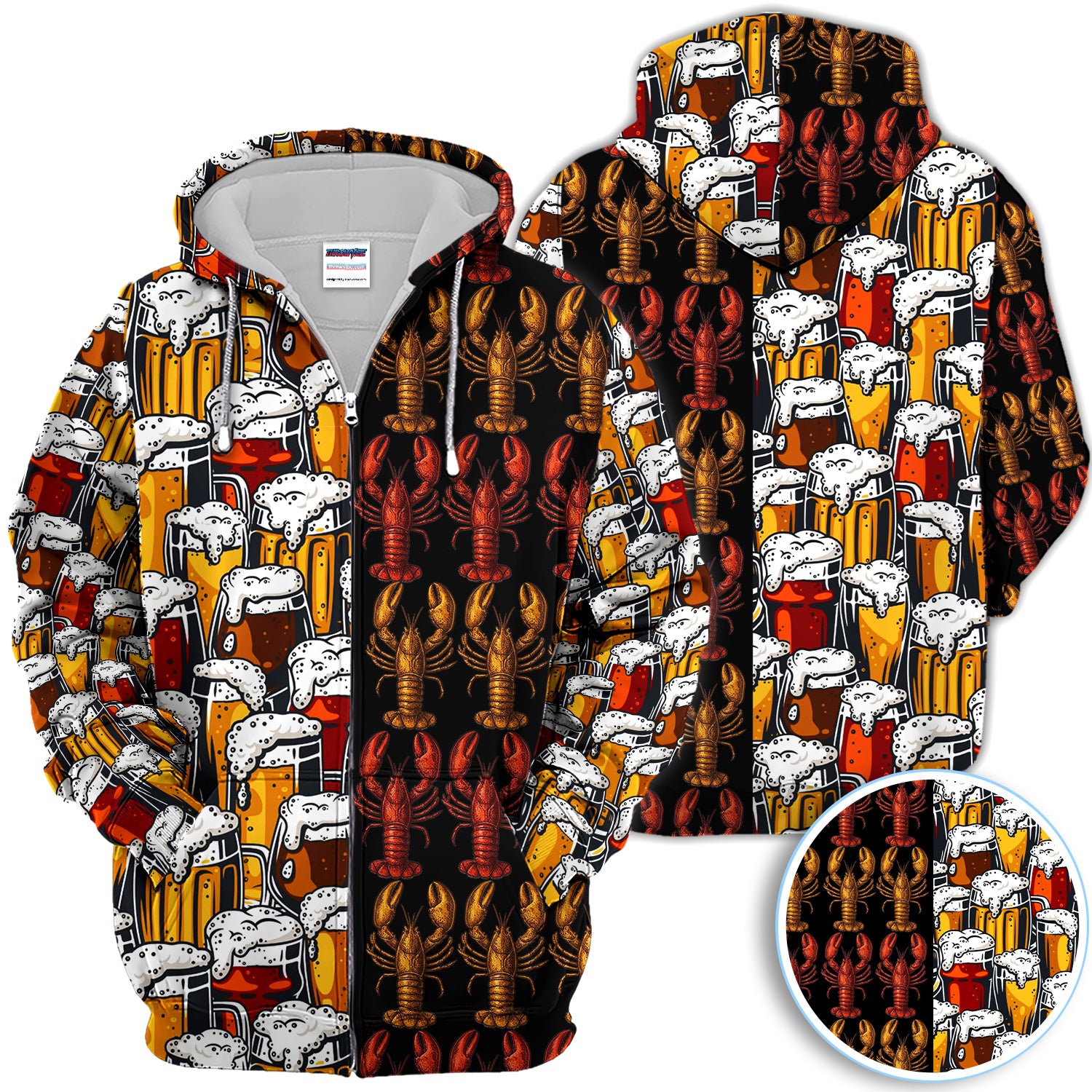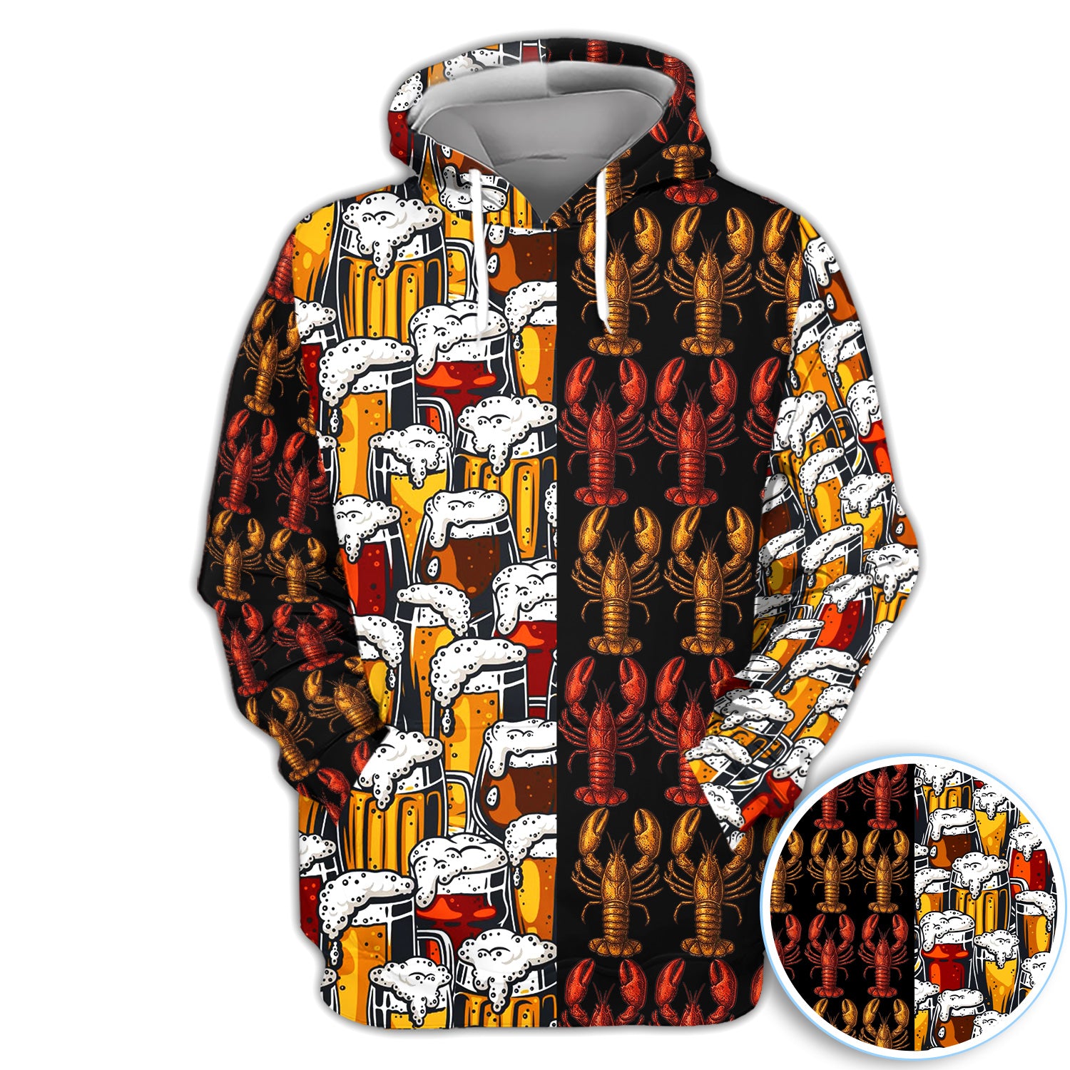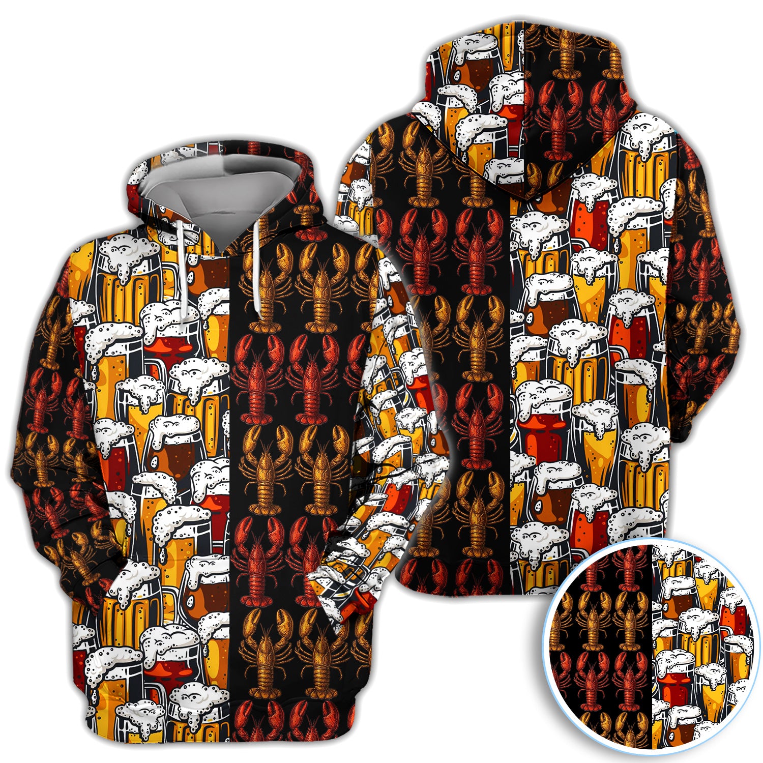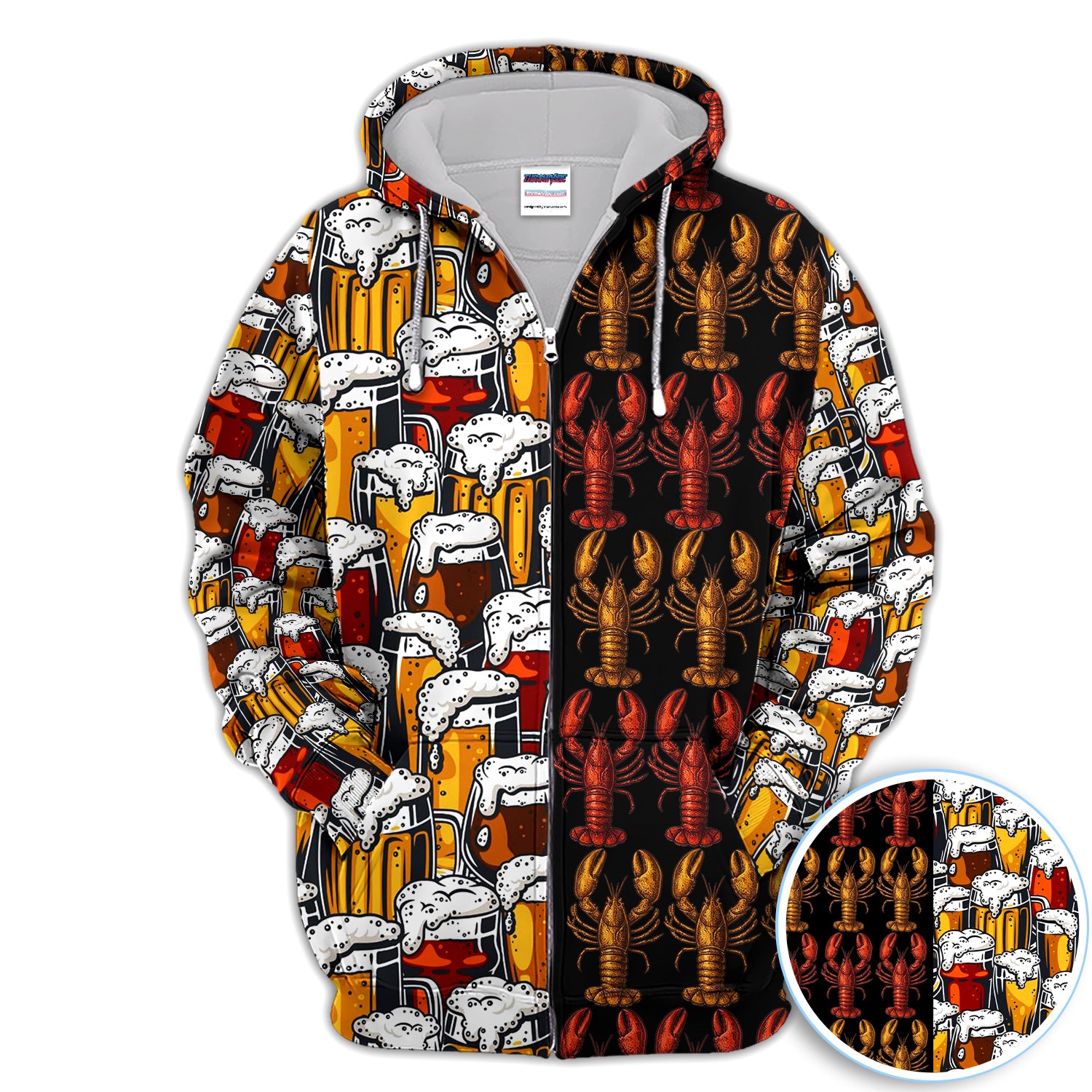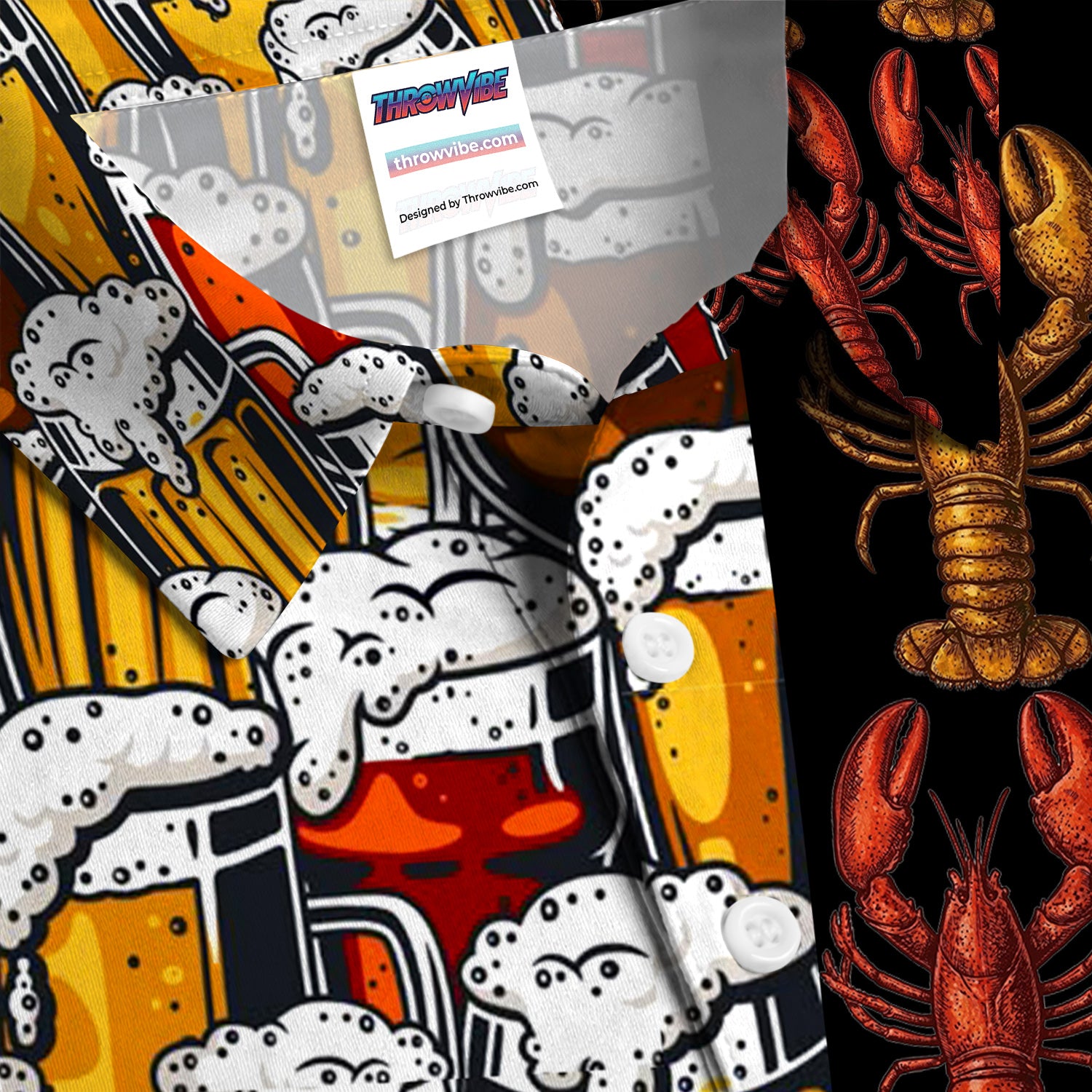 Funny Beer Lobster Pattern Golf Shirt, Crawfish Beer Lover Golf Shirt For Men, Golf Drinking Gift