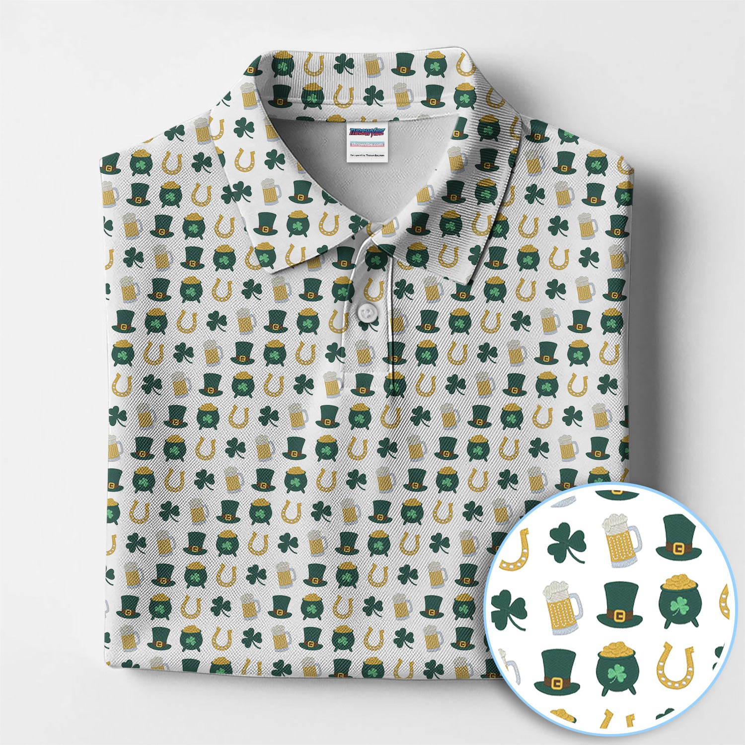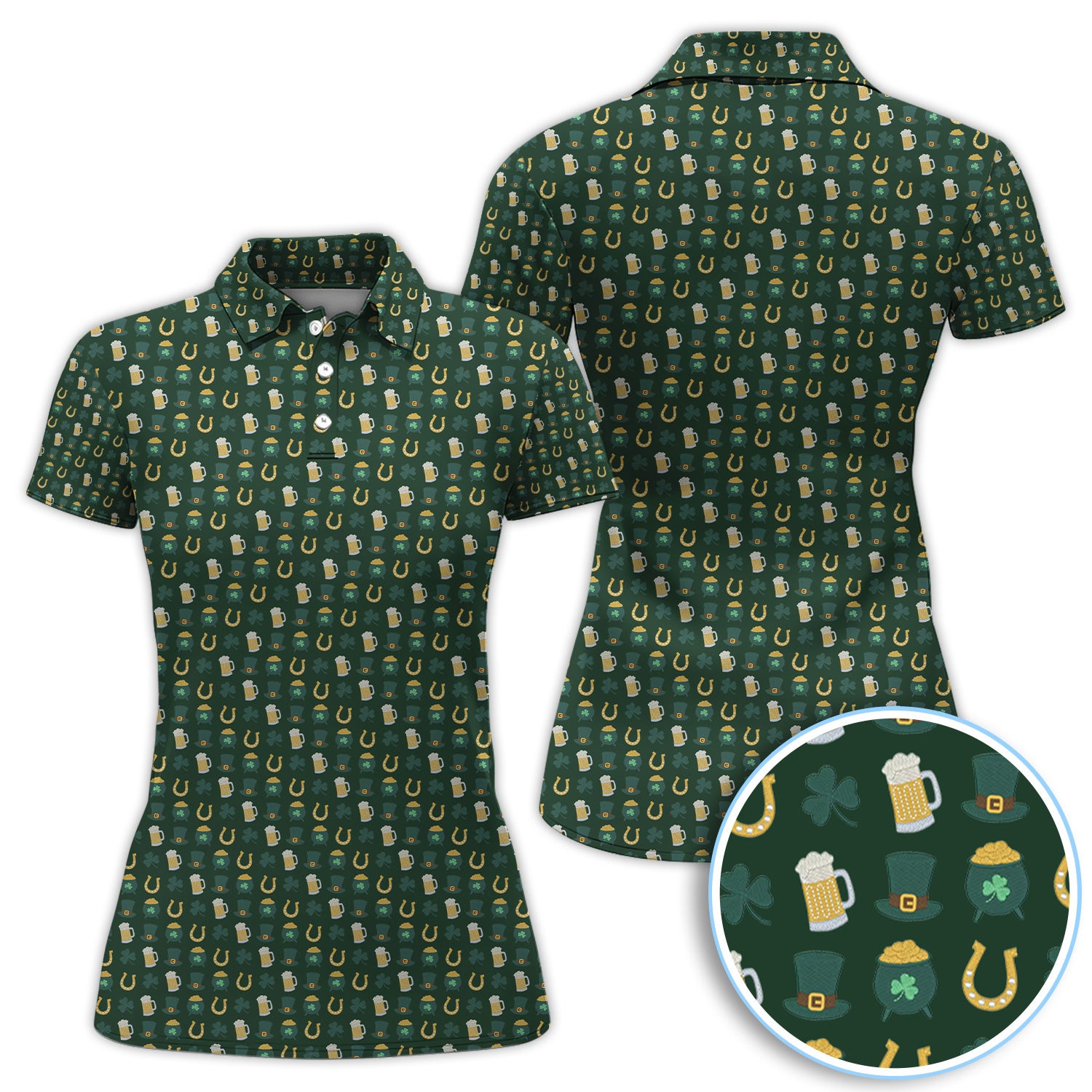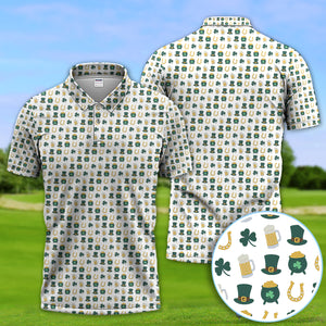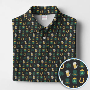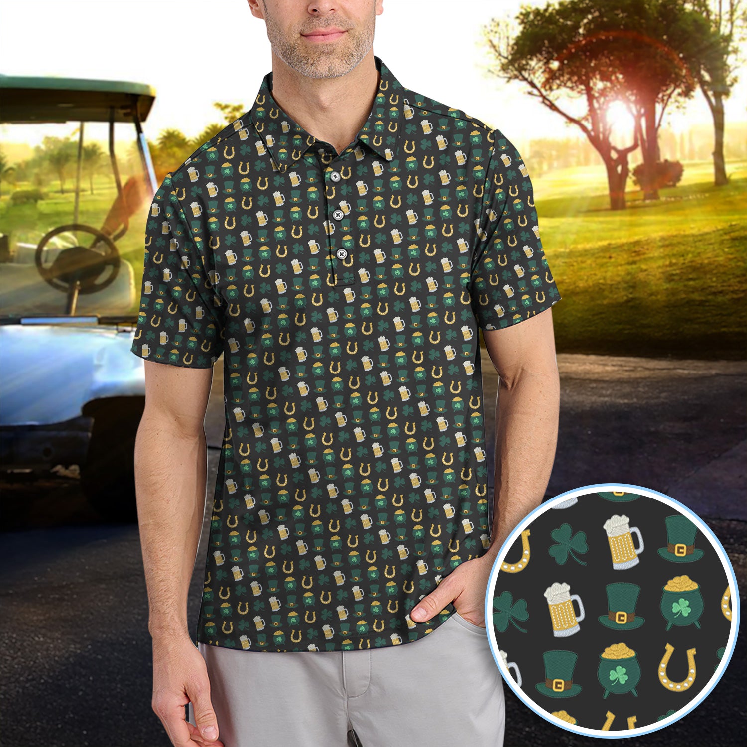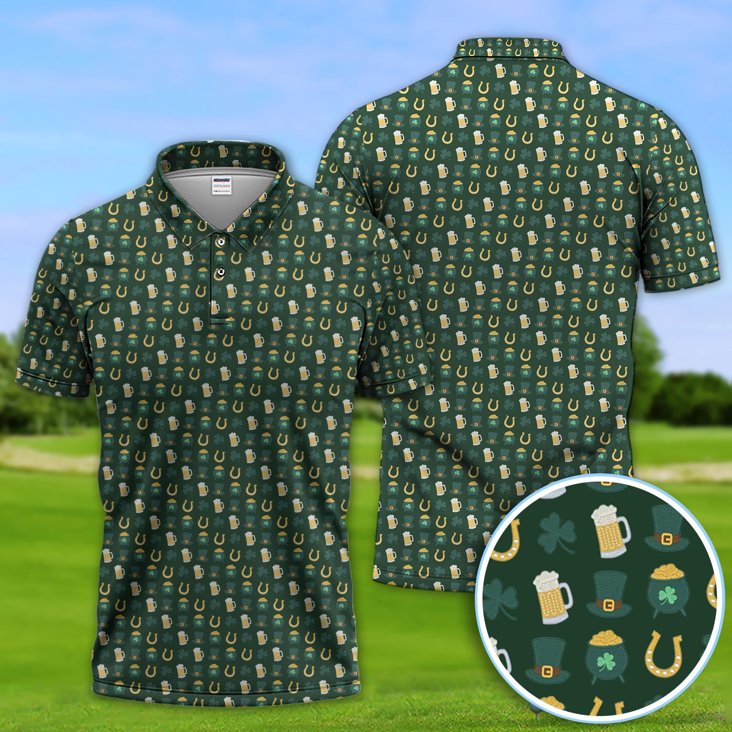 Funny Beer Pattern Golf Polos, St. Patrick’s Day Golf Shirt, Golf Gift For Golfer