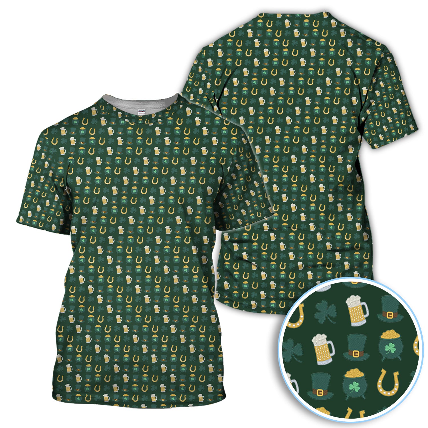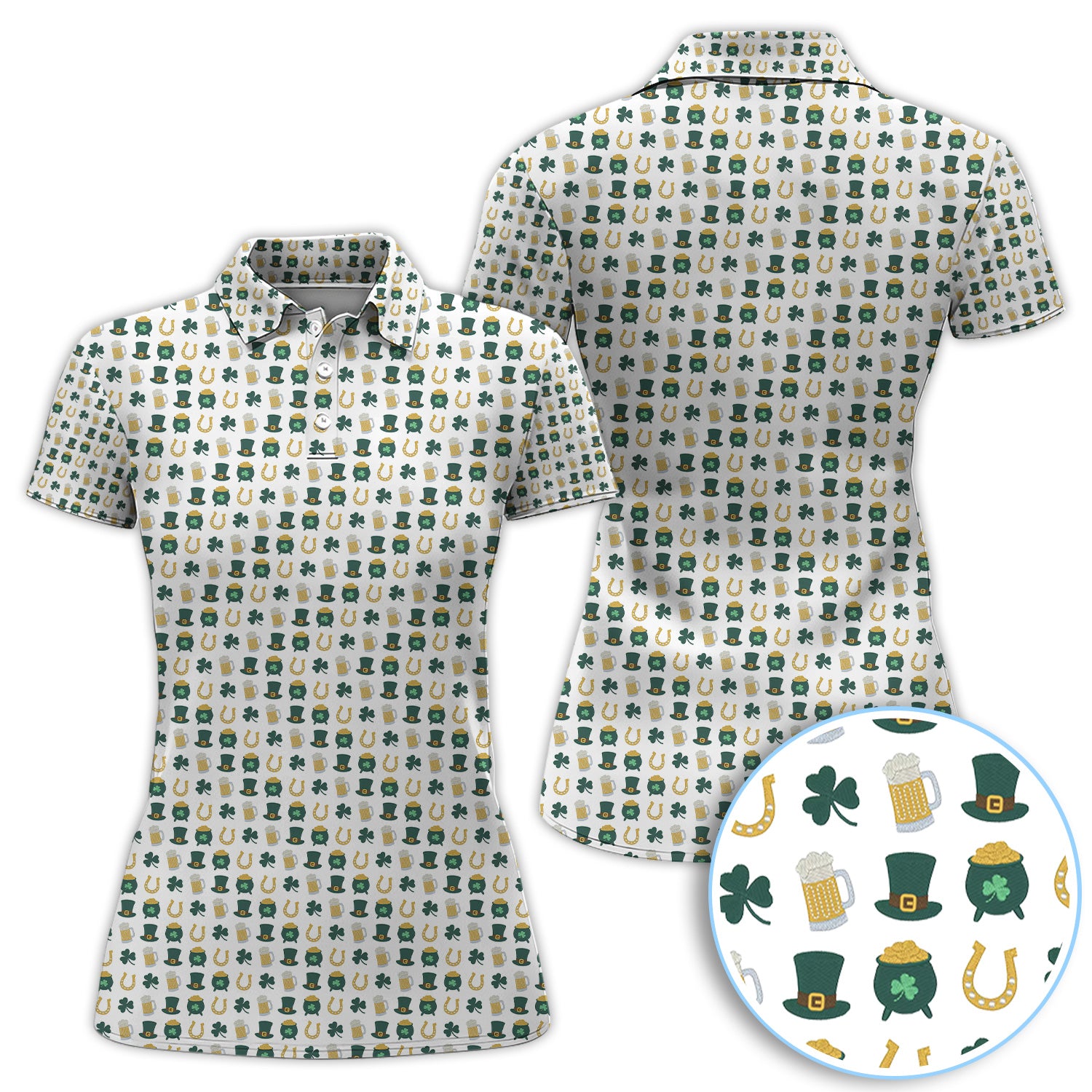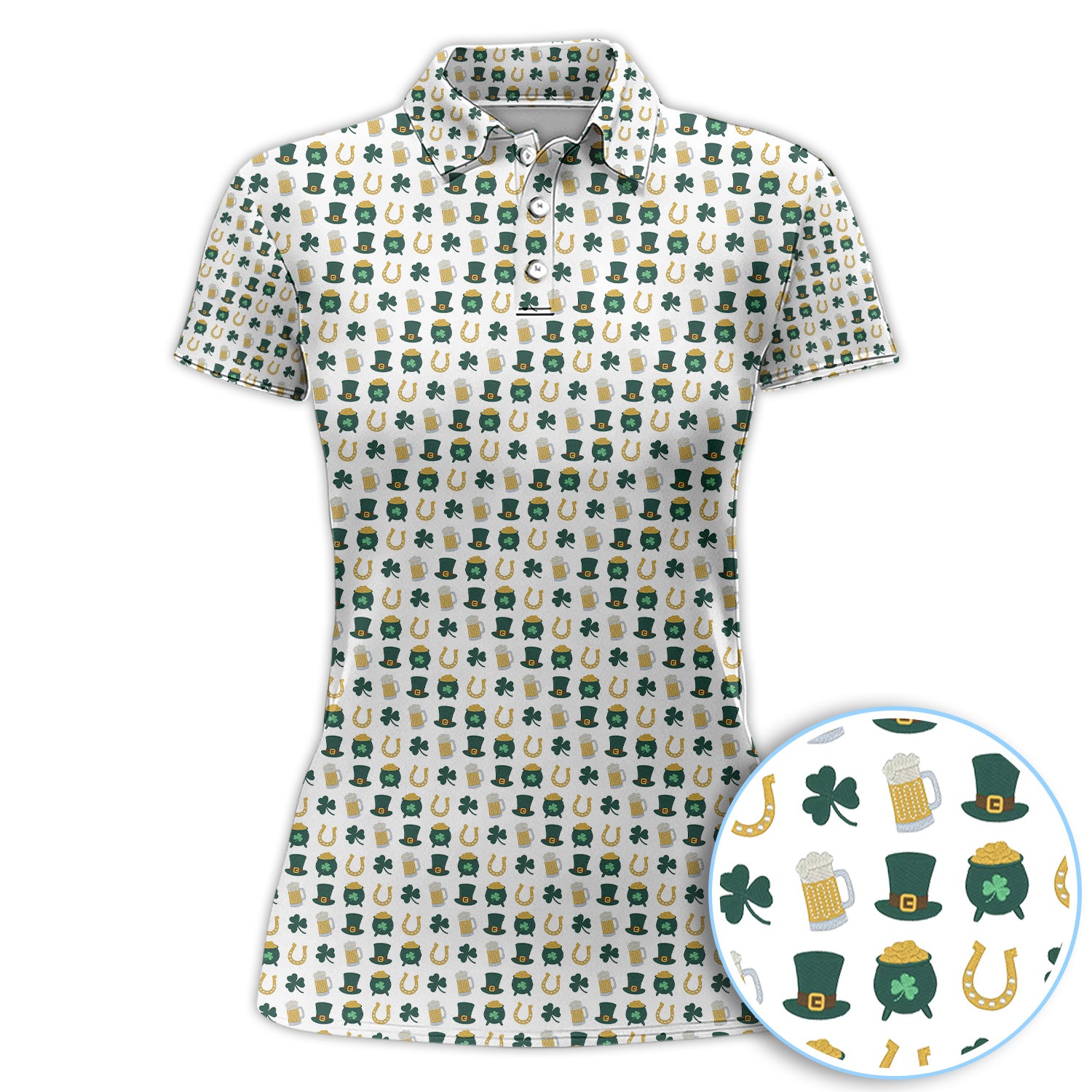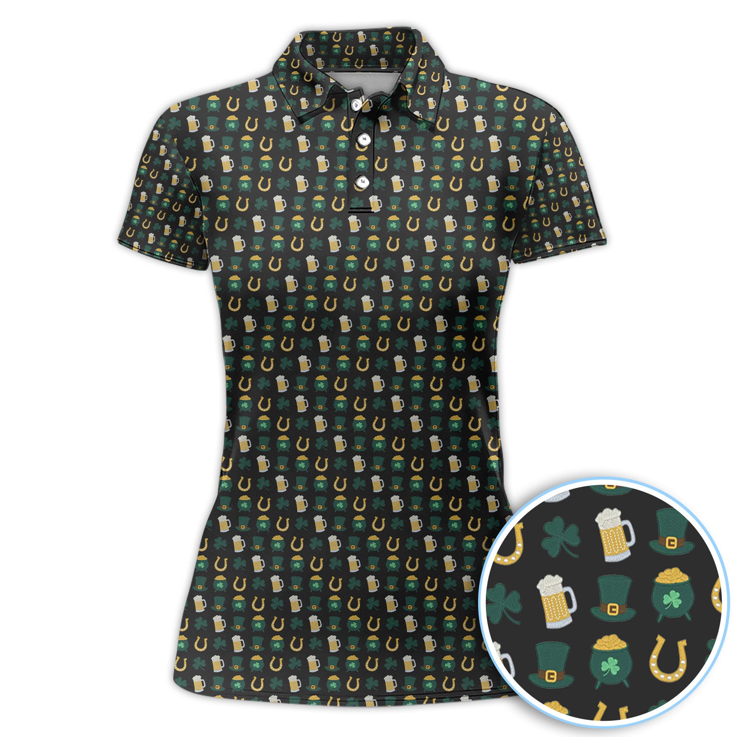 Funny Beer Pattern Golf Polos, St. Patrick’s Day Golf Shirt, Golf Gift For Golfer