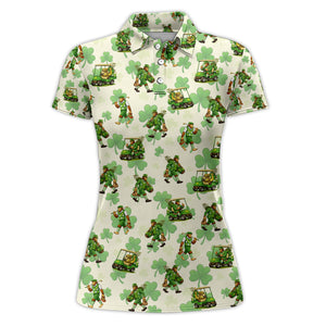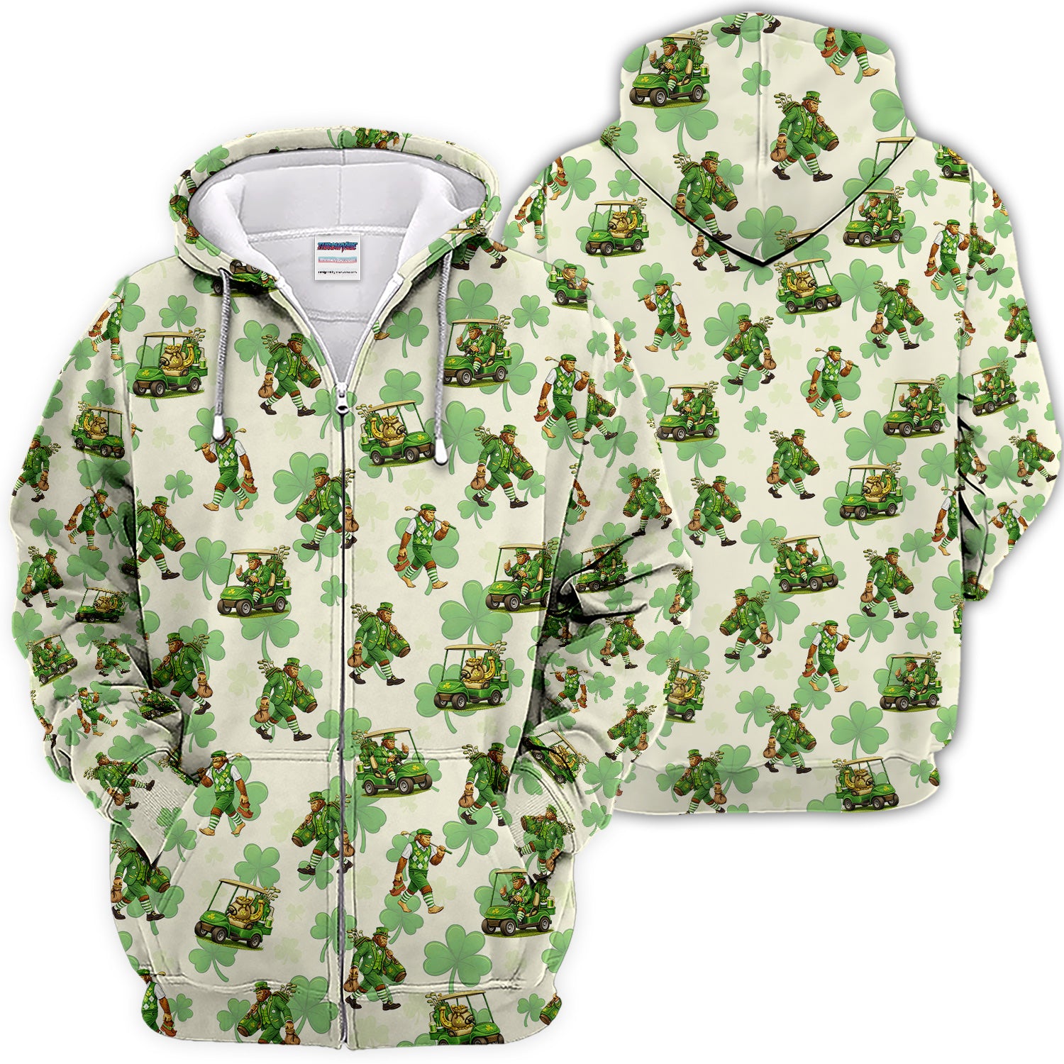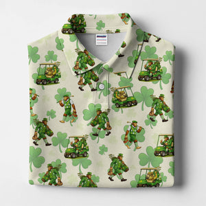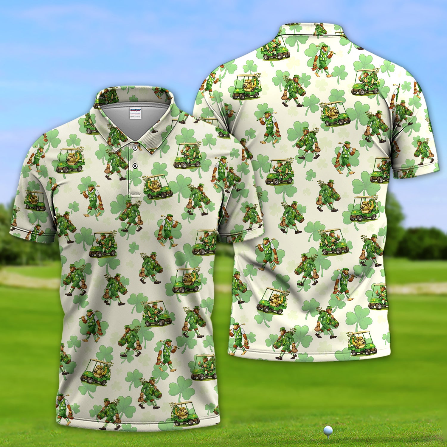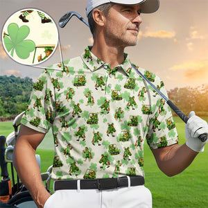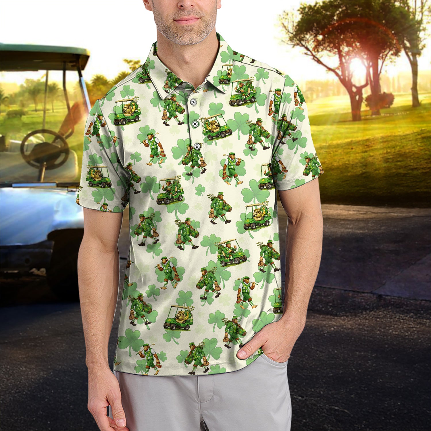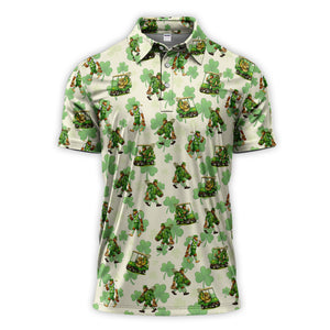 Funny Bigfoot Golf Polos For Men, St. Patrick’s Day Pattern Golf Shirt, Golf Gift For Golfer