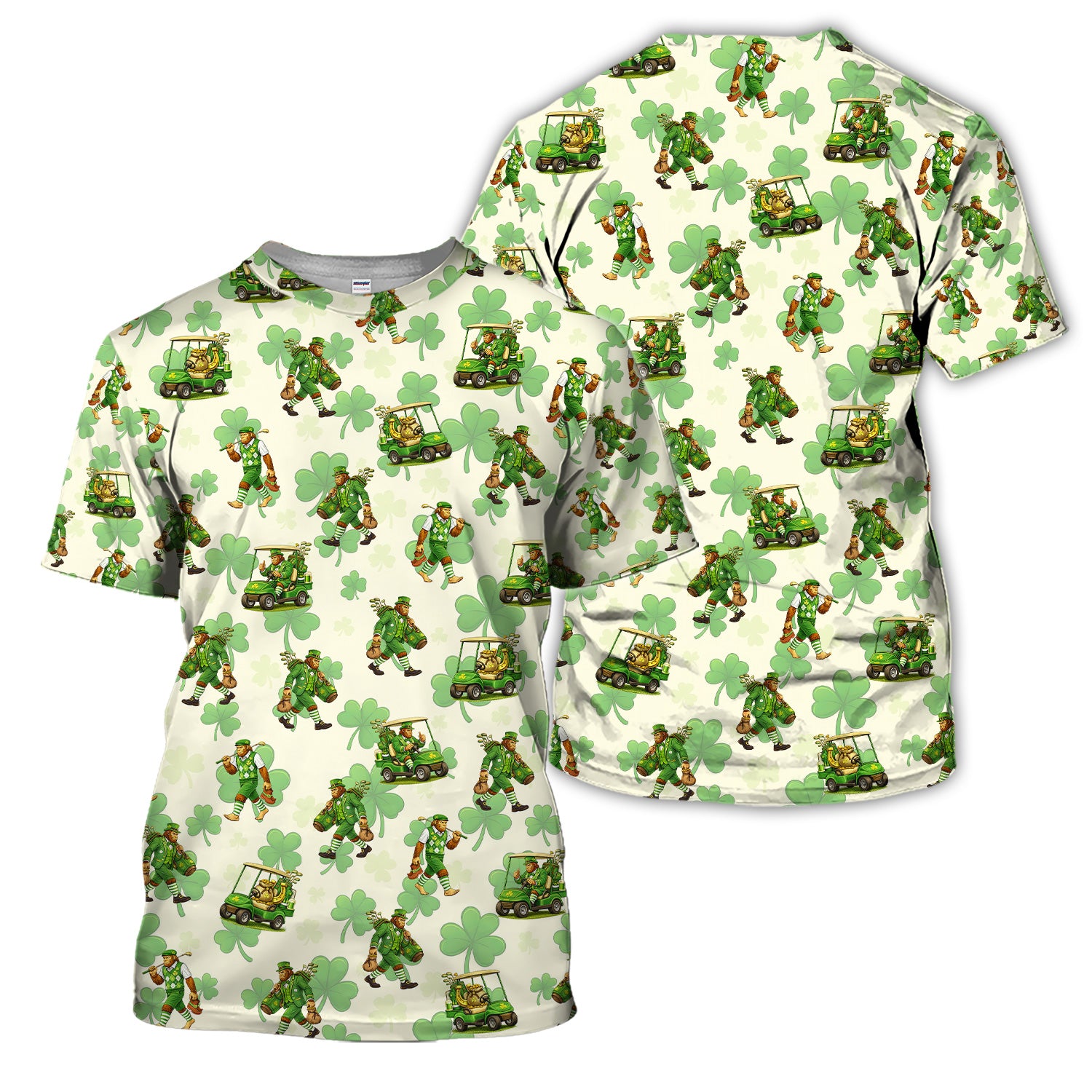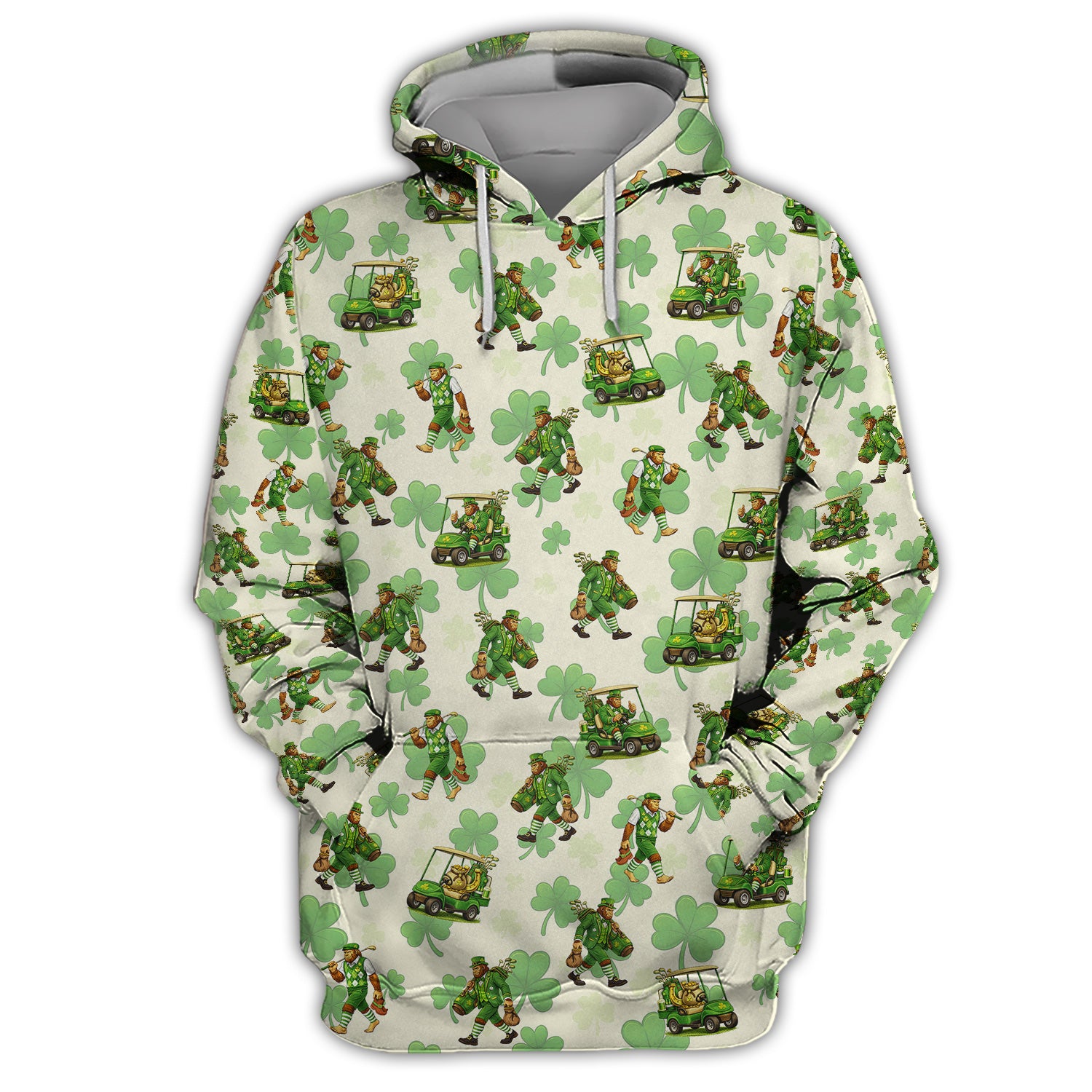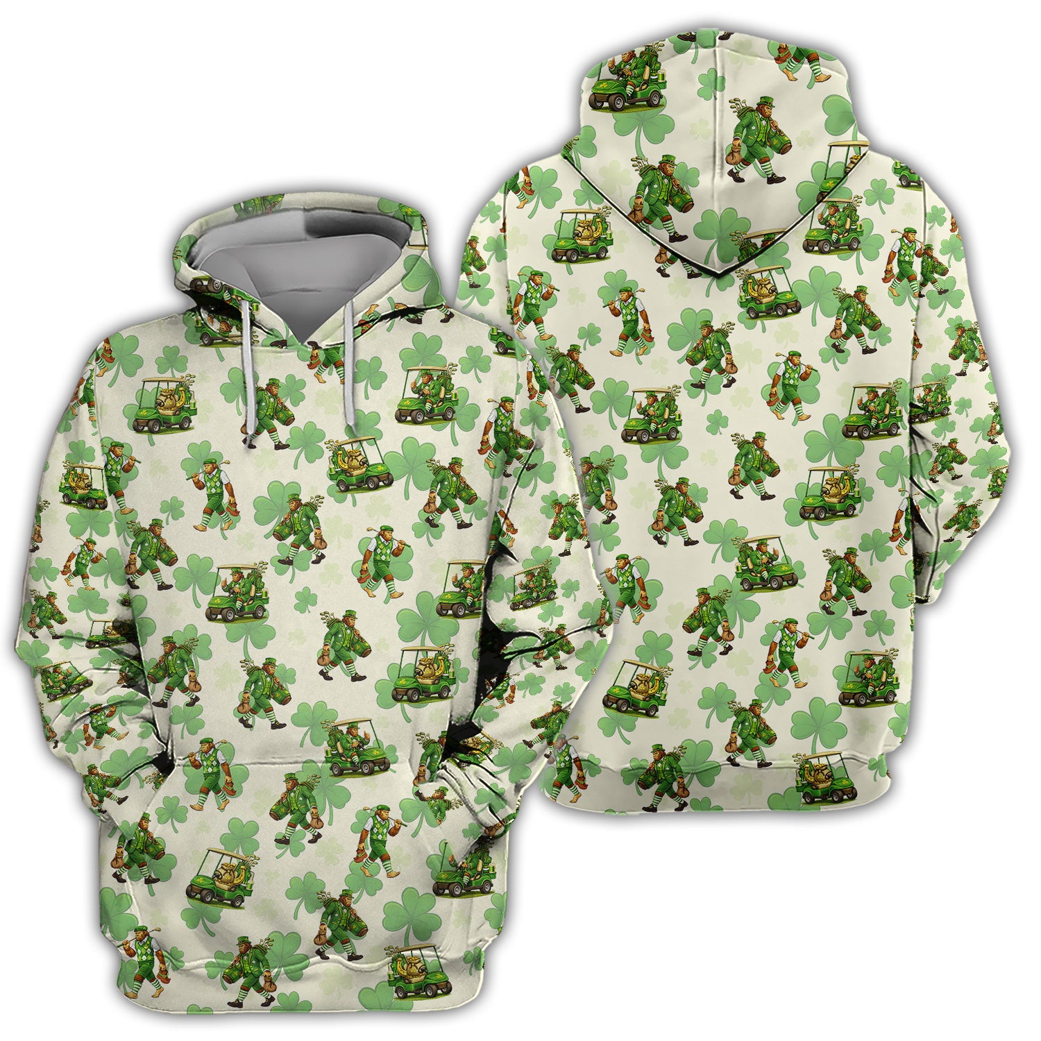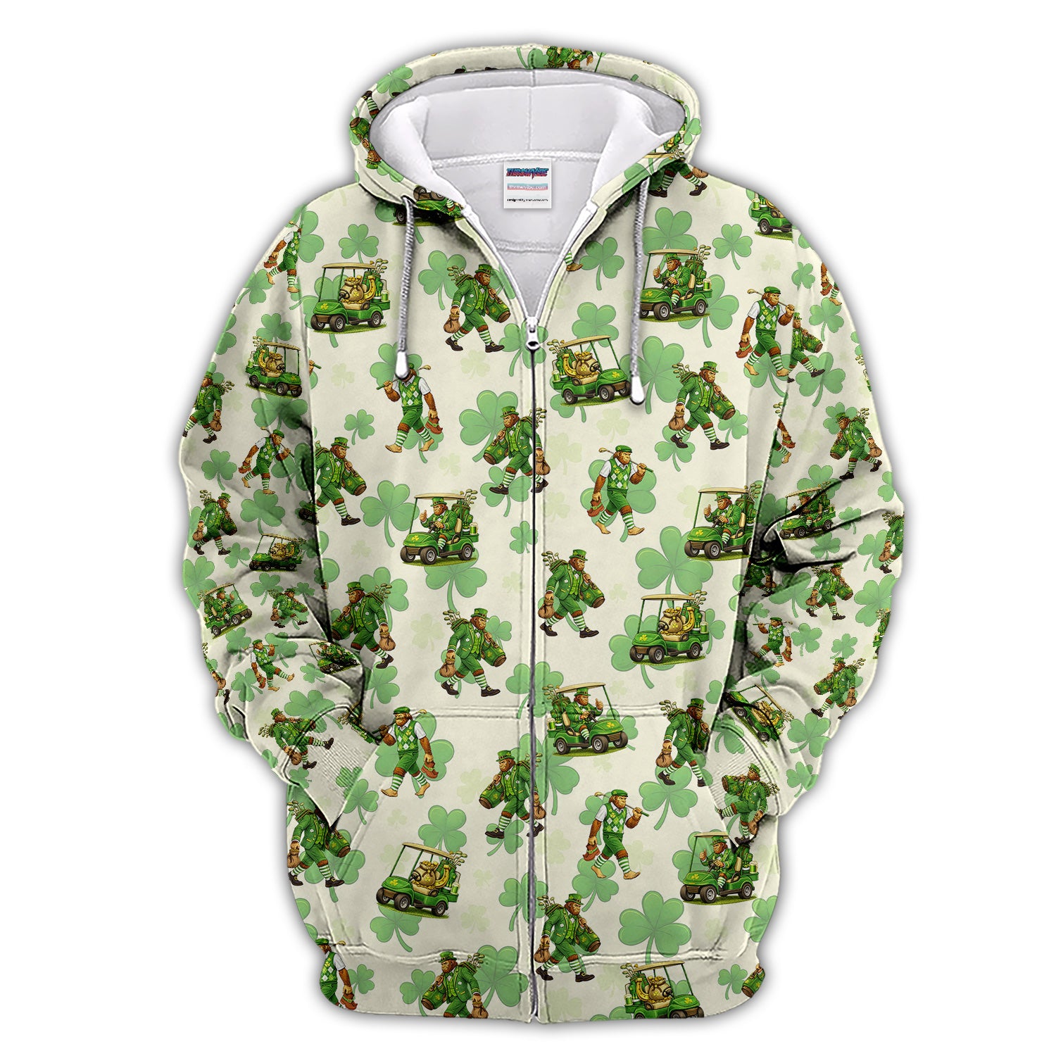 Funny Bigfoot Golf Polos For Men, St. Patrick’s Day Pattern Golf Shirt, Golf Gift For Golfer