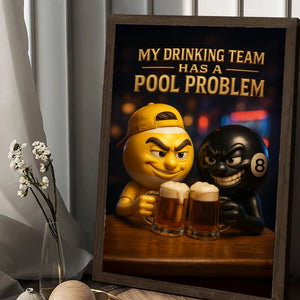 Funny Billiards Poster, 9 Ball With 8 Ball Wall Art, Billiards Canvas For Game Room Decor, Billiards And Beer Poster For Pool Player