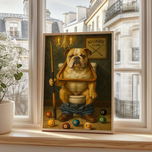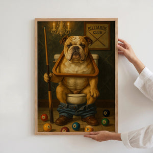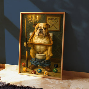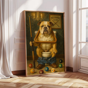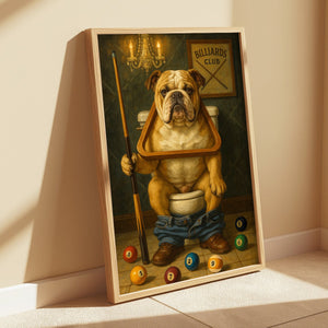 Funny Bulldog Playing Pool Billiards Canvas, Billiards Poster Wall Art For Game Room, Gift For Pool Player