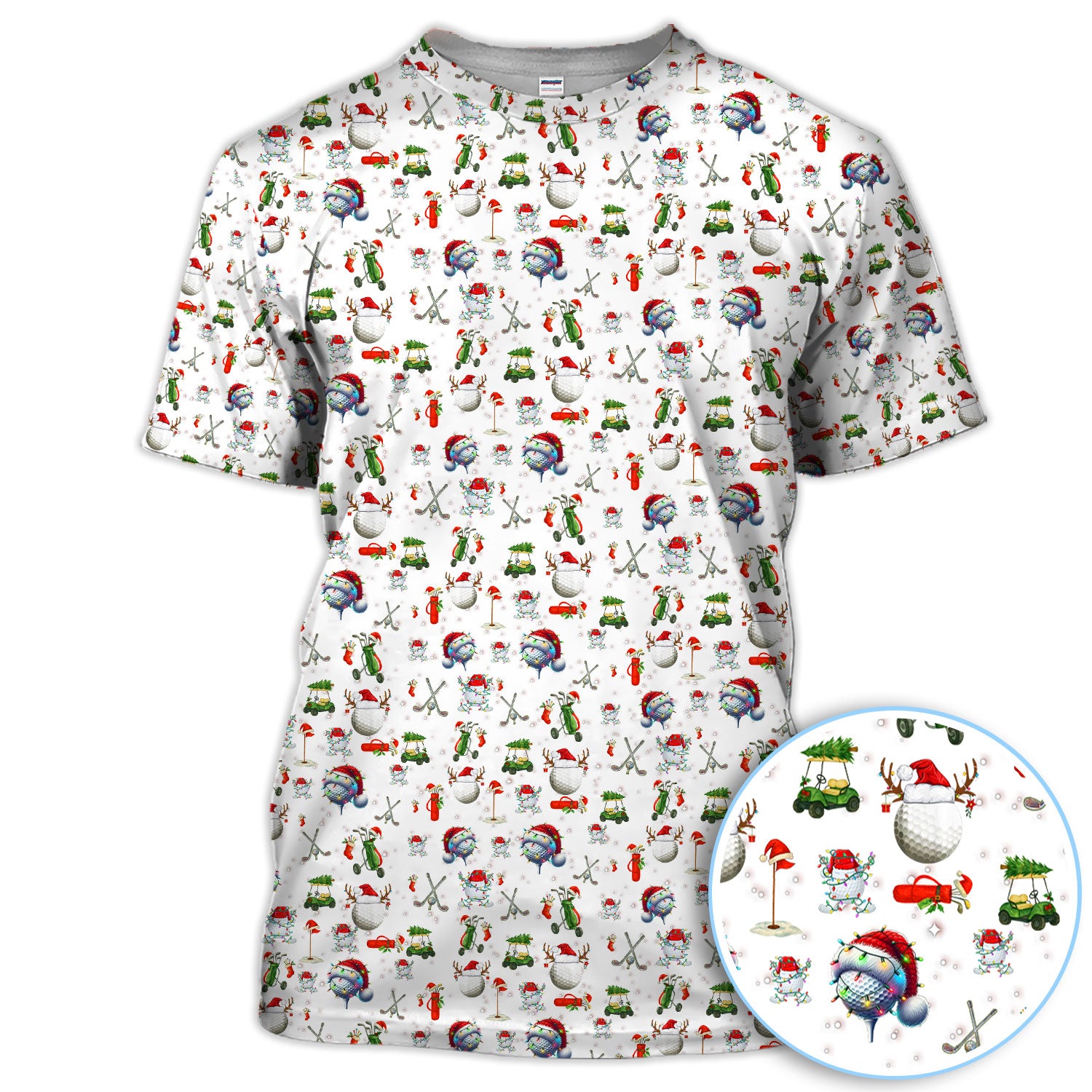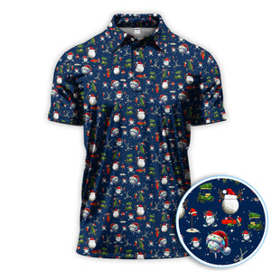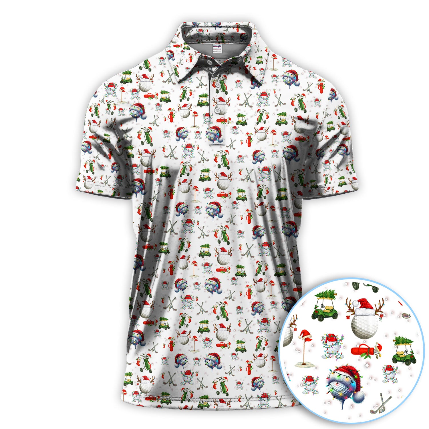 Funny Christmas Golf Shirt, Pattern Golf Polos For Men, Xmas Golf Shirt For Golfers