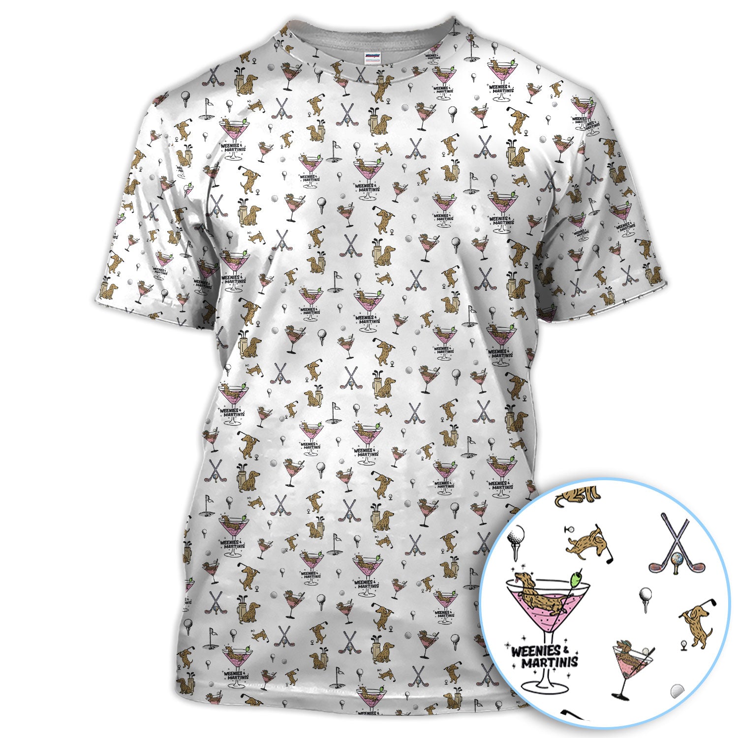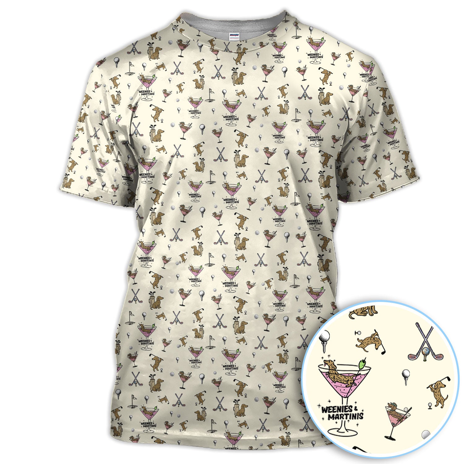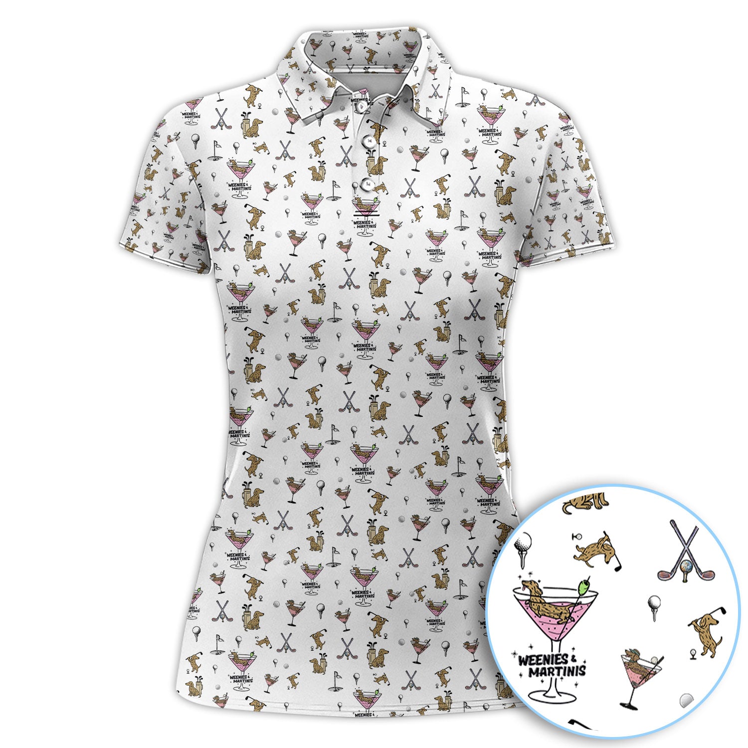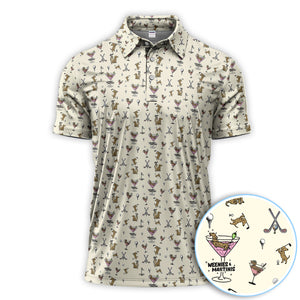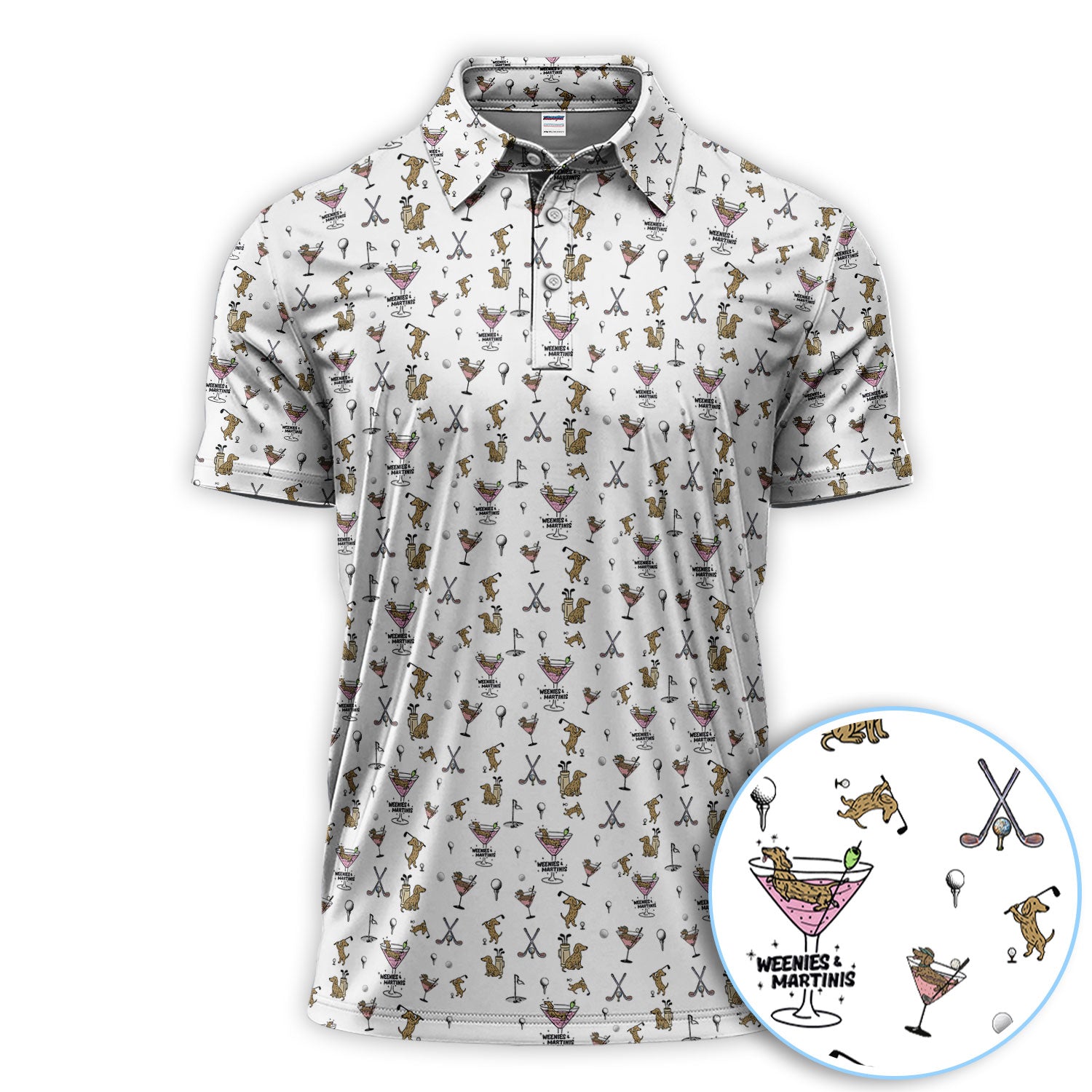 Funny Dachshund Golf Polos, Weenies Dog And Martinis Pattern Shirt For Men, Crazy Golf Shirt For Golfer
