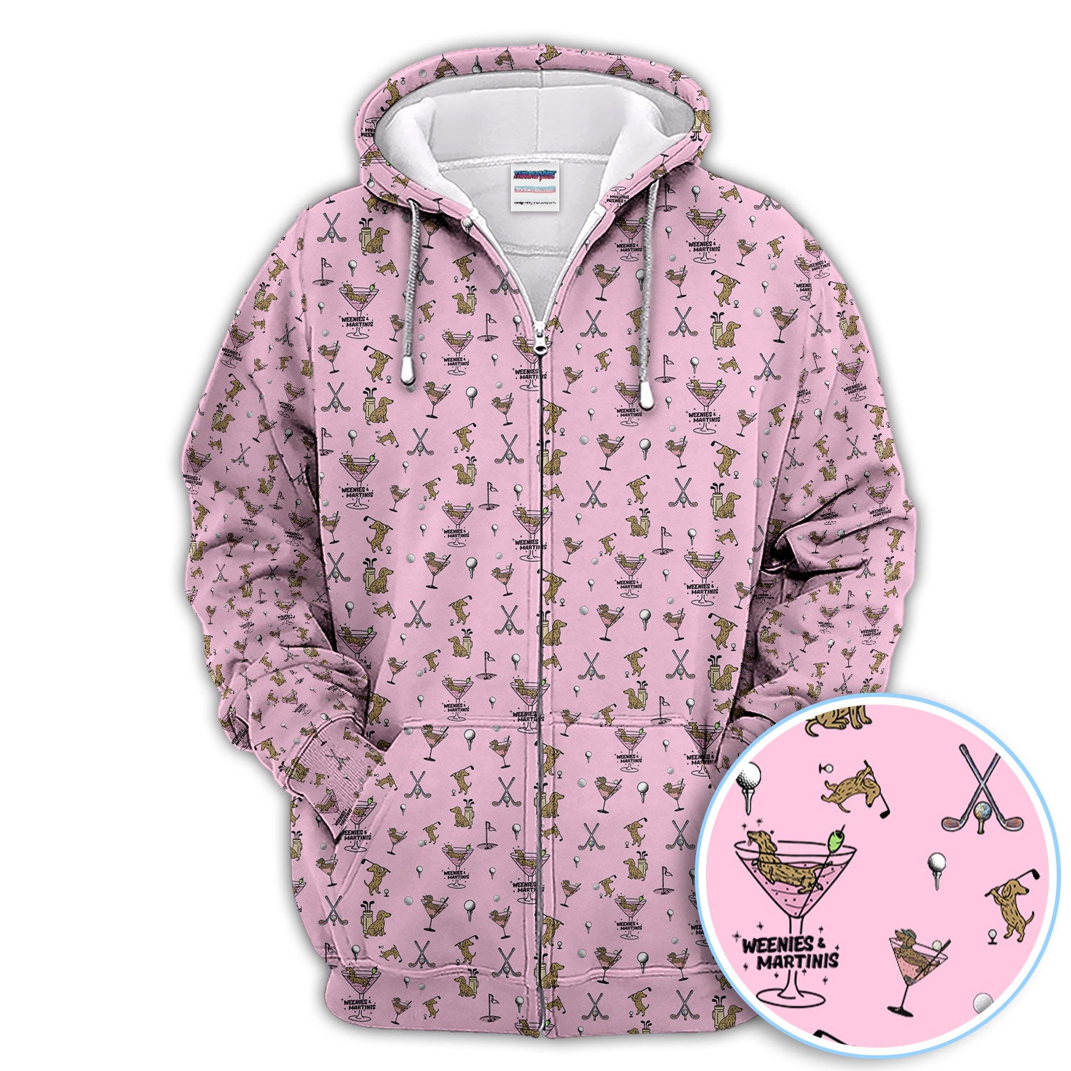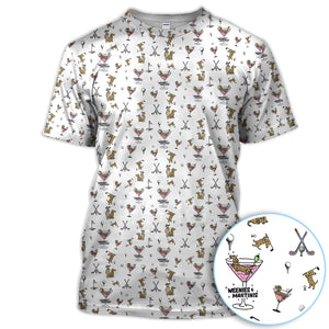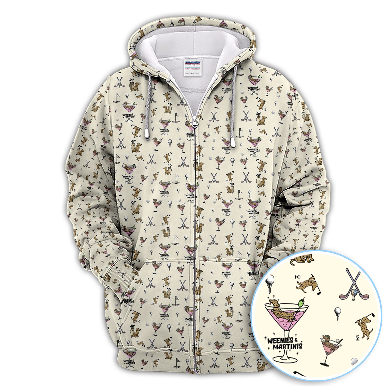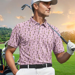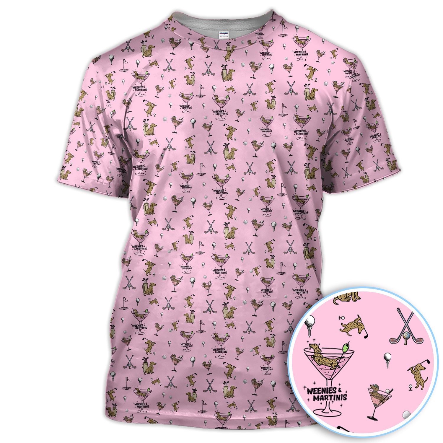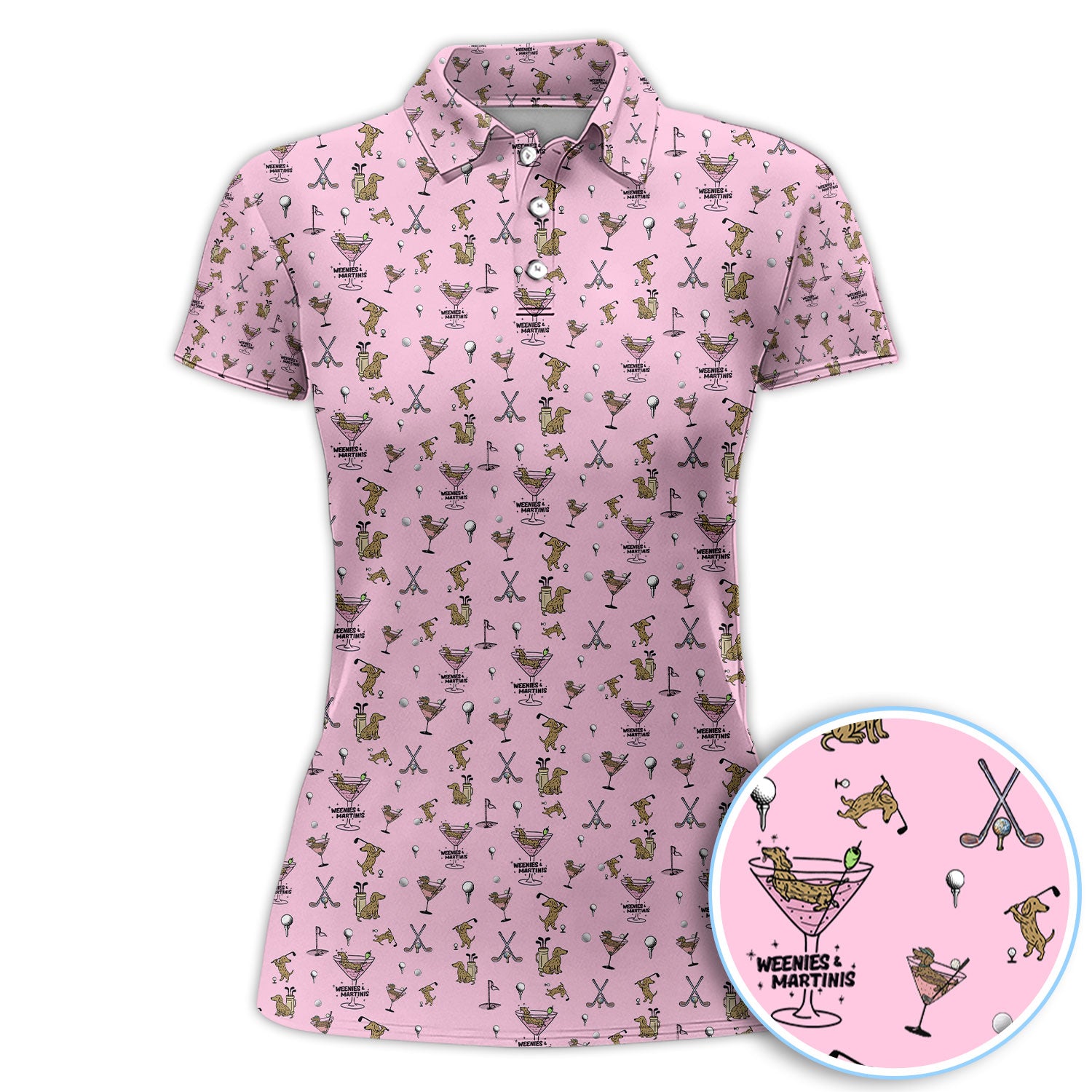 Funny Dachshund Golf Polos, Weenies Dog And Martinis Pattern Shirt For Men, Crazy Golf Shirt For Golfer
