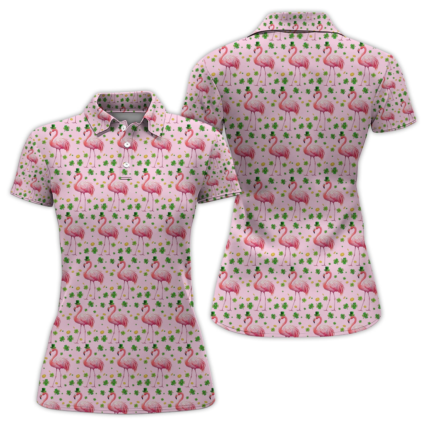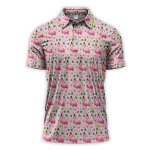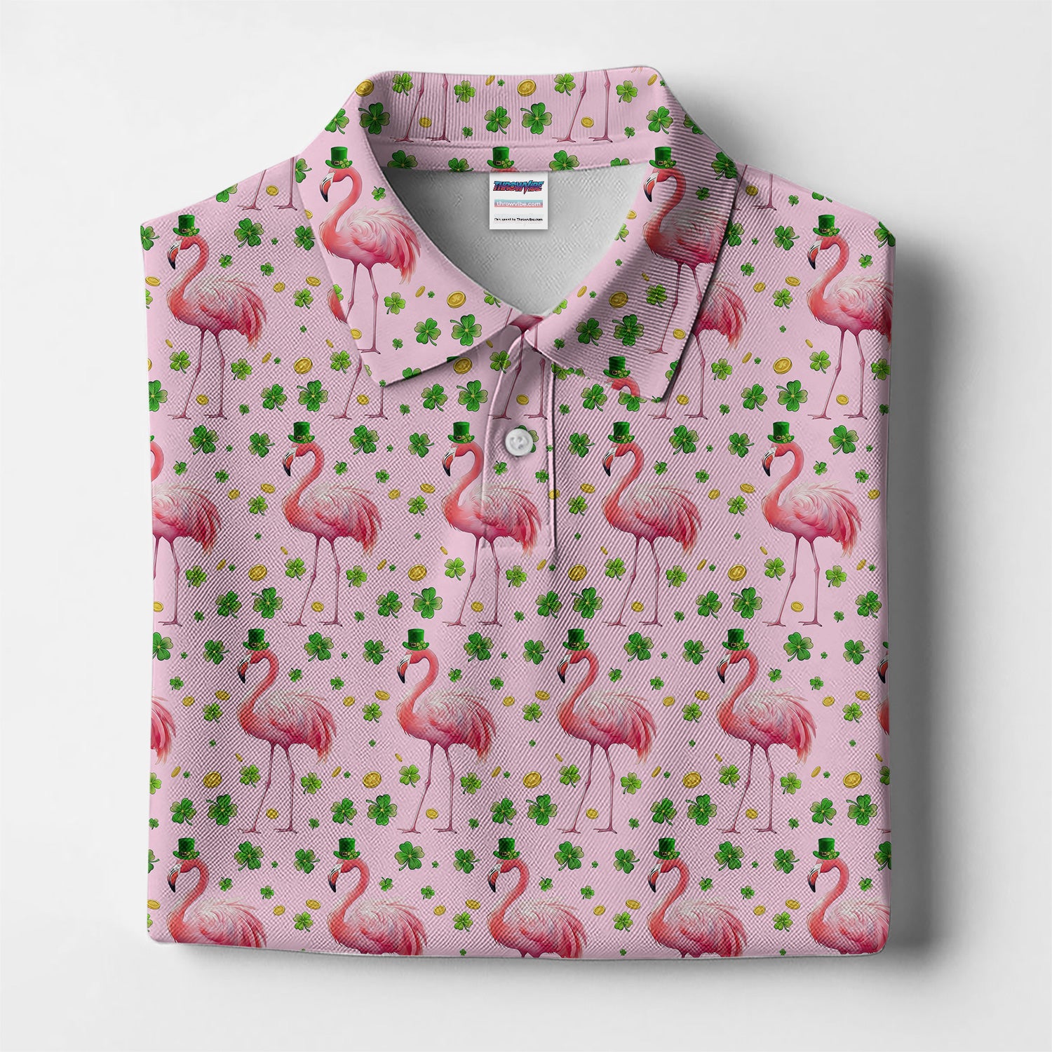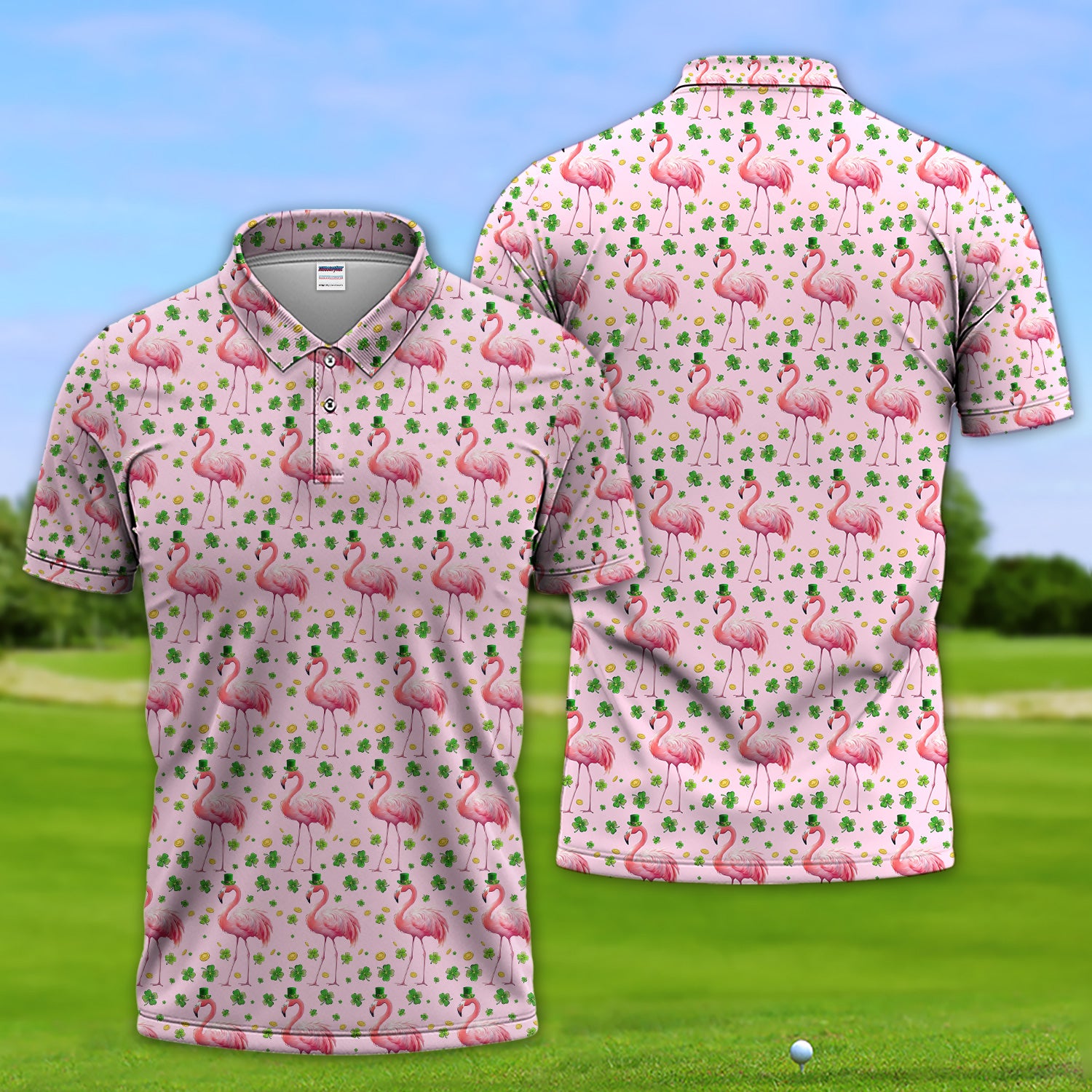 Funny Flamingo Pattern Golf Polos, St.Patrick’s Day Golf Shirt For Men, Crazy Golf Gift For Golfer