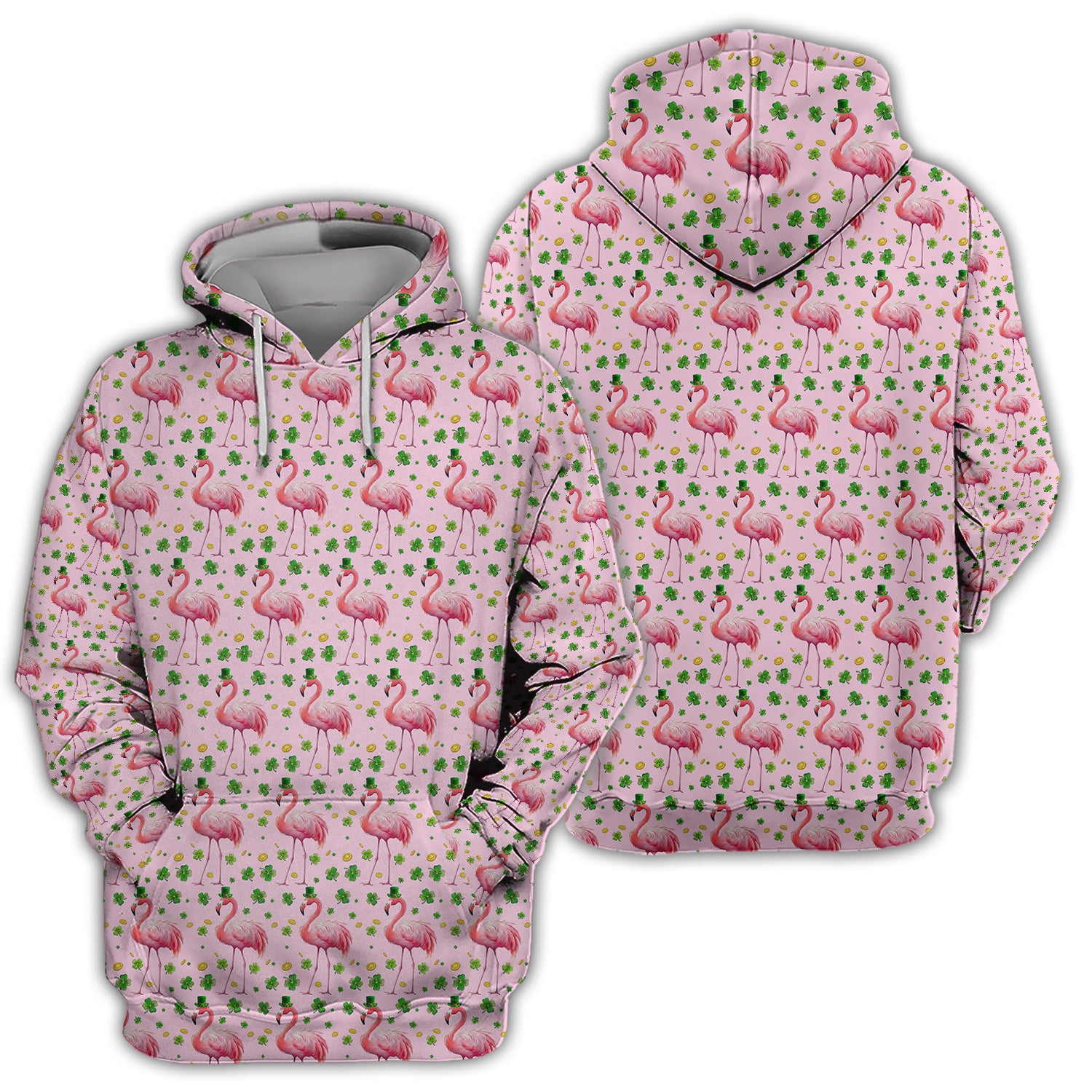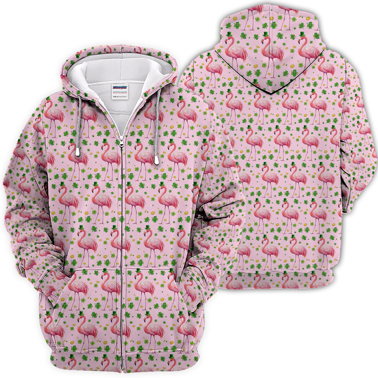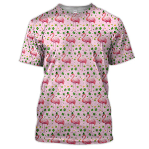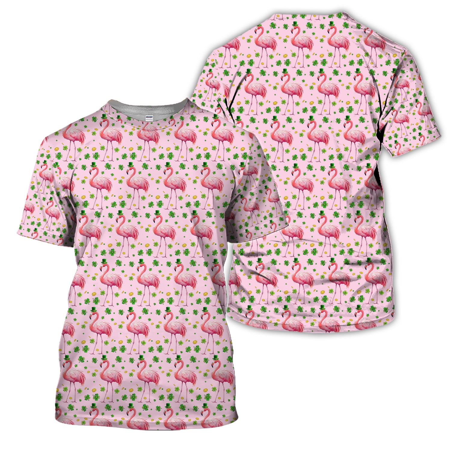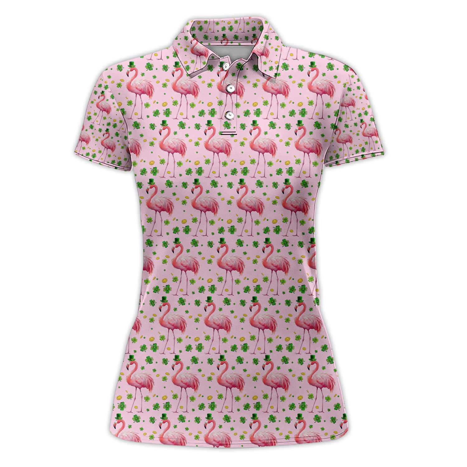 Funny Flamingo Pattern Golf Polos, St.Patrick’s Day Golf Shirt For Men, Crazy Golf Gift For Golfer