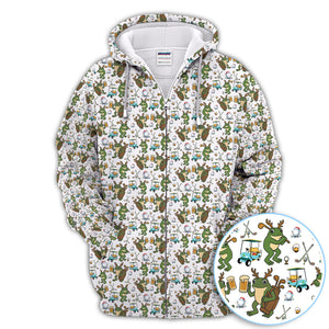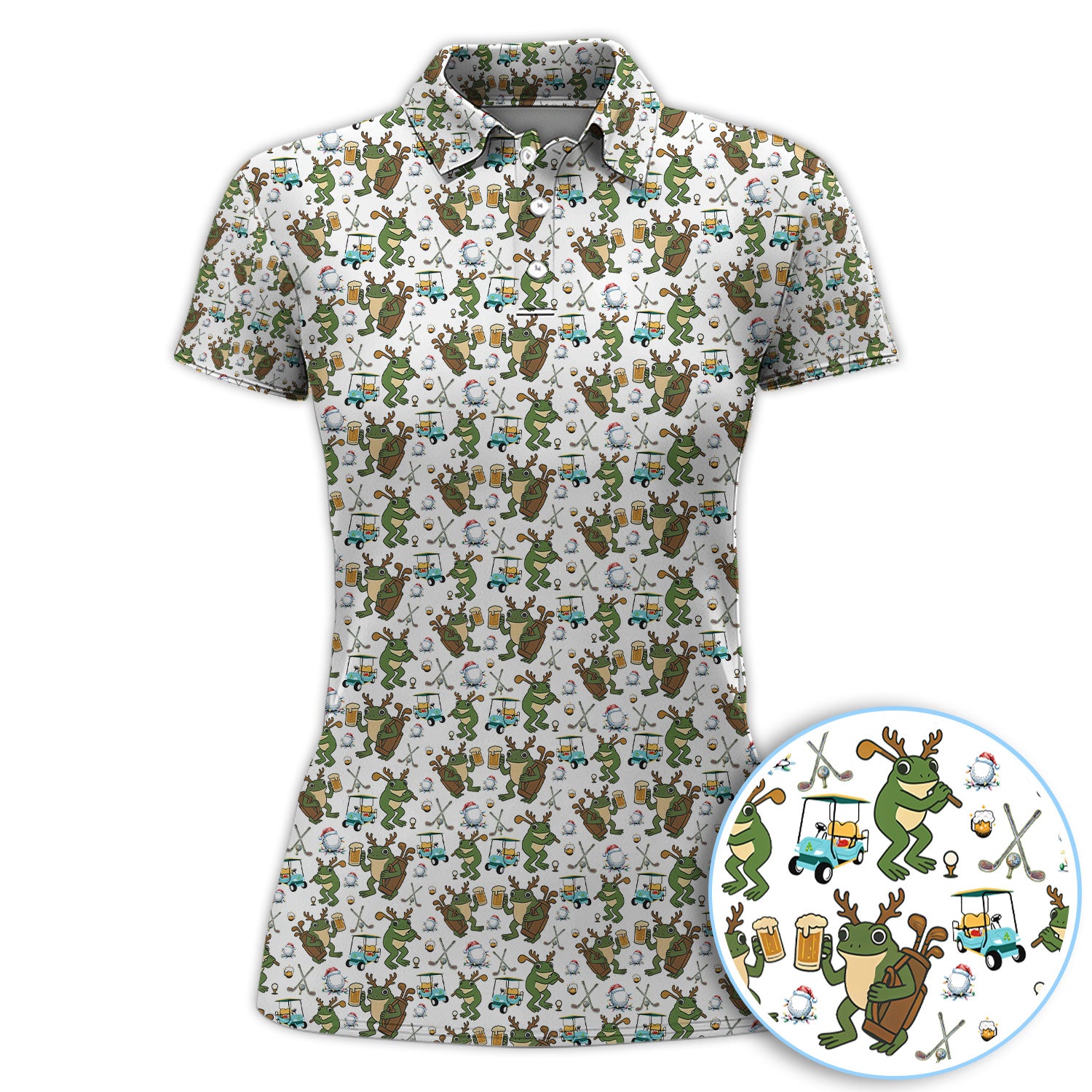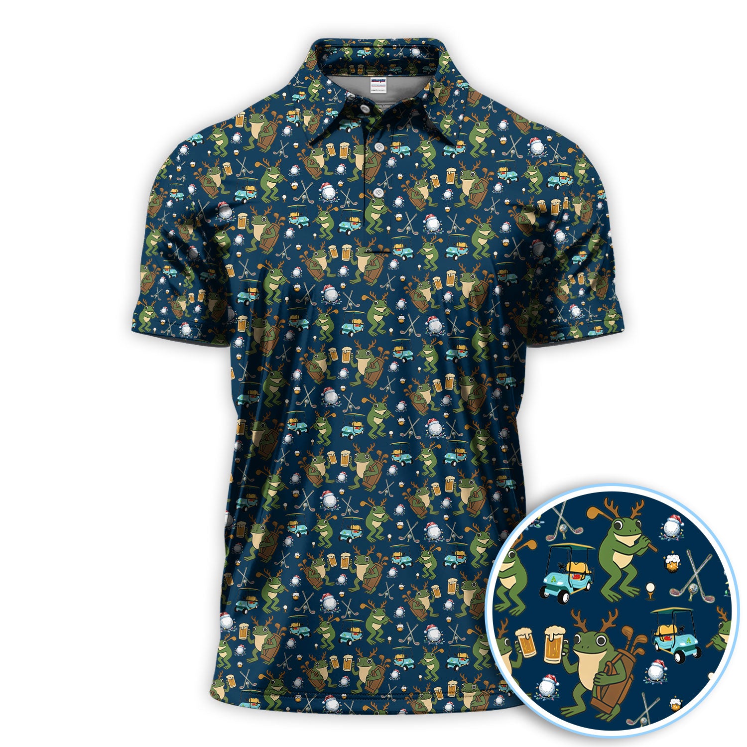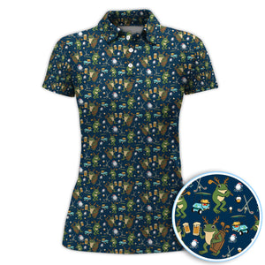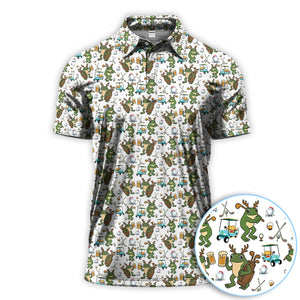 Funny Frog Golf And Beer Shirt For Men, Christmas Golf Pattern Polos, Golf Gift For Golfers