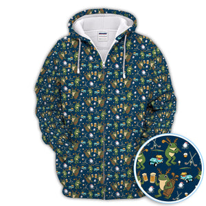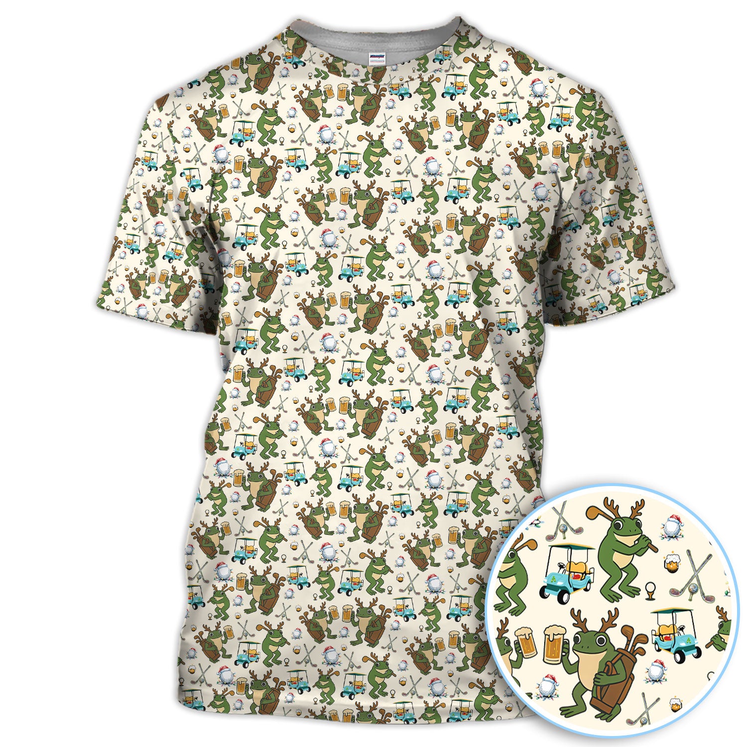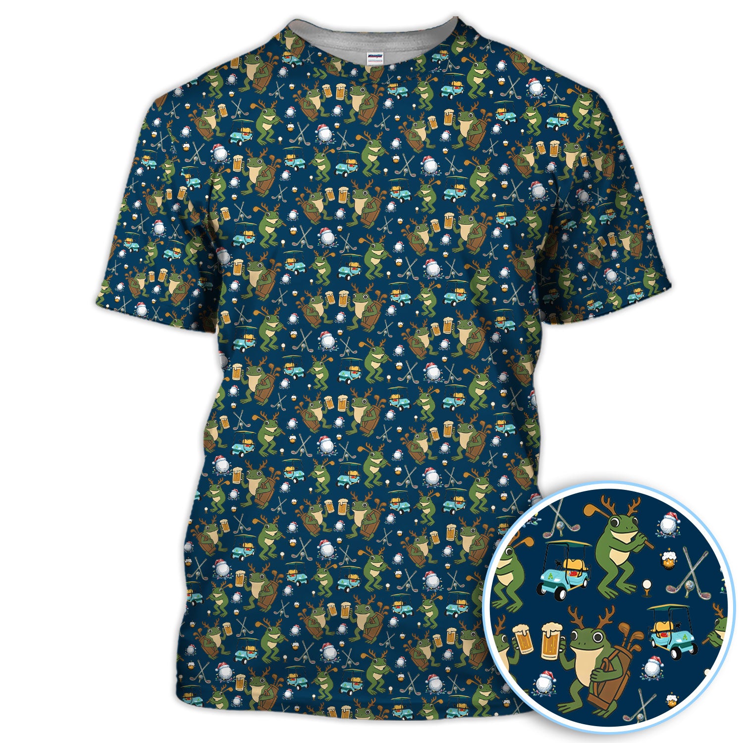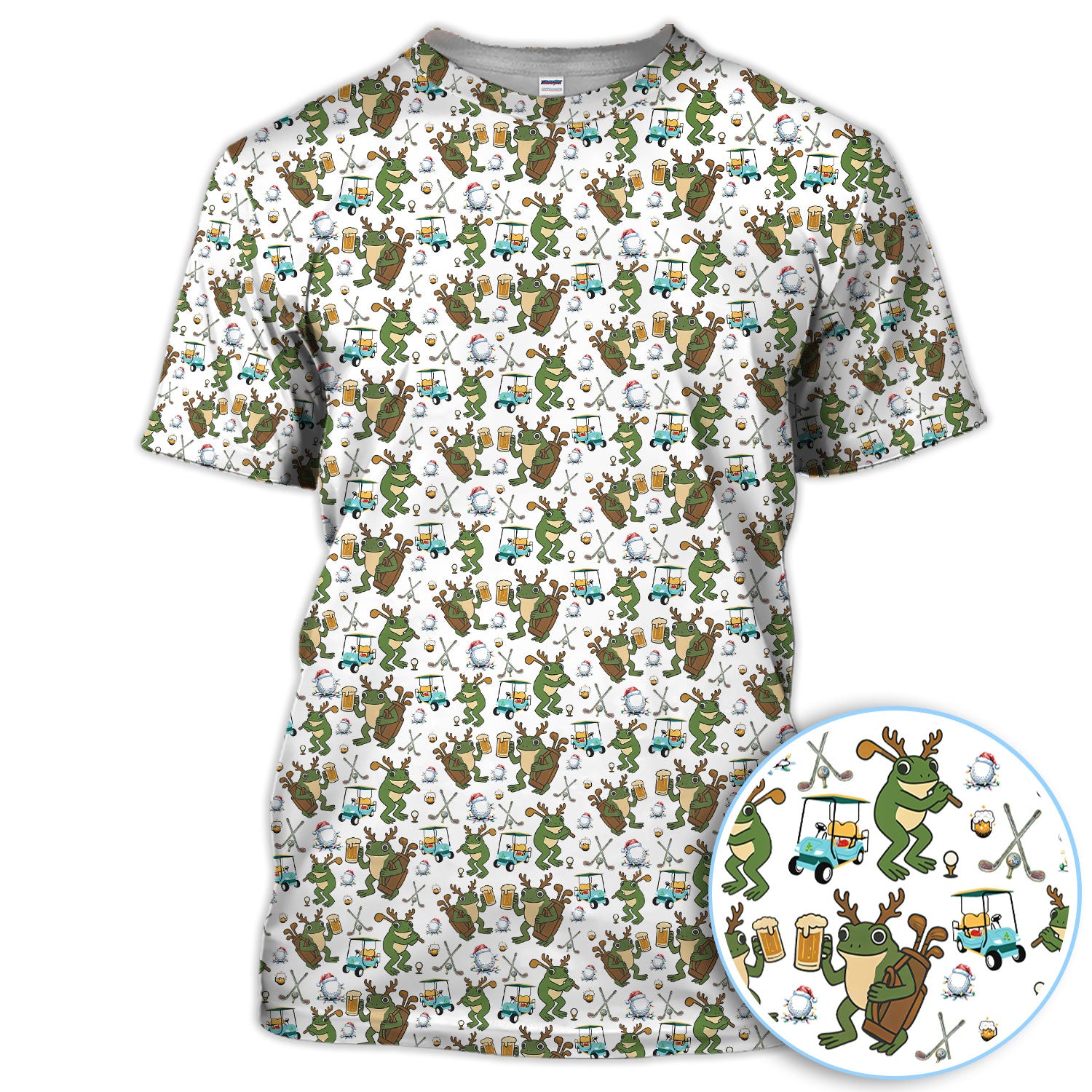 Funny Frog Golf And Beer Shirt For Men, Christmas Golf Pattern Polos, Golf Gift For Golfers