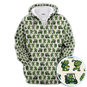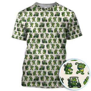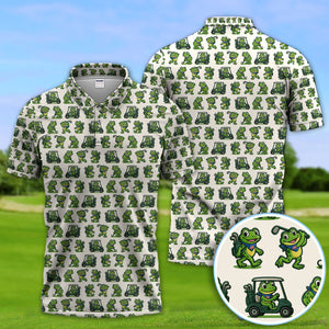 Funny Frog Golf Polos, Cute Frog Golf Pattern Shirt For Men, Golf Gift For Golfer