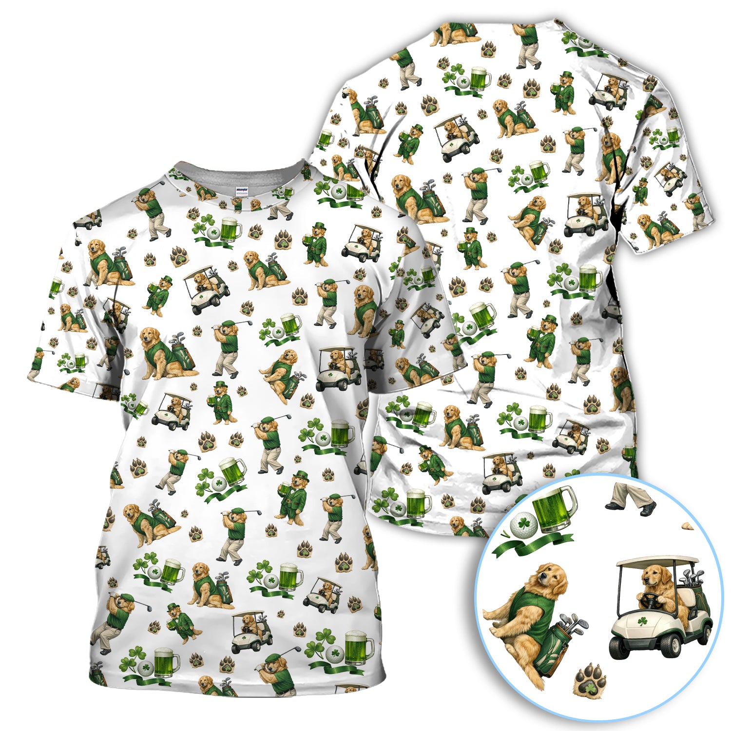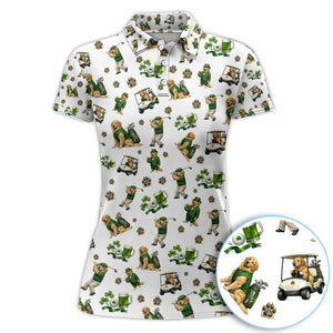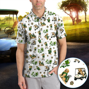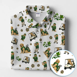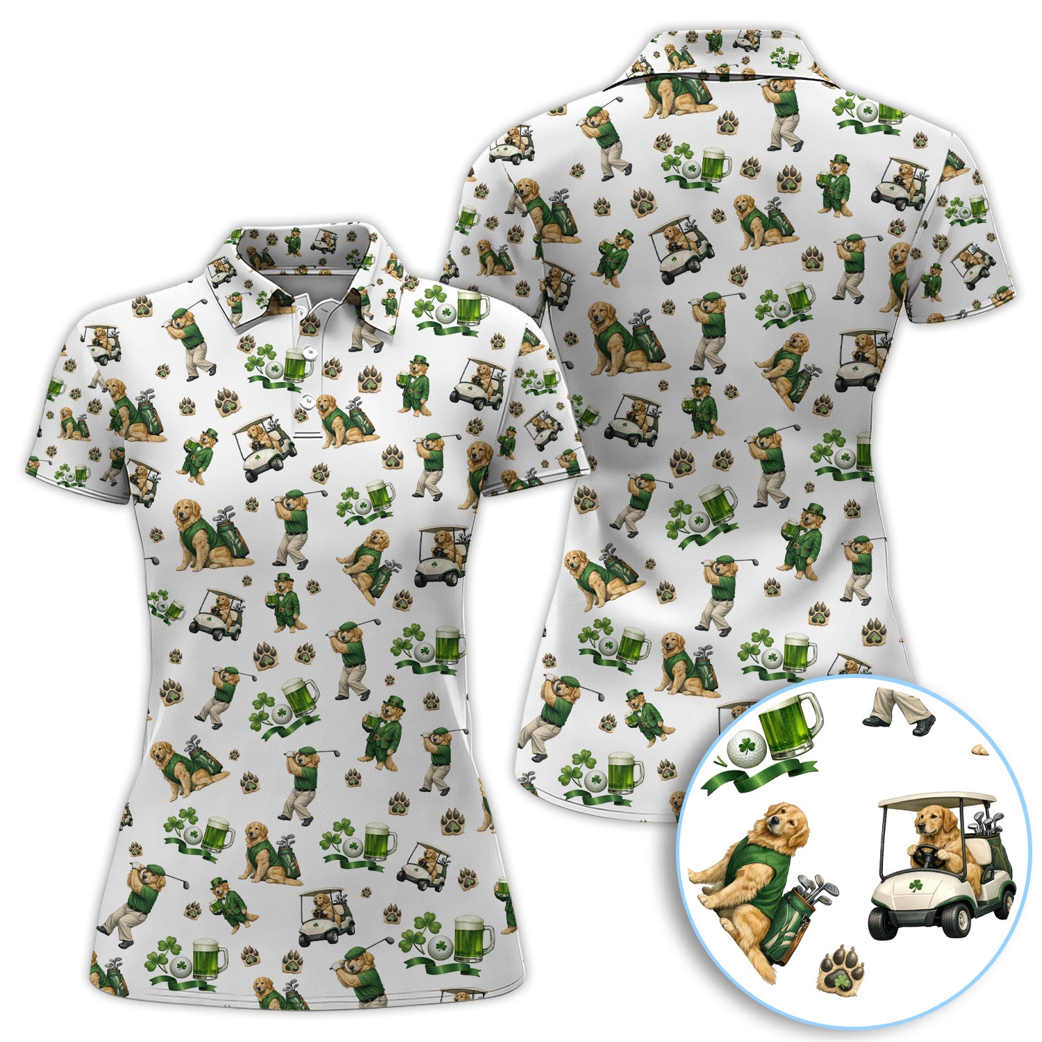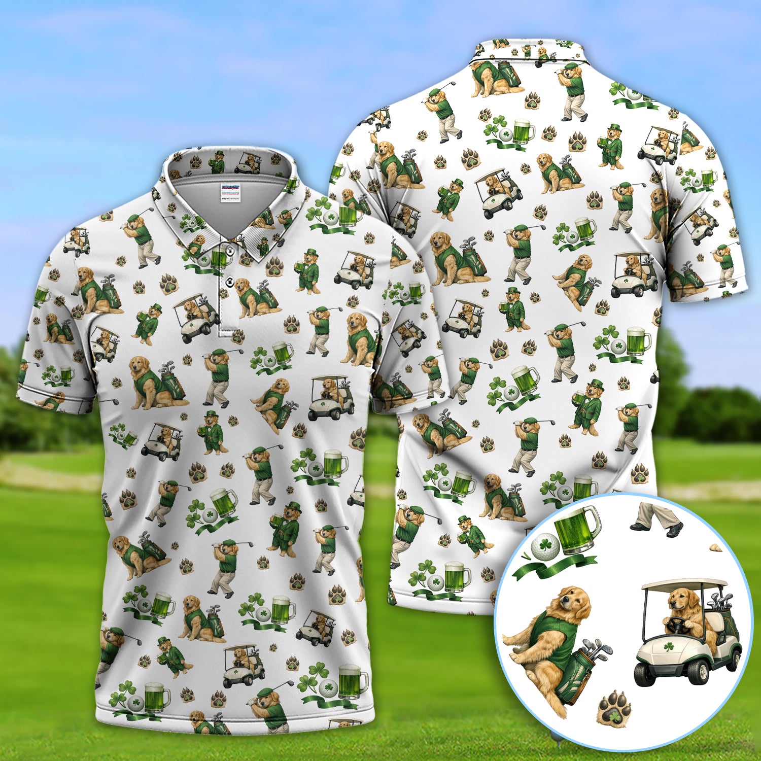 Funny Golden Retriever Golf Shirt, St. Patrick’s Day Pattern Golf Polos, Golf Gift For Golfer