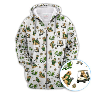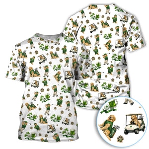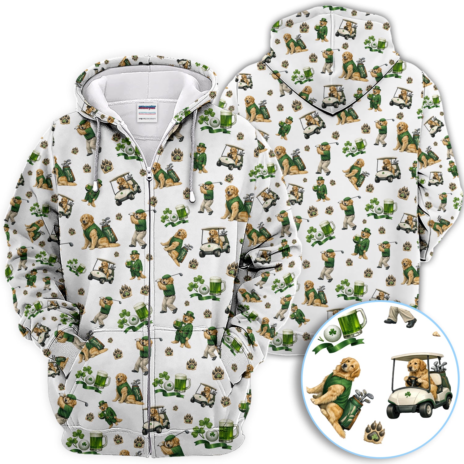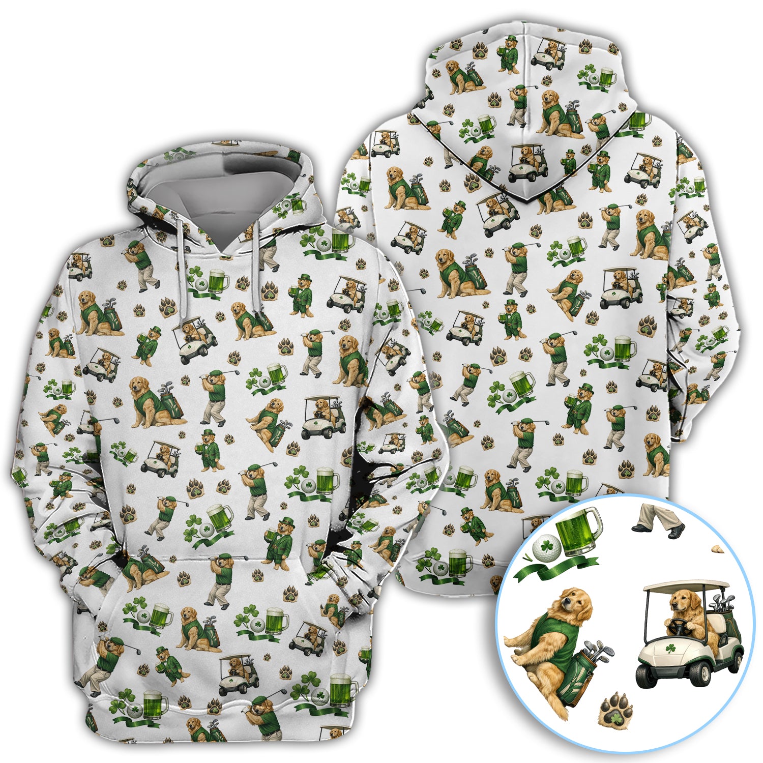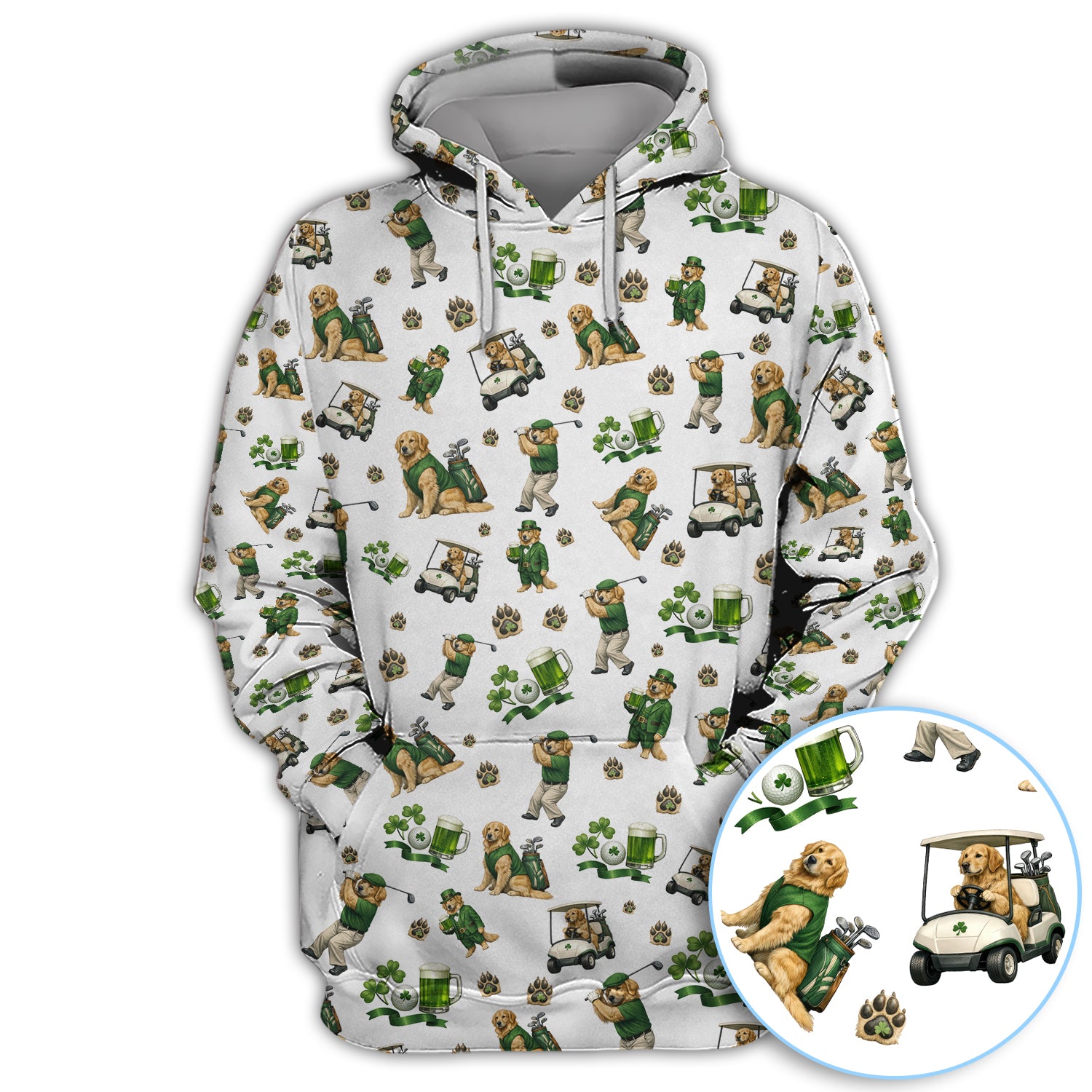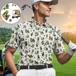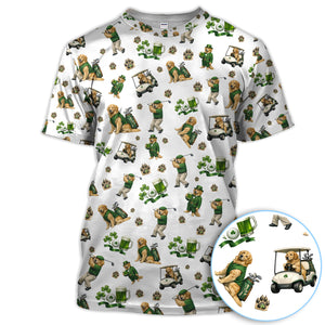 Funny Golden Retriever Golf Shirt, St. Patrick’s Day Pattern Golf Polos, Golf Gift For Golfer