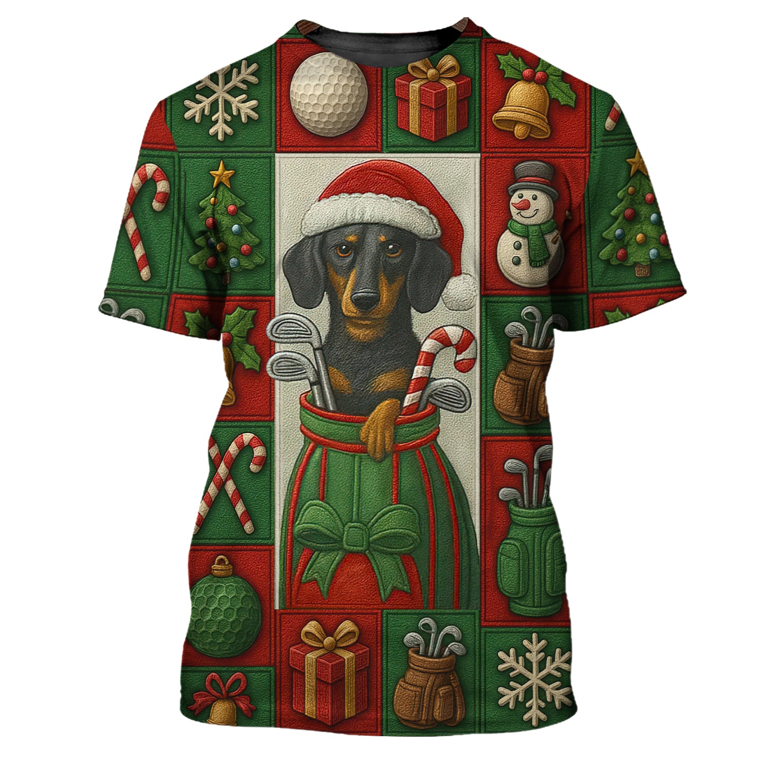 Funny Golf Shirt For Men, Dachshund Golf Shirt For Golfer, Christmas Golf Shirt For Dog Lovers