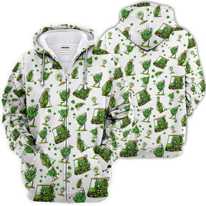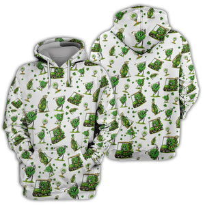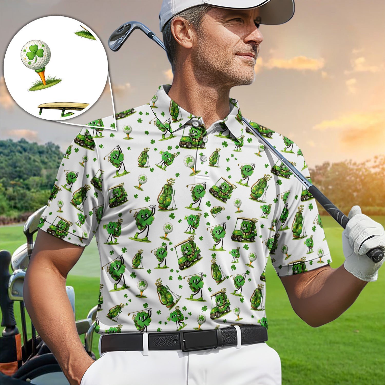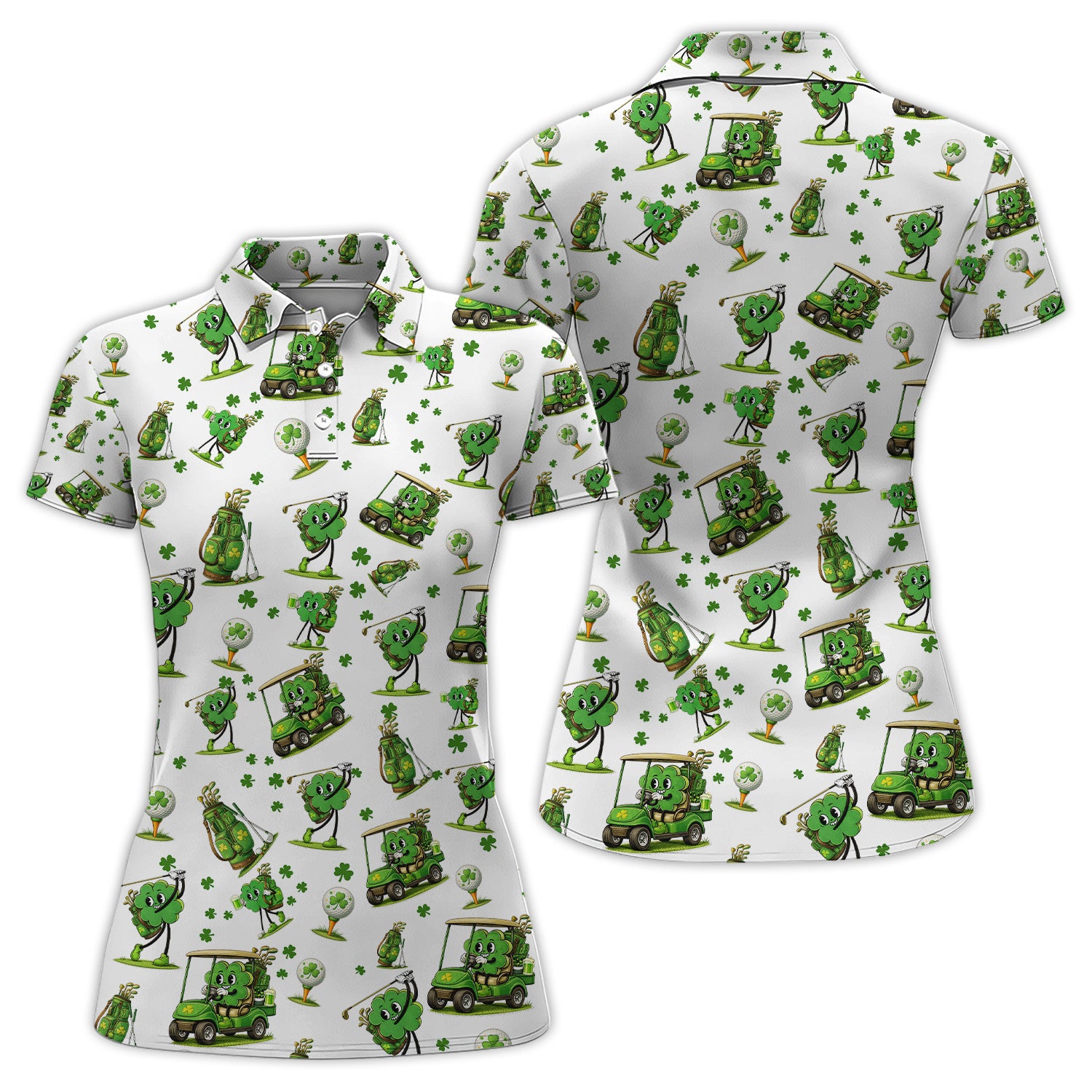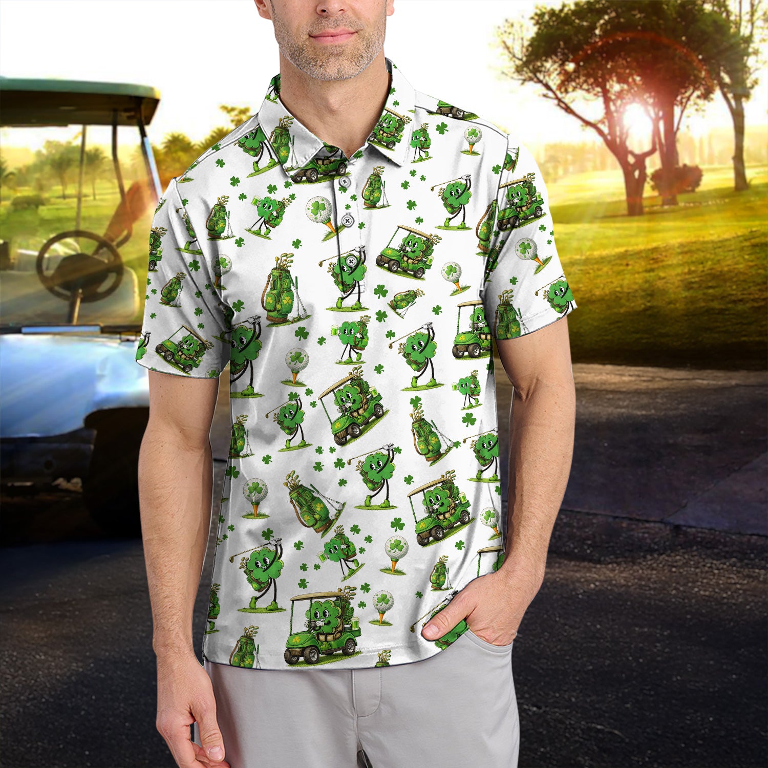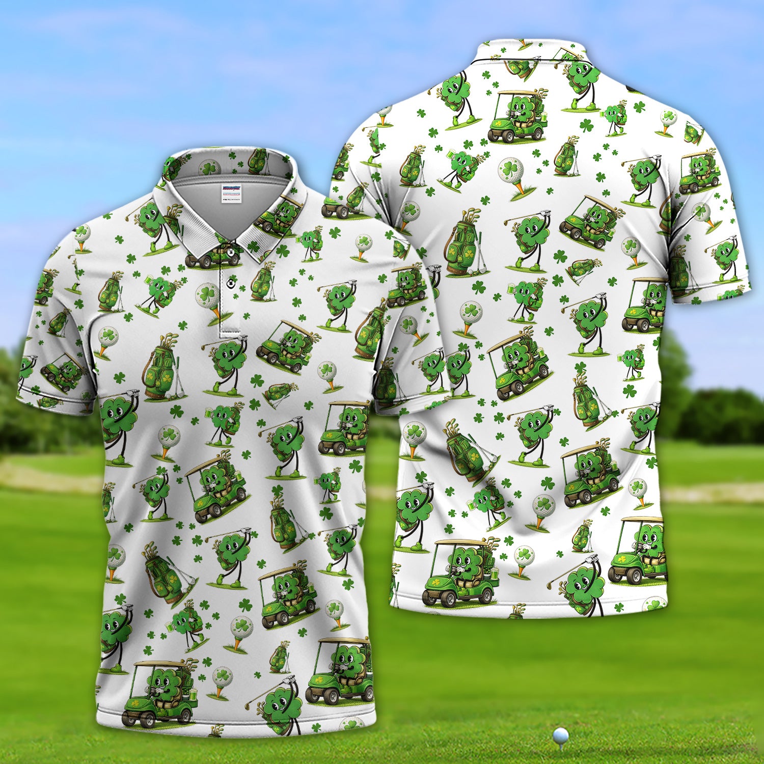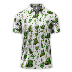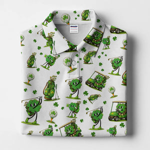 Funny Irish Clover Pattern Golf Polos, St. Patrick’s Day Golf Shirt For Men, Golf Gift For Golfer