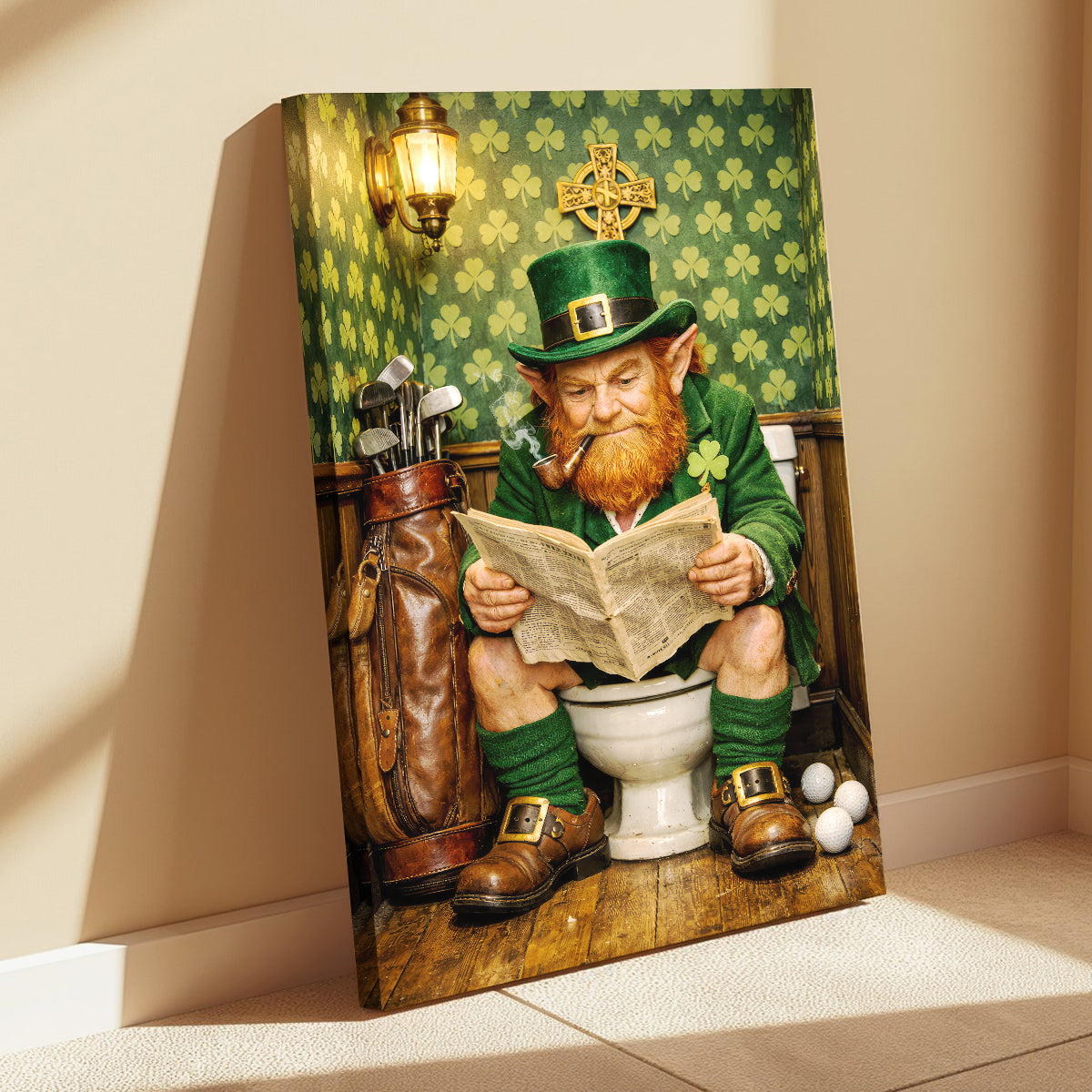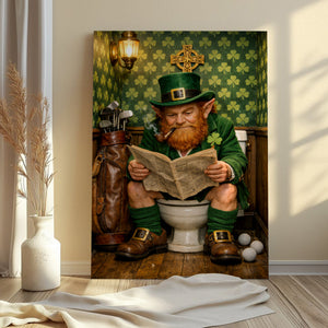 Funny Leprechaun Golf Wall Art, St Patrick’s Day Golf Poster, Canvas Golf For Golfer