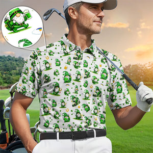 Funny Leprechaun Pattern Golf Shirt For Men, St.Patrick’s Day Golf Polos, Golf Gift For Golfer